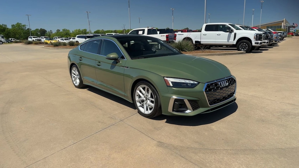 CARFAX One-Owner. Clean CARFAX. A5 Sportback 45 S line Premium Plus quattro, 4D Hatchback, 2.0L 4-Cylinder TFSI, 7-Speed Automatic S tronic, quattro, Green, Leather, 2 Rear USB Charge Ports, Alarm System w/Motion Sensors, Audi Advanced Key, Audi Side Assist w/Pre Sense Rear, Audi Virtual Cockpit Plus, Auto-Dimming Exterior Mirrors w/Memory, Bang & Olufsen Sound System w/3D Sound, Convenience Package, Driver Seat Memory, Exterior Parking Camera Rear, Leatherette Covered Center Console & Door Armrests, Power Folding Exterior Mirrors, Power Liftgate, Power moonroof, Premium Plus, SiriusXM w/360L, Top View Camera System, Wireless Phone Charging Pad.