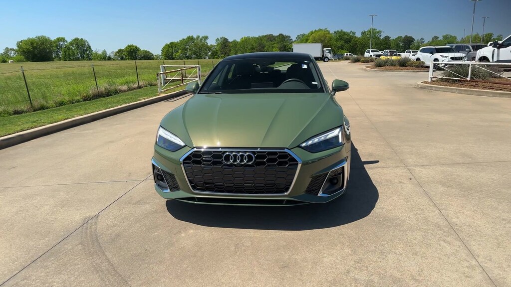 This 2024 Audi A5 Sportback 45 S line Premium Plus quattro in Green comes with the following features: 2.0L 4-Cylinder TFSI 7-Speed Automatic S tronic quattro Convenience Package (Alarm System w/Motion Sensors, Audi Advanced Key, Audi Side Assist w/Pre Sense Rear, Auto-Dimming Exterior Mirrors w/Memory, Driver Seat Memory, and SiriusXM w/360L), Premium Plus (2 Rear USB Charge Ports, Audi Virtual Cockpit Plus, Bang & Olufsen Sound System w/3D Sound, Leatherette Covered Center Console & Door Armrests, Power Folding Exterior Mirrors, Top View Camera System, and Wireless Phone Charging Pad), A5 Sportback 45 S line Premium Plus quattro, 4D Hatchback, 2.0L 4-Cylinder TFSI, 7-Speed Automatic S tronic, quattro, Green, Leather, Exterior Parking Camera Rear, Power Liftgate, Power moonroof, 10 Speakers, 4-Wheel Disc Brakes, ABS brakes, Air Conditioning, Alloy wheels, AM/FM radio, Anti-whiplash front head restraints, Auto High-beam Headlights, Auto-dimming Rear-View mirror, Automatic temperature control, Brake assist, Bumpers: body-color, Compass, Delay-off headlights, Driver door bin, Driver vanity mirror, Dual front impact airbags, Dual front side impact airbags, Electronic Stability Control, Emergency communication system: Audi connect CARE, Four wheel independent suspension, Front anti-roll bar, Front Bucket Seats, Front Center Armrest, Front dual zone A/C, Front fog lights, Front reading lights, Garage door transmitter: HomeLink, Genuine wood console insert, Genuine wood dashboard insert, Genuine wood door panel insert, Heated door mirrors, Heated front seats, Heated Front Sport Seats, Heated steering wheel, Illuminated entry, Knee airbag, Leather Seating Surfaces, Leather Shift Knob, Leather steering wheel, Low tire pressure warning, Occupant sensing airbag, Outside temperature display, Overhead airbag, Overhead console, Panic alarm, Passenger door bin, Passenger vanity mirror, Power adjustable front head restraints, Power door mirrors, Power driver seat, Power passenger seat, Power steering, Power windows, Radio data system, Radio: Audi Sound System, Rain sensing wipers, Rear air conditioning, Rear anti-roll bar, Rear reading lights, Rear seat center armrest, Rear window defroster, Remote keyless entry, Speed control, Speed-sensing steering, Speed-Sensitive Wipers, Split folding rear seat, Steering wheel mounted audio controls, Tachometer, Telescoping steering wheel, Tilt steering wheel, Traction control, Trip computer, Turn signal indicator mirrors, Variably intermittent wipers, and Wheels: 18" 5-Double-Spoke Design.