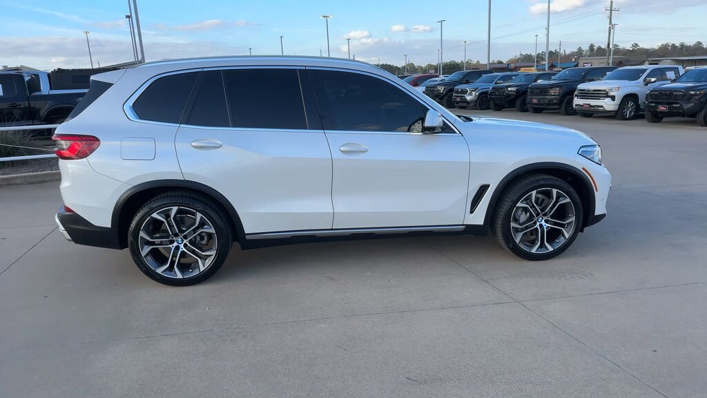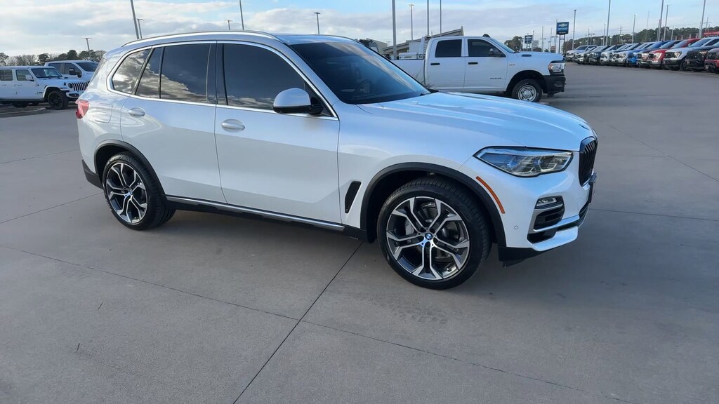 This 2020 BMW X5 xDrive40i in Mineral White Metallic comes with the following features: 3.0L I6 DOHC 24V TwinPower Turbo 8-Speed Automatic AWD Parking Assistance Package (Active Park Distance Control, Parking Assistant Plus, Rear-View Camera, and Surround View w/3D View), Premium Package (4-Zone Automatic Climate Control, Enhanced USB & Bluetooth, Gesture Control, Head-Up Display, Remote Engine Start, SiriusXM Satellite Radio w/1 Year All Access, WiFi Hotspot, and Wireless Charging), 10 Speakers, 3.39 Axle Ratio, 4-Wheel Disc Brakes, ABS brakes, Air Conditioning, Alloy wheels, AM/FM radio, AM/FM Stereo, Apple CarPlay Compatibility, Auto High-beam Headlights, Auto tilt-away steering wheel, Auto-dimming door mirrors, Auto-dimming Rear-View mirror, Automatic temperature control, Brake assist, Bumpers: body-color, Compass, Delay-off headlights, Driver door bin, Driver vanity mirror, Dual front impact airbags, Dual front side impact airbags, Electronic Stability Control, Emergency communication system: BMW Assist eCall, Exterior Parking Camera Rear, Four wheel independent suspension, Front & Rear Heated Seats, Front anti-roll bar, Front Bucket Seats, Front Center Armrest, Front dual zone A/C, Front fog lights, Front reading lights, Fully automatic headlights, Garage door transmitter, Genuine wood console insert, Genuine wood dashboard insert, Genuine wood door panel insert, Head restraints memory, Heated door mirrors, Heated Front Seats, Heated front seats, Heated Front Seats w/Armrests & Steering Wheel, Hi-Fi Sound System, Icon Adaptive LED Headlights w/Laserlight, Illuminated entry, Increased Top Speed Limiter, Knee airbag, Leather Shift Knob, Leather steering wheel, Low tire pressure warning, Lumbar Support, Memory seat, Navigation System, Occupant sensing airbag, Outside temperature display, Overhead airbag, Panic alarm, Passenger door bin, Passenger vanity mirror, Power adjustable front head restraints, Power door mirrors, Power driver seat, Power Front Seats, Power moonroof, Power passenger seat, Power steering, Power windows, Radio data system, Rain sensing wipers, Rear air conditioning, Rear anti-roll bar, Rear reading lights, Rear seat center armrest, Rear window defroster, Rear window wiper, Remote keyless entry, Roof rack: rails only, Security system, SensaTec Upholstery, Speed control, Speed-sensing steering, Speed-Sensitive Wipers, Split folding rear seat, Spoiler, Sport Seats, Sport steering wheel, Steering wheel memory, Steering wheel mounted audio controls, Tachometer, Telescoping steering wheel, Tilt steering wheel, Traction control, Trip computer, Turn signal indicator mirrors, Variably intermittent wipers, Wheels: 19" x 9" V-Spoke (Style 734), and Wheels: 21" x 9.5" Fr & 21" x 10.5" Rr Bi-Color.
