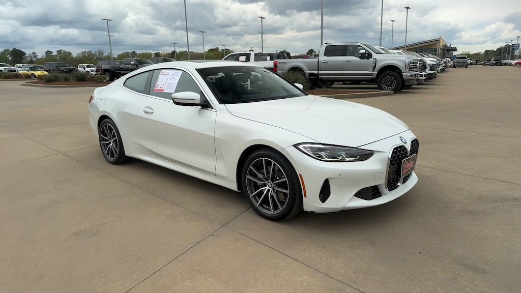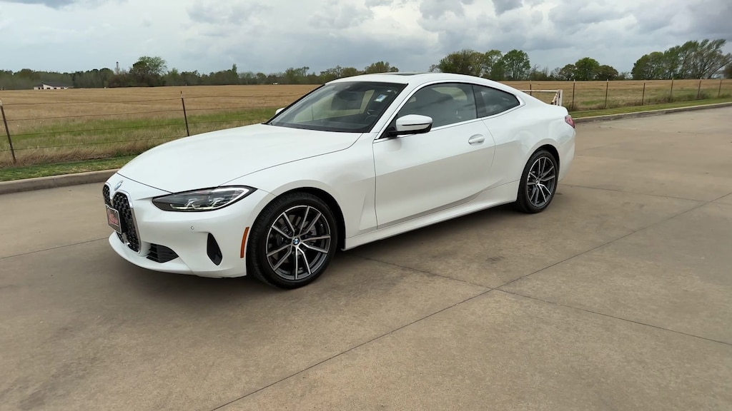 This 2024 BMW 4 Series 430i xDrive in White comes with the following features: 2.0L 4-Cylinder TwinPower Turbo 8-Speed Automatic Sport AWD Connected Package Pro, 10 Speakers, 4-Wheel Disc Brakes, ABS brakes, Air Conditioning, Alloy wheels, AM/FM Radio, AM/FM radio: SiriusXM with 360L, Apple CarPlay & Android Auto Compatibility, Auto High-beam Headlights, Auto-dimming door mirrors, Auto-dimming Rear-View mirror, Automatic temperature control, BMW Assist eCall, BMW TeleServices, Brake assist, Bumpers: body-color, Compass, ConnectedDrive Services, Delay-off headlights, Driver door bin, Driver vanity mirror, Dual front impact airbags, Dual front side impact airbags, Electronic Stability Control, Emergency communication system: BMW Assist eCall, Enhanced USB & Bluetooth w/Smartphone Integration, Exterior Parking Camera Rear, Four wheel independent suspension, Front anti-roll bar, Front Bucket Seats, Front Center Armrest, Front dual zone A/C, Front reading lights, Fully automatic headlights, Garage door transmitter, Genuine wood console insert, Genuine wood dashboard insert, Heated door mirrors, Hi-Fi Sound System, Illuminated entry, Knee airbag, Leather steering wheel, Low tire pressure warning, Memory seat, Navigation, Navigation System, Occupant sensing airbag, Outside temperature display, Overhead airbag, Overhead console, Panic alarm, Passenger door bin, Passenger vanity mirror, Perforated SensaTec Upholstery, Power door mirrors, Power driver seat, Power Front Seats, Power moonroof, Power passenger seat, Power steering, Power windows, Radio data system, Rain sensing wipers, Rear anti-roll bar, Rear reading lights, Rear seat center armrest, Rear window defroster, Remote keyless entry, Security system, SiriusXM w/360L, Speed control, Speed-sensing steering, Speed-Sensitive Wipers, Split folding rear seat, Sport Seats, Sport steering wheel, Steering wheel mounted audio controls, Tachometer, Telescoping steering wheel, Tilt steering wheel, Traction control, Trip computer, Turn signal indicator mirrors, Variably intermittent wipers, Wheels: 18" x 7.5" V-Spoke Bi-Color Orbit Grey, and Widescreen Display.