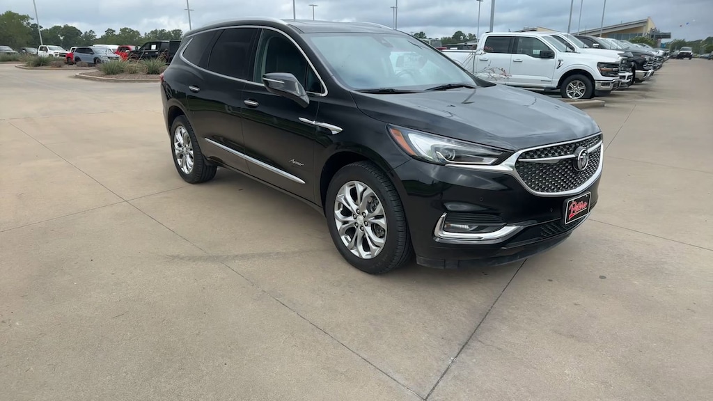 This 2021 Buick Enclave Avenir in Ebony Twilight Metallic comes with the following features: 3.6L V6 SIDI VVT 9-Speed Automatic FWD Avenir Package (120-Volt Power Outlet, 3rd Row 60/40 Power Fold Split-Bench, Automatic Heated Steering Wheel, Front Power Sliding Moonroof, HD Radio, HD Surround Vision, Heated 2nd Row Outboard Seats, Inside Rearview Mirror w/Full Camera Display, Outside Heated Power-Adjustable Mirrors, Power Tilt & Telescopic Steering Column, Wheels & Front Door Badging, and Wireless Charging), Avenir Premium Suspension Package (Chassis Continuously Variable Real Time Damping and Premium Ride Suspension), Avenir Technology Package (Adaptive Cruise Control and Enhanced Automatic Emergency Braking), Front Mounting License Plate Bracket Package, Memory Package, Preferred Equipment Group 1SP, FWD, 10 Speakers, 3.49 Axle Ratio, 3rd row seats: split-bench, 4-Wheel Disc Brakes, 7-Passenger Seating, ABS brakes, Air Conditioning, Alloy wheels, AM/FM radio: SiriusXM with 360L, Apple CarPlay/Android Auto, Audio memory, Auto High-beam Headlights, Auto tilt-away steering wheel, Auto-dimming door mirrors, Auto-dimming Rear-View mirror, Automatic temperature control, Bose Performance-Enhanced 10-Speaker System, Brake assist, Bumpers: body-color, Compass, Delay-off headlights, Driver 4-Way Power Lumbar Seat Adjuster, Driver door bin, Driver vanity mirror, Dual front impact airbags, Dual front side impact airbags, Electronic Stability Control, Emergency communication system: OnStar and Buick connected services capable, Four wheel independent suspension, Front anti-roll bar, Front Bucket Seats, Front Center Armrest, Front dual zone A/C, Front Passenger 4-Way Power Lumbar Seat Adjuster, Front reading lights, Fully automatic headlights, Garage door transmitter, Heated door mirrors, Heated Driver & Front Passenger Seats, Heated front seats, Heated rear seats, Heated steering wheel, Illuminated entry, Leather steering wheel, Low tire pressure warning, Memory seat, Navigation System, Occupant sensing airbag, Outside temperature display, Overhead airbag, Overhead console, Panic alarm, Passenger door bin, Passenger vanity mirror, Perforated Leather-Appointed Seat Trim, Power door mirrors, Power driver seat, Power Liftgate, Power moonroof, Power passenger seat, Power steering, Power windows, Premium audio system: Buick Infotainment System, Radio data system, Radio: Buick Infotainment Sys AM/FM Stereo w/Nav, Rear air conditioning, Rear anti-roll bar, Rear reading lights, Rear window defroster, Rear window wiper, Remote keyless entry, Roof rack: rails only, Security system, SiriusXM w/360L, Speed control, Speed-sensing steering, Spoiler, Steering wheel memory, Steering wheel mounted audio controls, Tachometer, Telescoping steering wheel, Tilt steering wheel, Traction control, Trip computer, Turn signal indicator mirrors, Variably intermittent wipers, Ventilated Driver & Front Passenger Seats, Ventilated front seats, Voltmeter, and Wheels: 20" Aluminum w/Premium Pearl Nickel Finish.