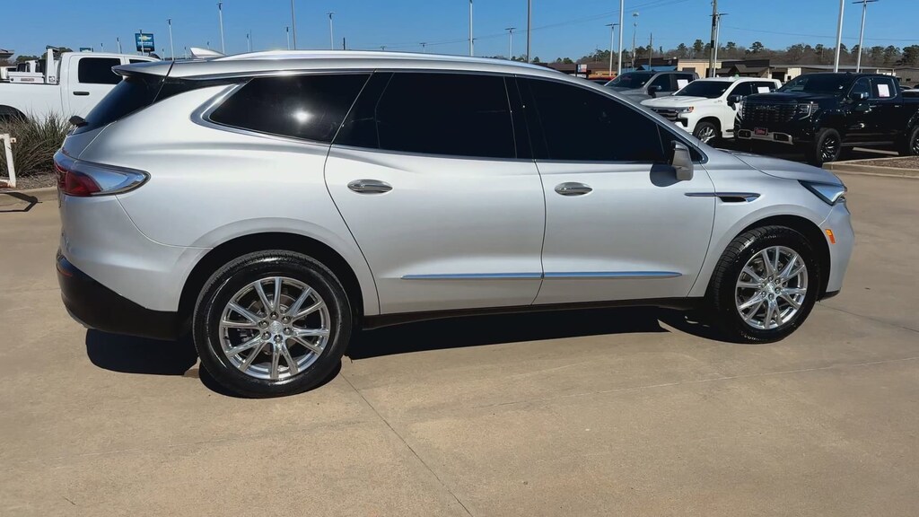 This 2022 Buick Enclave Premium Group in Quicksilver Metallic comes with the following features: 3.6L V6 SIDI VVT 9-Speed Automatic AWD Memory Package, Preferred Equipment Group 1SN (2nd Row Heated Outboard Seats, 3rd Row 60/40 Power-Folding Split-Bench Seat, Front & Rear Park Assist, and Heated Steering Wheel), 10 Speakers, 120-Volt Power Outlet, 18" Aluminum Wheels, 20" Polished Aluminum Wheels, 3.49 Axle Ratio, 3rd row seats: split-bench, 4-Wheel Disc Brakes, 6-Way Power Front Passenger Seat Adjuster, 7-Passenger Seating, 8-Way Power Driver Seat Adjuster, ABS brakes, Air Conditioning, Alloy wheels, AM/FM radio: SiriusXM with 360L, Auto High-beam Headlights, Auto-dimming door mirrors, Auto-dimming Rear-View mirror, Automatic temperature control, Bose Performance-Enhanced 10-Speaker System, Brake assist, Bumpers: body-color, Compass, Delay-off headlights, Driver 4-Way Power Lumbar Seat Adjuster, Driver door bin, Driver vanity mirror, Dual front impact airbags, Dual front side impact airbags, Electronic Stability Control, Emergency communication system: OnStar and Buick connected services capable, Four wheel independent suspension, Front anti-roll bar, Front Bucket Seats, Front Center Armrest, Front dual zone A/C, Front Passenger 4-Way Power Lumbar Seat Adjuster, Front reading lights, Fully automatic headlights, Garage door transmitter, Heads-Up Display, Heated door mirrors, Heated Driver & Front Passenger Seats, Heated front seats, Heated rear seats, Heated steering wheel, Illuminated entry, Leather steering wheel, Low tire pressure warning, Memory seat, Navigation System, Not Equipped w/Heated Rear Outboard Seats (DISC), Occupant sensing airbag, Outside temperature display, Overhead airbag, Overhead console, Panic alarm, Passenger door bin, Passenger vanity mirror, Perforated Leather-Appointed Seat Trim, Power door mirrors, Power driver seat, Power Liftgate, Power passenger seat, Power steering, Power windows, Premium audio system: Buick Infotainment System, Radio data system, Radio: Buick Infotainment Sys AM/FM Stereo w/Nav, Rear air conditioning, Rear anti-roll bar, Rear reading lights, Rear window defroster, Rear window wiper, Remote keyless entry, Roof rack: rails only, Security system, SiriusXM w/360L, Speed control, Speed-sensing steering, Spoiler, Steering wheel memory, Steering wheel mounted audio controls, Tachometer, Telescoping steering wheel, Tilt steering wheel, Traction control, Trip computer, Turn signal indicator mirrors, Variably intermittent wipers, Ventilated Driver & Front Passenger Seats, Ventilated front seats, Voltmeter, and Wireless Apple CarPlay/Wireless Android Auto.