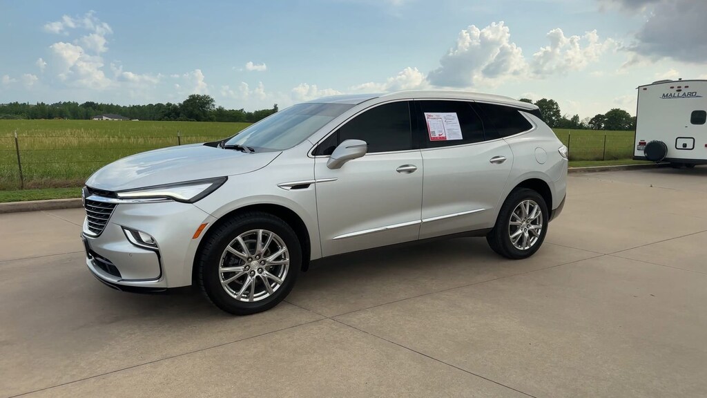 This 2022 Buick Enclave Premium Group in Quicksilver Metallic comes with the following features: 3.6L V6 SIDI VVT 9-Speed Automatic AWD Memory Package, Preferred Equipment Group 1SN (2nd Row Heated Outboard Seats, 3rd Row 60/40 Power-Folding Split-Bench Seat, Front & Rear Park Assist, and Heated Steering Wheel), AWD, 10 Speakers, 120-Volt Power Outlet, 18" Aluminum Wheels, 20" Polished Aluminum Wheels, 3.49 Axle Ratio, 3rd row seats: split-bench, 4-Wheel Disc Brakes, 6-Way Power Front Passenger Seat Adjuster, 7-Passenger Seating, 8-Way Power Driver Seat Adjuster, ABS brakes, Air Conditioning, Alloy wheels, AM/FM radio: SiriusXM with 360L, Auto High-beam Headlights, Auto-dimming door mirrors, Auto-dimming Rear-View mirror, Automatic temperature control, Bose Performance-Enhanced 10-Speaker System, Brake assist, Bumpers: body-color, Compass, Delay-off headlights, Driver 4-Way Power Lumbar Seat Adjuster, Driver door bin, Driver vanity mirror, Dual front impact airbags, Dual front side impact airbags, Electronic Stability Control, Emergency communication system: OnStar and Buick connected services capable, Four wheel independent suspension, Front anti-roll bar, Front Bucket Seats, Front Center Armrest, Front dual zone A/C, Front Passenger 4-Way Power Lumbar Seat Adjuster, Front reading lights, Fully automatic headlights, Garage door transmitter, Heads-Up Display, Heated door mirrors, Heated Driver & Front Passenger Seats, Heated front seats, Heated rear seats, Heated steering wheel, Illuminated entry, Leather steering wheel, Low tire pressure warning, Memory seat, Navigation System, Not Equipped w/Heated Rear Outboard Seats (DISC), Occupant sensing airbag, Outside temperature display, Overhead airbag, Overhead console, Panic alarm, Passenger door bin, Passenger vanity mirror, Perforated Leather-Appointed Seat Trim, Power door mirrors, Power driver seat, Power Liftgate, Power passenger seat, Power steering, Power windows, Premium audio system: Buick Infotainment System, Radio data system, Radio: Buick Infotainment Sys AM/FM Stereo w/Nav, Rear air conditioning, Rear anti-roll bar, Rear reading lights, Rear window defroster, Rear window wiper, Remote keyless entry, Roof rack: rails only, Security system, SiriusXM w/360L, Speed control, Speed-sensing steering, Spoiler, Steering wheel memory, Steering wheel mounted audio controls, Tachometer, Telescoping steering wheel, Tilt steering wheel, Traction control, Trip computer, Turn signal indicator mirrors, Variably intermittent wipers, Ventilated Driver & Front Passenger Seats, Ventilated front seats, Voltmeter, and Wireless Apple CarPlay/Wireless Android Auto.