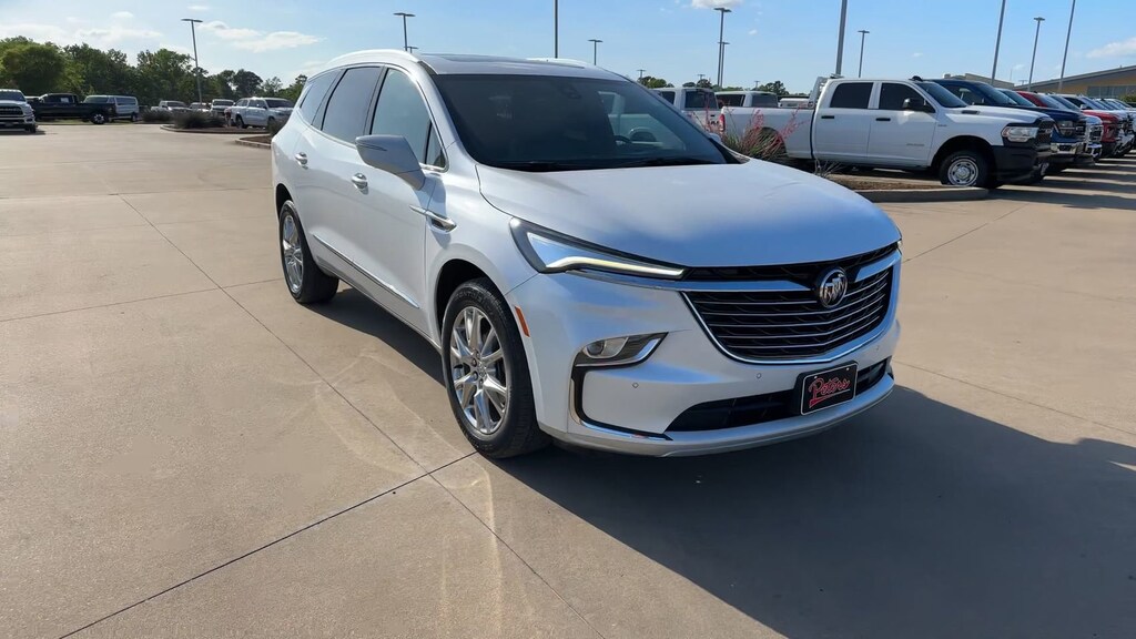 This 2023 Buick Enclave Premium Group in White Frost Tricoat comes with the following features: 3.6L V6 SIDI VVT 9-Speed Automatic FWD 5000lbs Trailering Package (Heavy-Duty Cooling System, Hitch Guidance, and Hitch Guidance w/Hitch View), Experience Buick Package (20" Polished Aluminum Wheels and Front Power Sliding Moonroof), Front Mounting License Plate Bracket Package, Memory Package, Preferred Equipment Group 1SN (2nd Row Heated Outboard Seats, Front & Rear Park Assist, and Heated Steering Wheel), 10 Speakers, 18" Aluminum Wheels, 3.49 Axle Ratio, 3rd row seats: split-bench, 4-Wheel Disc Brakes, 6-Way Power Front Passenger Seat Adjuster, 7-Passenger Seating, 8-Way Power Driver Seat Adjuster, ABS brakes, Air Conditioning, Alloy wheels, AM/FM radio: SiriusXM with 360L, Auto High-beam Headlights, Auto-dimming door mirrors, Auto-dimming Rear-View mirror, Automatic temperature control, Bose Performance-Enhanced 10-Speaker System, Brake assist, Bumpers: body-color, Compass, Delay-off headlights, Driver 4-Way Power Lumbar Seat Adjuster, Driver door bin, Driver vanity mirror, Dual front impact airbags, Dual front side impact airbags, Electronic Stability Control, Emergency communication system: OnStar and Buick connected services capable, Exterior Parking Camera Rear, Four wheel independent suspension, Front anti-roll bar, Front Bucket Seats, Front Center Armrest, Front dual zone A/C, Front Passenger 4-Way Power Lumbar Seat Adjuster, Front reading lights, Fully automatic headlights, Garage door transmitter, Heads-Up Display, Heated door mirrors, Heated Driver & Front Passenger Seats, Heated front seats, Heated rear seats, Heated steering wheel, Illuminated entry, Leather steering wheel, Low tire pressure warning, Memory seat, Navigation System, Not Equipped w/3rd Row 60/40 Power-Folding Seat, Occupant sensing airbag, Outside temperature display, Overhead airbag, Overhead console, Panic alarm, Passenger door bin, Passenger vanity mirror, Perforated Leather-Appointed Seat Trim, Power door mirrors, Power driver seat, Power Liftgate, Power passenger seat, Power steering, Power windows, Premium audio system: Buick Infotainment System, Radio data system, Radio: Buick Infotainment Sys AM/FM Stereo w/Nav, Rear air conditioning, Rear anti-roll bar, Rear reading lights, Rear window defroster, Rear window wiper, Remote keyless entry, Roof rack: rails only, Security system, SiriusXM w/360L, Speed control, Speed-sensing steering, Spoiler, Steering wheel memory, Steering wheel mounted audio controls, Tachometer, Telescoping steering wheel, Tilt steering wheel, Traction control, Trip computer, Turn signal indicator mirrors, Variably intermittent wipers, Ventilated Driver & Front Passenger Seats, Ventilated front seats, Voltmeter, and Wireless Apple CarPlay/Wireless Android Auto.