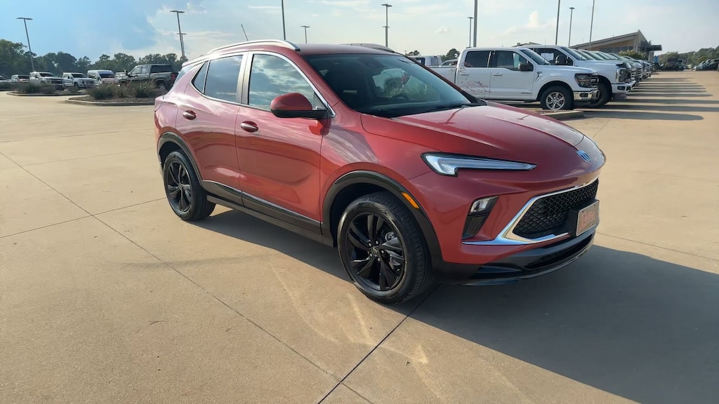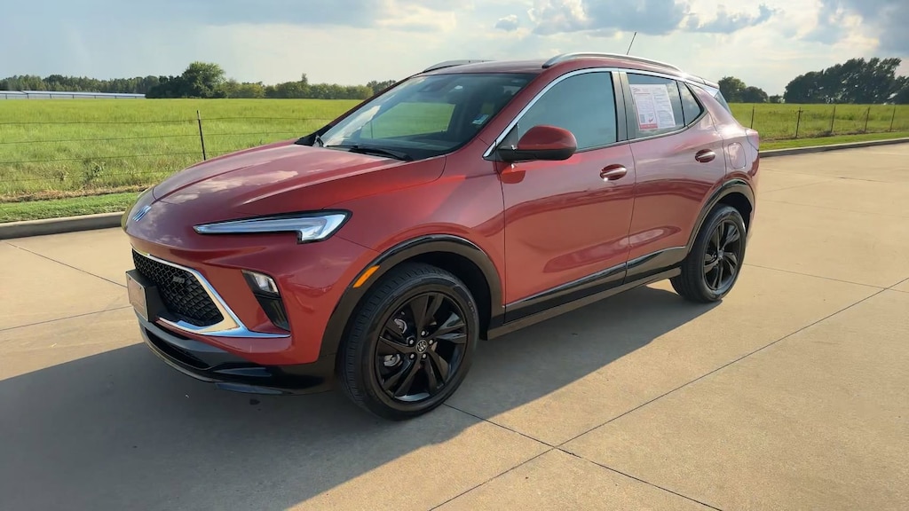 This 2024 Buick Encore GX Sport Touring in Sunrise Red Metallic comes with the following features: ECOTEC 1.3L Turbo 9-Speed Automatic AWD Preferred Equipment Group 1SD, 2 USB Ports (1 Type-A, 1 Type-C), 3.17 Final Drive Axle Ratio, 4-Way Manual Passenger Seat Adjuster, 4-Wheel Disc Brakes, 6-Way Manual Driver Seat Adjuster, 7 Speakers, ABS brakes, Air Conditioning, Alloy wheels, AM/FM radio: SiriusXM, Auto High-beam Headlights, Automatic temperature control, Brake assist, Bumpers: body-color, Compass, Delay-off headlights, Driver door bin, Driver vanity mirror, Dual front impact airbags, Dual front side impact airbags, Electronic Stability Control, Emergency communication system: OnStar and Buick connected services capable, Enhanced Performance 7-Speaker System w/Amplifier, Front anti-roll bar, Front Bucket Seats, Front Center Armrest, Front License Plate Bracket, Front reading lights, Front wheel independent suspension, Fully automatic headlights, Heated door mirrors, Illuminated entry, Knee airbag, Leatherette Seat Trim, Low tire pressure warning, Occupant sensing airbag, Outside temperature display, Overhead airbag, Overhead console, Panic alarm, Passenger door bin, Passenger vanity mirror, Power door mirrors, Power steering, Power windows, Radio data system, Radio: Audio System w/AM/FM, Rear reading lights, Rear side impact airbag, Rear window defroster, Rear window wiper, Remote keyless entry, Ride & Handling Suspension, Security system, SiriusXM, Speed control, Speed-sensing steering, Split folding rear seat, Spoiler, Sport steering wheel, Steering wheel mounted audio controls, Tachometer, Telescoping steering wheel, Tilt steering wheel, Traction control, Trip computer, Variably intermittent wipers, Wheels: 18" Gloss Black Aluminum, and Wireless Apple CarPlay/Wireless Android Auto.