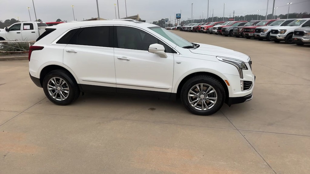 This 2021 Cadillac XT5 Premium Luxury in Crystal White Tricoat comes with the following features: 3.6L V6 DI VVT 9-Speed Automatic FWD Enhanced Visibility & Technology Package (8" Color Driver Information Center Display, Automatic Parking Assist w/Braking, HD Surround Vision, Head-Up Display, Rear Camera Mirror, Rear Camera Mirror Washer, and Rear Pedestrian Alert), Premium Luxury Package 1SC (Automatic Dual-Zone Climate Control, Automatic Emergency Braking, Dual Driver Info Center Display Gauge Cluster, Front & Rear Park Assist, HD Rear Vision Camera, Inside Rear-View Auto-Dimming Mirror, and Teen Driver), Radio: Cadillac User Experience w/Embedded Nav (Bose Performance Series 14 Speakers System and Light Pipes in Doors Lighting Accent), 155 Amp Alternator, 2-Way Power Driver Lumbar Control Seat Adjuster, 2-Way Power Passenger Lumbar Control Seat Adjuster, 3.47 Axle Ratio, 4-Wheel Disc Brakes, 4-Wheel Independent Suspension, 8 Speakers, ABS brakes, Air Conditioning, Air Ionizer, Alloy wheels, AM/FM radio: SiriusXM, Apple CarPlay/Android Auto, Audio memory, Auto High-beam Headlights, Auto-dimming door mirrors, Auto-dimming Rear-View mirror, Automatic Stop/Start w/Disable, Automatic temperature control, Bodyside moldings, Bose Premium 8-Speaker Audio System Feature, Brake assist, Bumpers: body-color, Compass, Delay-off headlights, Driver door bin, Driver vanity mirror, Dual front impact airbags, Dual front side impact airbags, Electronic Stability Control, Emergency communication system: OnStar and Cadillac connected services capable, Exterior Parking Camera Rear, Four wheel independent suspension, Front anti-roll bar, Front Bucket Seats, Front Center Armrest, Front dual zone A/C, Front License Plate Bracket, Front reading lights, Fully automatic headlights, Garage door transmitter, Heated door mirrors, Heated Driver & Front Passenger Seats, Heated front seats, Heated Rear Outboard Seating Positions, Heated steering wheel, Illuminated entry, Knee airbag, Leather Seating Surfaces w/Mini Perforated Inserts, Leather steering wheel, Low tire pressure warning, Memory seat, Occupant sensing airbag, Outside temperature display, Overhead airbag, Overhead console, Panic alarm, Passenger door bin, Passenger vanity mirror, Power door mirrors, Power driver seat, Power Liftgate, Power moonroof: UltraView, Power passenger seat, Power steering, Power windows, Radio data system, Radio: Cadillac User Experience AM/FM Stereo, Rain sensing wipers, Rear anti-roll bar, Rear reading lights, Rear seat center armrest, Rear window defroster, Rear window wiper, Remote keyless entry, Security system, SiriusXM w/360L, Speed control, Speed-sensing steering, Split folding rear seat, Spoiler, Steering wheel memory, Steering wheel mounted audio controls, Tachometer, Telescoping steering wheel, Tilt steering wheel, Traction control, Tri-Zone Automatic Climate Control, Trip computer, Turn signal indicator mirrors, Variably intermittent wipers, Ventilated Driver & Front Passenger Seats, Voltmeter, and Wheels: 18" 6-Split Spoke Alloy.