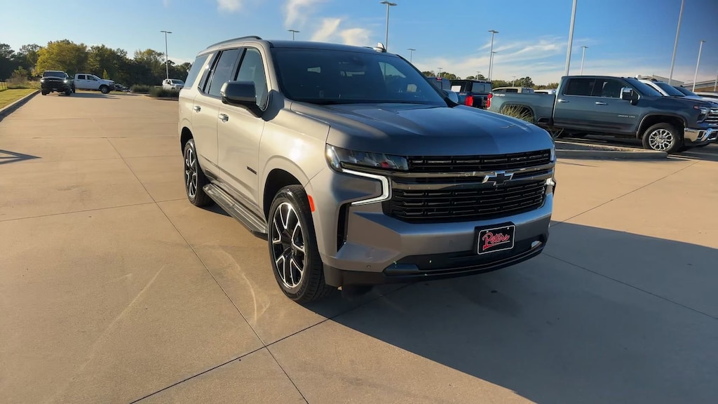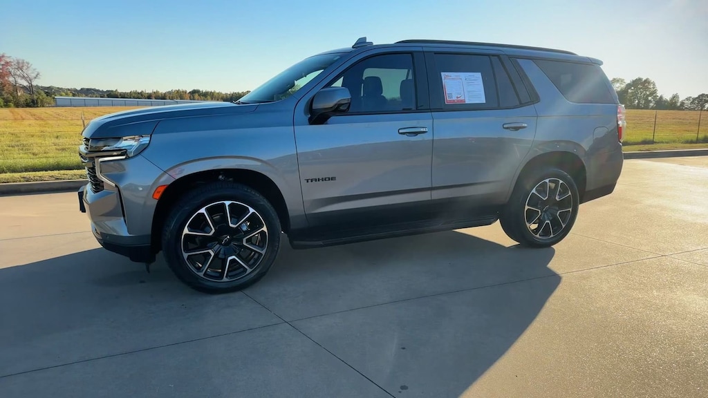 This 2021 Chevrolet Tahoe RST in Satin Steel Metallic comes with the following features: EcoTec3 5.3L V8 10-Speed Automatic with Overdrive RWD Driver Alert Package (Front & Rear Park Assist, Lane Change Alert w/Side Blind Zone Alert, Lane Keep Assist w/Lane Departure Warning, and Rear Cross Traffic Alert), License Plate Front Mounting Package, Luxury Package (2nd Row Pwr Release 60/40 Split-Folding Bench Seat, 3rd Row 60/40 Power-Folding Split-Bench Seat, Automatic Heated Steering Wheel, HD Surround Vision, Heated 2nd Row Outboard Seats, Memory Settings, Outside Heated Power-Adjustable Mirrors, Power Tilt & Telescopic Steering Column, and Rear Pedestrian Alert), Preferred Equipment Group 1SP (1st & 2nd Row Color-Keyed Carpeted Floor Mats, 2 USB Data Ports, Auto-Dimming Inside Rear-View Mirror, Bright Front & Rear Door Sill Plates, Color-Keyed Carpeting Floor Covering, Driver & Front Outboard Passenger Airbags, Floor Console w/Storage Area, Hands-Free Rear Power Programmable Liftgate, HD Radio, Infotainment Display, Leather-Wrapped Steering Wheel, LED Daytime Running Lamps, Memory Settings for Driver, Remote Start, SiriusXM Radio w/360L, and Universal Home Remote), 10-Way Power Driver & Passenger Seat Adjusters, 3.23 Rear Axle Ratio, 3rd row seats: split-bench, 4-Wheel Disc Brakes, 9 Speakers, ABS brakes, Air Conditioning, Alloy wheels, AM/FM radio: SiriusXM with 360L, Apple CarPlay/Android Auto, Auto High-beam Headlights, Auto-dimming Rear-View mirror, Automatic temperature control, Bose 9-Speaker Stereo Audio System Feature, Brake assist, Bumpers: body-color, Compass, Delay-off headlights, Driver door bin, Driver vanity mirror, Dual front impact airbags, Dual front side impact airbags, Electronic Stability Control, Emergency communication system: OnStar and Chevrolet connected services capable, Four wheel independent suspension, Front anti-roll bar, Front Bucket Seats, Front Center Armrest, Front dual zone A/C, Front High-Back Reclining Bucket Seats, Front reading lights, Fully automatic headlights, Garage door transmitter, Heated door mirrors, Heated Driver & Front Passenger Seats, Heated front seats, Illuminated entry, Leather steering wheel, Low tire pressure warning, Memory seat, Occupant sensing airbag, Outside temperature display, Overhead airbag, Overhead console, Panic alarm, Passenger door bin, Passenger vanity mirror, Perforated Leather Seat Trim, Power door mirrors, Power driver seat, Power Liftgate, Power passenger seat, Power Release 2nd Row Bucket Seats, Power steering, Power windows, Premium audio system: Chevrolet Infotainment 3, Premium Smooth Ride Suspension, Radio: Chevrolet Infotainment 3 Plus System, Rain sensing wipers, Rear air conditioning, Rear anti-roll bar, Rear reading lights, Rear seat center armrest, Rear window defroster, Rear window wiper, Remote keyless entry, Roof rack: rails only, Security system, Set of 4 Wheel Locks (LPO), Speed control, Speed-sensing steering, Split folding rear seat, Spoiler, Steering wheel mounted audio controls, Tachometer, Telescoping steering wheel, Tilt steering wheel, Traction control, Trip computer, Variably intermittent wipers, Voltmeter, and Wheels: 22" x 9" Bright Machined.