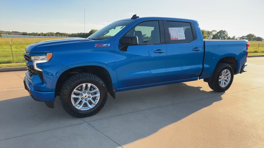 This 2022 Chevrolet Silverado 1500 RST in Glacier Blue Metallic comes with the following features: 3.0L I6 10-Speed Automatic 4WD Convenience Package (10-Way Power Driver Seat w/Lumbar, 120-Volt Bed Mounted Power Outlet, 120-Volt Instrument Panel Power Outlet, Dual Rear USB Ports (Charge Only), Dual-Zone Automatic Climate Control, Electric Rear-Window Defogger, Heated Driver & Front Outboard Passenger Seats, Heated Steering Wheel, Keyless Open & Start, Leather Wrapped Steering Wheel, Manual Tilt/Telescoping Steering Column, Remote Vehicle Starter System, and Theft Deterrent System (Unauthorized Entry)), Diesel Off-Road Package (3.73 Rear Axle Ratio, Chrome Assist Steps, and Hard-Folding Tonneau Cover (LPO)), Preferred Equipment Group 1SP (12.3" Multicolor Reconfigurable Digital Display, 6-Speaker Audio System, All-Star Edition, Auto-Locking Rear Differential, Bluetooth® For Phone, Chevrolet Connected Access Capable, Color-Keyed Carpeting Floor Covering, Compass, Deep-Tinted Glass, Electrical Steering Column Lock, Electronic Cruise Control, EZ Lift Power Lock & Release Tailgate, Front Frame-Mounted Black Recovery Hooks, Front LED Fog Lamps, Front Rubberized Vinyl Floor Mats, HD Rear Vision Camera, Heated Power-Adjustable Outside Mirrors, High Gloss Black Mirror Caps, Inside Rear-View Mirror w/Tilt, LED Cargo Area Lighting, OnStar & Chevrolet Connected Services Capable, Power Front Windows w/Driver Express Up/Down, Power Front Windows w/Passenger Express Down, Power Rear Windows w/Express Down, Rear 60/40 Folding Bench Seat (Folds Up), Rear Rubberized-Vinyl Floor Mats, SiriusXM w/360L, Standard Tailgate, Steering Wheel Audio Controls, Wi-Fi Hot Spot Capable, and Wireless Phone Projection), Standard Suspension Package, Trailering Package (Hitch Guidance), Z71 Off-Road Package (Dual Exhaust w/Polished Outlets, Heavy-Duty Air Filter, Hill Descent Control, and Off-Road Suspension), Silverado 1500 RST, 4D Crew Cab, 3.0L I6, Glacier Blue Metallic, Premium audio system: Chevrolet Infotainment 3 Premium, 2 USB Data Ports, 220 Amp Alternator, 4-Wheel Disc Brakes, 40/20/40 Front Split-Bench Seat, 6 Speakers, ABS brakes, Air Conditioning, Alloy wheels, AM/FM