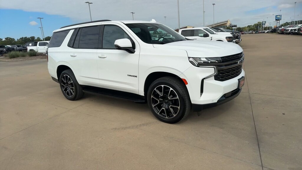 This 2022 Chevrolet Tahoe RST in Summit White comes with the following features: EcoTec3 5.3L V8 10-Speed Automatic with Overdrive 4WD Driver Alert Package (Lane Change Alert w/Side Blind Zone Alert and Rear Cross Traffic Alert), License Plate Front Mounting Package, Luxury Package (2nd Row Pwr Release 60/40 Split-Folding Bench Seat, 3rd Row 60/40 Power-Folding Split-Bench Seat, HD Surround Vision, Heated 2nd Row Outboard Seats, Heated Steering Wheel, Memory Settings, Outside Heated Power-Adjustable Mirrors, Power Tilt & Telescopic Steering Column, and Rear Pedestrian Alert), Preferred Equipment Group 1SP (1st & 2nd Row Color-Keyed Carpeted Floor Mats, Auto-Dimming Inside Rear-View Mirror, Automatic Stop/Start, Bose 9-Speaker Stereo Audio System Feature, Bright Front & Rear Door Sill Plates, Color-Keyed Carpeting Floor Covering, Driver & Front Outboard Passenger Airbags, Enhanced Driver Information Center, Floor Console w/Storage Area, Hands-Free Rear Power Programmable Liftgate, Infotainment Display, Leather-Wrapped Steering Wheel, LED Daytime Running Lamps, Memory Settings for Driver, Remote Start, SiriusXM Radio w/360L, Start/Stop System Disable Button, Universal Home Remote, and Wireless Charging), 10-Way Power Driver & Passenger Seat Adjusters, 3.23 Rear Axle Ratio, 3rd row seats: split-bench, 4-Wheel Disc Brakes, 9 Speakers, ABS brakes, Air Conditioning, Alloy wheels, AM/FM radio: SiriusXM with 360L, Apple CarPlay/Android Auto, Auto High-beam Headlights, Auto-dimming Rear-View mirror, Automatic temperature control, Brake assist, Bumpers: body-color, Compass, Delay-off headlights, Driver door bin, Driver vanity mirror, Dual front impact airbags, Dual front side impact airbags, Electronic Stability Control, Emergency communication system: OnStar and Chevrolet connected services capable, Four wheel independent suspension, Front anti-roll bar, Front Bucket Seats, Front Center Armrest, Front dual zone A/C, Front High-Back Reclining Bucket Seats, Front reading lights, Fully automatic headlights, Garage door transmitter, Heated door mirrors, Heated Driver & Front Passenger Seats, Heated front seats, Illuminated entry, Leather steering wheel, Low tire pressure warning, Memory seat, Navigation System, Not Equipped w/Front & Rear Park Assist, Not Equipped w/Heated Rear Outboard Seats, Not Equipped w/Heated/Ventilated Front Seats, Not Equipped w/Steering Column Lock, Occupant sensing airbag, Outside temperature display, Overhead airbag, Overhead console, Panic alarm, Passenger door bin, Passenger vanity mirror, Perforated Leather Seat Trim, Power door mirrors, Power driver seat, Power Liftgate, Power passenger seat, Power Release 2nd Row Bucket Seats, Power steering, Power windows, Premium audio system: Chevrolet Infotainment System 3, Premium Smooth Ride Suspension, Radio: Chevrolet Infotainment 3 Premium System, Rain sensing wipers, Rear air conditioning, Rear anti-roll bar, Rear reading lights, Rear seat center armrest, Rear window defroster, Rear window wiper, Remote keyless entry, Roof rack: rails only, Security system, Set of 4 Wheel Locks (LPO), Speed control, Speed-sensing steering, Split folding rear seat, Spoiler, Steering wheel mounted audio controls, Tachometer, Telescoping steering wheel, Tilt steering wheel, Traction control, Trip computer, Variably intermittent wipers
