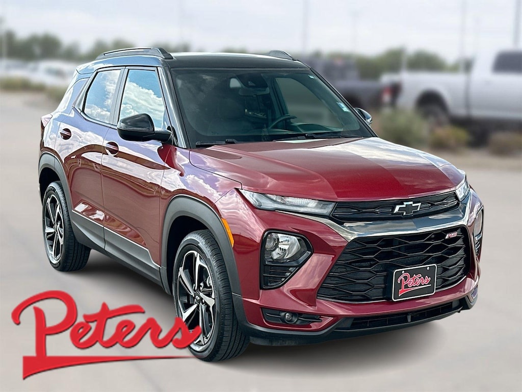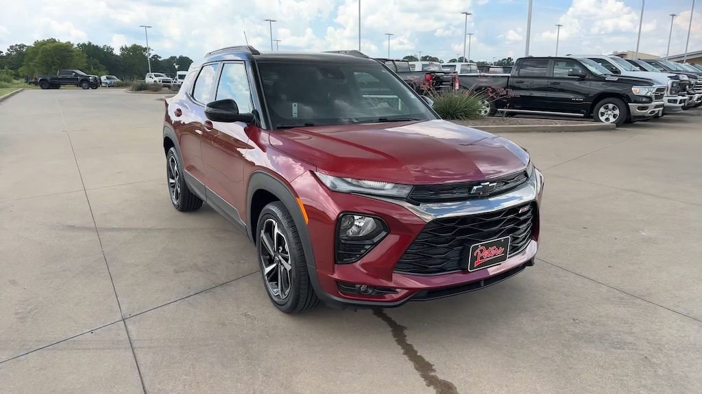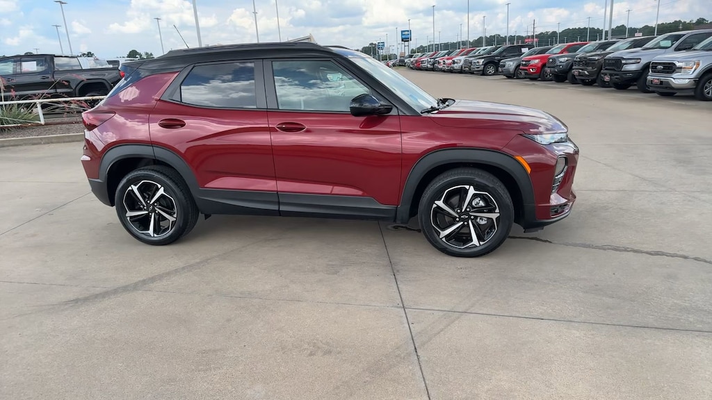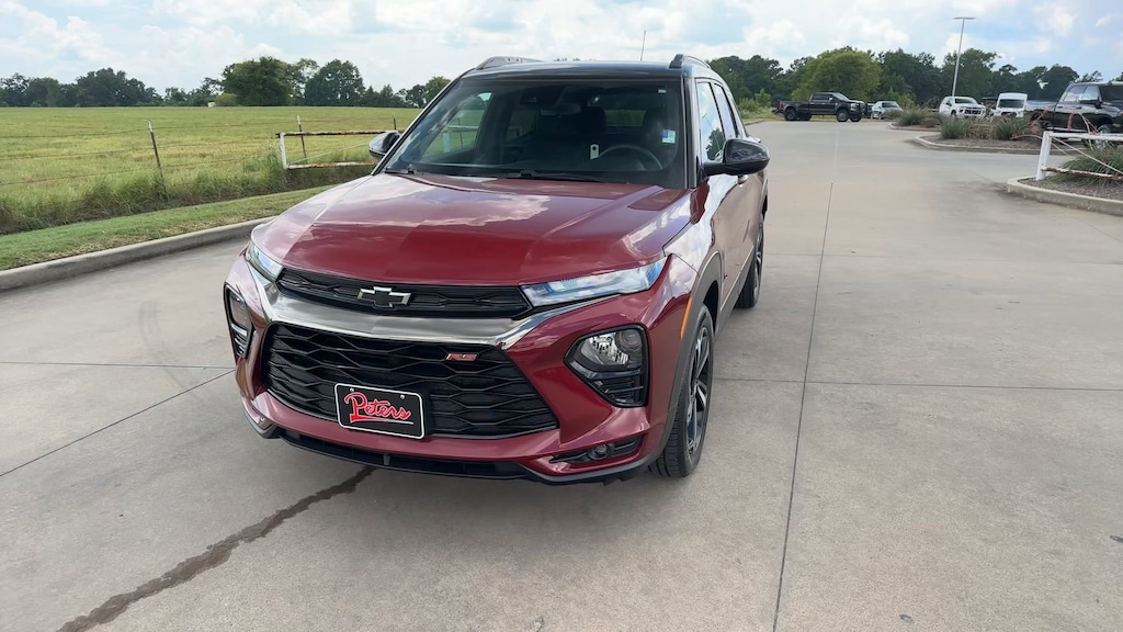 This 2022 Chevrolet TrailBlazer RS in Crimson Metallic comes with the following features: 1.3L Ecotec Turbo DOHC SIDI w/VVT CVT FWD Preferred Equipment Group 1RS (Heated Steering Wheel), 2-Way Power Driver Lumbar Seat Adjuster, 4-Way Manual Front Passenger Seat Adjuster, 4-Wheel Disc Brakes, 5.45 Axle Ratio, 6 Speakers, 6-Speaker Audio System Feature, 8-Way Power Driver Seat Adjuster, ABS brakes, Air Conditioning, Alloy wheels, AM/FM radio: SiriusXM, Auto High-beam Headlights, Brake assist, Bumpers: body-color, Cloth w/Leatherette Seat Trim, Compass, Delay-off headlights, Driver door bin, Driver vanity mirror, Dual front impact airbags, Dual front side impact airbags, Electronic Stability Control, Emergency communication system: OnStar and Chevrolet connected services capable, Exterior Parking Camera Rear, Flat-Folding Front Passenger Seatback, Front anti-roll bar, Front Bucket Seats, Front Center Armrest, Front fog lights, Front License Plate Bracket, Front reading lights, Front wheel independent suspension, Fully automatic headlights, Heated door mirrors, Heated Driver & Front Passenger Seats, Heated front seats, Heated steering wheel, Illuminated entry, Knee airbag, Leather Shift Knob, Leather steering wheel, Low tire pressure warning, Mosaic Black Metallic Two-Tone Roof, Not Equipped w/Driver & Fr Passenger Heated Seats, Occupant sensing airbag, Overhead airbag, Overhead console, Panic alarm, Passenger door bin, Passenger vanity mirror, Power door mirrors, Power driver seat, Power steering, Power windows, Radio data system, Radio: Chevrolet Infotainment 3 System, Rear seat center armrest, Rear side impact airbag, Rear window defroster, Rear window wiper, Remote keyless entry, Ride & Handling Suspension, Roof rack: rails only, Security system, SiriusXM Radio, Speed control, Split folding rear seat, Spoiler, Steering wheel mounted audio controls, Tachometer, Telescoping steering wheel, Tilt steering wheel, Traction control, Trip computer, Variably intermittent wipers, Wheels: 18" High Gloss Black Machined Aluminum, and Wireless Apple CarPlay/Android Auto.