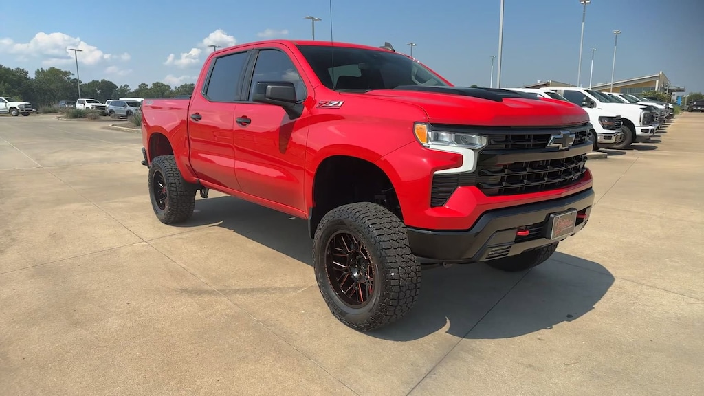 This 2023 Chevrolet Silverado 1500 LT Trail Boss in Red Hot comes with the following features: EcoTec3 5.3L V8 10-Speed Automatic 4WD Convenience Package (10-Way Power Driver Seat w/Lumbar, 120-Volt Bed Mounted Power Outlet, 120-Volt Instrument Panel Power Outlet, Dual Rear USB Ports (Charge Only), Dual-Zone Automatic Climate Control, Electric Rear-Window Defogger, Heated Driver & Front Outboard Passenger Seats, Heated Steering Wheel, Keyless Open & Start, Remote Vehicle Starter System, Theft Deterrent System (Unauthorized Entry), and Wrapped Steering Wheel), Preferred Equipment Group 2LT (12.3" Multicolor Reconfigurable Digital Display, 6-Speaker Audio System, All-Weather Floor Liner (LPO) (AAK), Auto-Locking Rear Differential, Bluetooth® For Phone, Chevrolet Connected Access Capable, Color-Keyed Carpeting Floor Covering, Compass, Deep-Tinted Glass, Electrical Steering Column Lock, Electronic Cruise Control, EZ Lift Power Lock & Release Tailgate, Front LED Fog Lamps, HD Rear Vision Camera, Heated Power-Adjustable Outside Mirrors, High Gloss Black Mirror Caps, Inside Rear-View Mirror w/Tilt, LED Cargo Area Lighting, OnStar & Chevrolet Connected Services Capable, Performance Red Recovery Hooks, Power Front Windows w/Driver Express Up/Down, Power Front Windows w/Passenger Express Down, Power Rear Windows w/Express Down, Rear 60/40 Folding Bench Seat (Folds Up), SiriusXM w/360L, Standard Tailgate, Steering Wheel Audio Controls, Wi-Fi Hot Spot Capable, and Wireless Phone Projection), Protection Package (Chevytec Spray-On Black Bedliner and Rear Wheelhouse Liners), Suspension Package (Heavy-Duty Air Filter and Hill Descent Control), Trailering Package (Hitch Guidance), 10-Speed Automatic, 4WD, Black Cloth, 170 Amp Alternator, 2 USB Data Ports, 220 Amp Alternator, 4-Wheel Disc Brakes, 40/20/40 Front Split-Bench Seat, 6 Speakers, ABS brakes, Air Conditioning, Alloy wheels, AM/FM radio: SiriusXM with 360L, Apple CarPlay/Android Auto, Auto High-beam Headlights, Automatic Emergency Braking, Automatic temperature control, Auxiliary External Transmission Oil Cooler, Brake assist, Cloth Seat Trim, Delay-off headlights, Driver door bin, Driver vanity mirror, Dual Exhaust w/Polished Outlets, Dual front impact airbags, Dual front side impact airbags, Electronic Stability Control, Electronic Transmission Range Selector Shifter, External Engine Oil Cooler, Floor Mounted Center Console, Following Distance Indicator, Forward Collision Alert, Front anti-roll bar, Front Bucket Seats, Front Center Armrest w/Storage, Front dual zone A/C, Front fog lights, Front License Plate Kit, Front Pedestrian Braking, Front reading lights, Front wheel independent suspension, Fully automatic headlights, Heated door mirrors, Heated front seats, Heated steering wheel, Illuminated entry, IntelliBeam Automatic High Beam On/Off, Lane Keep Assist w/Lane Departure Warning, Low tire pressure warning, Not Equipped w/Functional Cab & Bed Power Outlets, Not Equipped w/Steering Column Lock, Not Equipped w/Wireless Charging, Occupant sensing airbag, Off-Road Assist Steps (LPO), Outside temperature display, Overhead airbag, Overhead console, Panic alarm, Passenger door bin, Passenger vanity mirror, Power door mirrors, Power driver seat, Power steering, Power windows, Premium audio system: Chevrolet Infotainment 3 Premium, Radio data system, Radio: Chevrolet Infotainment 3 Premium System, Rear reading lights, Rear step bumper, Rear window defroster, Remote keyless entry, Security system, Speed control, Speed-sensing steering, Split folding rear seat, Steering wheel mounted audio controls, Tachometer, Telescoping steering wheel, Tilt steering wheel, Traction control, Trip computer, Variably intermittent wipers, Voltmeter, Wheel Locks (Set of 4) (LPO), Wheels: 18" x 8.5" Black Painted Aluminum, Wheels: 20" x 9" High Gloss Black Painted Alum, and Wireless Charging.