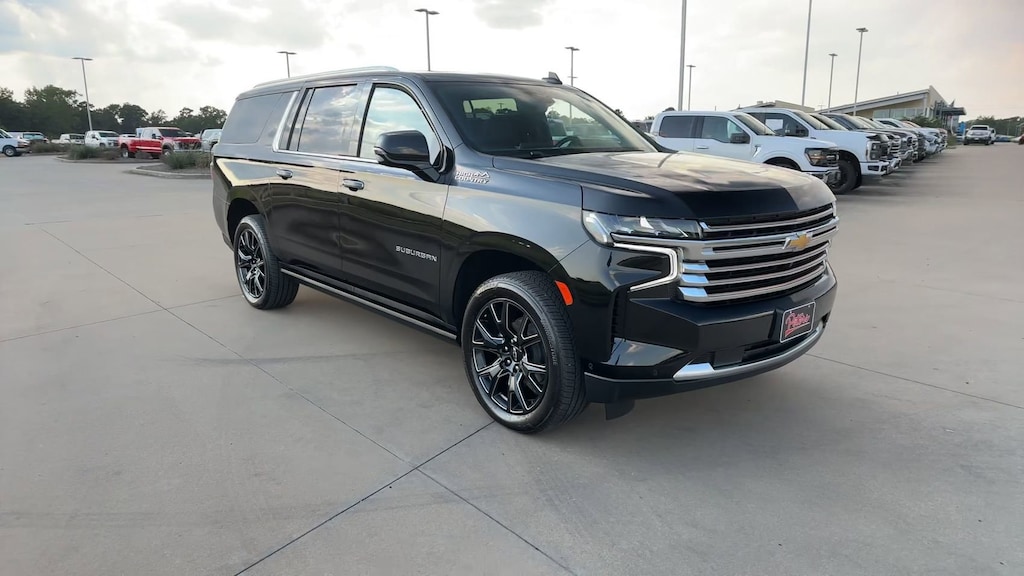 This 2024 Chevrolet Suburban High Country in Black comes with the following features: EcoTec3 6.2L V8 10-Speed Automatic with Overdrive 4WD Advanced Technology Package (Enhanced Automatic Parking Assist, Reverse Automatic Braking, and Super Cruise), Advanced Trailering Package (Hitch View w/Pan/Zoom Image Adjustment, Integrated Trailer Brake Controller, Smart Trailer Integration Indicator, and Trailer Side Blind Zone Alert), License Plate Front Mounting Package, Max Trailering Package (Extra Capacity Cooling System), Preferred Equipment Group 3LZ (12-Way Power Driver & Passenger Seat Adjusters, 15" Diagonal Multi-Color Head-Up Display, 1st & 2nd Row Color-Keyed Carpeted Floor Mats, 2-Speed Active Electronic AutoTrac Transfer Case, 3rd Row 60/40 Power-Folding Split-Bench, Adaptive Cruise Control, Bose 10-Speaker Surround w/CenterPoint, Bright Front & Rear Door Sill Plates, Chrome Door Handles w/Body-Color Strip, Color-Keyed Carpeting Floor Covering, Driver & Front Outboard Passenger Airbags, Dual Exhaust System, Enhanced Automatic Emergency Braking, Enhanced Driver Information Center, Floor Console, Hands-Free Rear Power Programmable Liftgate, HD Surround Vision, Heated 2nd Row Outboard Seats, Heated Driver & Front Passenger Seats, Heated Steering Wheel, Hill Descent Control, Infotainment Display, Inside Rearview Auto-Dimming Rear Camera Mirror, Lane Change Alert w/Side Blind Zone Alert, LED Daytime Running Lamps, Memory Settings, Outside Heated Power-Adjustable Mirrors, Perforated Heated & Ventilated Seats, Power Release 2nd Row Bucket Seats, Power Tilt & Telescopic Steering Column, Rear Camera Mirror Washer, Rear Cross Traffic Alert, Rear Pedestrian Alert, Remote Start, Safety Alert Seat, SiriusXM w/360L, Universal Home Remote, Wireless Charging, and Wrapped Steering Wheel), 10 Speakers, 3.23 Rear Axle Ratio, 3rd row seats: split-bench, 4-Wheel Disc Brakes, ABS brakes, Adaptive suspension, Air Conditioning, Alloy wheels, AM/FM radio: SiriusXM with 360L, Apple CarPlay/Android Auto, Auto High-beam Headlights, Auto-dimming door mirrors, Auto-dimming Rear-View mirror, Auto-leveling suspension, Automatic temperature control, Brake assist, Bumpers: body-color, Compass, Delay-off headlights, Driver door bin, Driver vanity mirror, Dual front impact airbags, Dual front side impact airbags, Dual-Pane Power Panoramic Sunroof, Electronic Stability Control, Emergency communication system: OnStar and Chevrolet connected services capable, Exterior Parking Camera Rear, Four wheel independent suspension, Front anti-roll bar, Front Bucket Seats, Front Center Armrest, Front dual zone A/C, Front reading lights, Fully automatic headlights, Garage door transmitter, Heads-Up Display, Heated door mirrors, Heated front seats, Heated rear seats, Heated steering wheel, Illuminated entry, Low tire pressure warning, Magnetic Ride Control Suspension, Memory seat, Navigation System, Occupant sensing airbag, Outside temperature display, Overhead airbag, Overhead console, Panic alarm, Passenger door bin, Passenger vanity mirror, Perforated Leather Seating Surfaces, Power door mirrors, Power driver seat, Power Liftgate, Power passenger seat, Power steering, Power windows, Power-Retractable Assist Steps, Premium audio system: Chevrolet Infotainment 3 Premium, Radio: Chevrolet Infotainment 3 Premium System, Rain sensing wipers, Rear air conditioning, Rear anti-roll bar, Rear reading lights, Rear Seat Media System, Rear window defroster, Rear window wiper, Remote keyless entry, Roof rack: xxxxxx, Security system, Speed control, Speed-sensing steering, Split folding rear seat, Spoiler, Steering wheel memory, Steering wheel mounted audio controls, Tachometer, Telescoping steering wheel, Tilt steering wheel, Traction control, Trip computer, Turn signal indicator mirrors, Variably intermittent wipers, Ventilated front seats, Voltmeter, Wheel Locks (Set of 4) (LPO), Wheels: 22" x 9" 6-Spoke Carbon Flash Metallic Alum, and Wh