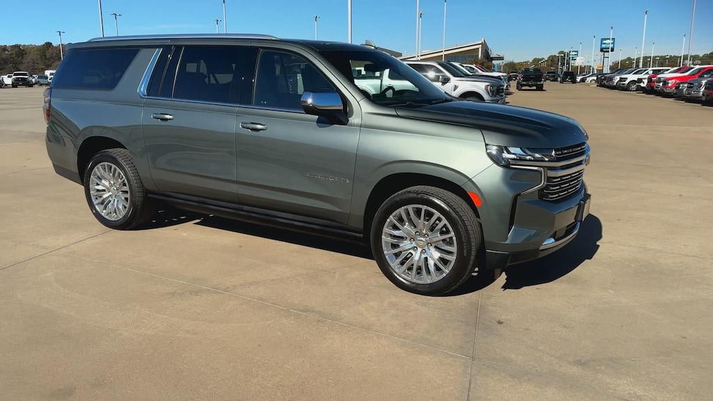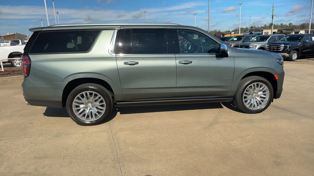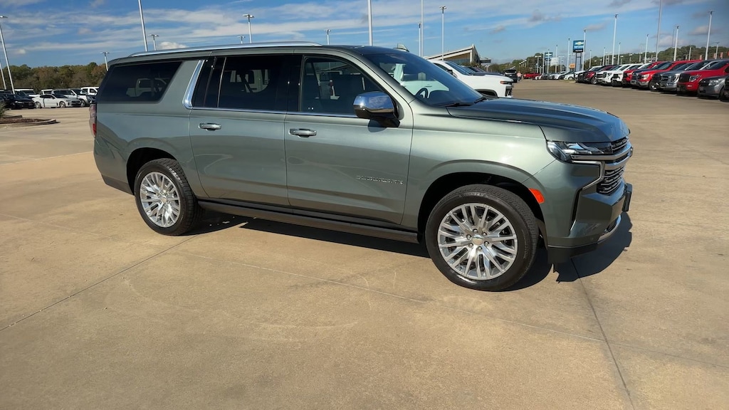 This 2024 Chevrolet Suburban Premier in Silver Sage Metallic comes with the following features: EcoTec3 5.3L V8 10-Speed Automatic with Overdrive 4WD Advanced Trailering Package (Hitch View w/Pan/Zoom Image Adjustment, Integrated Trailer Brake Controller, Smart Trailer Integration Indicator, and Trailer Side Blind Zone Alert), License Plate Front Mounting Package, Max Trailering Package (Extra Capacity Cooling System), Preferred Equipment Group 1LZ (12-Way Power Driver & Passenger Seat Adjusters, 1st & 2nd Row Color-Keyed Carpeted Floor Mats, 2-Speed Active Electronic AutoTrac Transfer Case, 3rd Row 60/40 Power-Folding Split-Bench, Auto-Dimming Inside Rear-View Mirror, Bose 10-Speaker Surround w/CenterPoint, Bright Front & Rear Door Sill Plates, Chrome Door Handles w/Body-Color Strip, Chrome Mirror Caps, Color-Keyed Carpeting Floor Covering, Driver & Front Outboard Passenger Airbags, Dual Exhaust System, Enhanced Driver Information Center, Floor Console, Hands-Free Rear Power Programmable Liftgate, Heated 2nd Row Outboard Seats, Heated Driver & Front Passenger Seats, Heated Steering Wheel, Hill Descent Control, Infotainment Display, Lane Change Alert w/Side Blind Zone Alert, LED Daytime Running Lamps, Memory Settings, Outside Heated Power-Adjustable Mirrors, Perforated Heated & Ventilated Seats, Power Release 2nd Row Bucket Seats, Power Tilt & Telescopic Steering Column, Rear Cross Traffic Alert, Remote Start, Safety Alert Seat, SiriusXM w/360L, Universal Home Remote, Wireless Charging, and Wrapped Steering Wheel), 10 Speakers, 20" x 9" Polished Aluminum Wheels, 3.23 Rear Axle Ratio, 3rd row seats: split-bench, 4-Wheel Disc Brakes, ABS brakes, Adaptive suspension, Air Conditioning, Alloy wheels, AM/FM radio: SiriusXM with 360L, Apple CarPlay/Android Auto, Auto High-beam Headlights, Auto-dimming door mirrors, Auto-dimming Rear-View mirror, Auto-leveling suspension, Automatic temperature control, Brake assist, Bumpers: body-color, Compass, Delay-off headlights, Driver door bin, Driver vanity mirror, Dual front impact airbags, Dual front side impact airbags, Dual-Pane Power Panoramic Sunroof, Electronic Stability Control, Emergency communication system: OnStar and Chevrolet connected services capable, Four wheel independent suspension, Front anti-roll bar, Front Bucket Seats, Front Center Armrest, Front dual zone A/C, Front reading lights, Fully automatic headlights, Garage door transmitter, Heated door mirrors, Heated front seats, Heated rear seats, Heated steering wheel, Illuminated entry, Low tire pressure warning, Magnetic Ride Control Suspension, Memory seat, Navigation System, Occupant sensing airbag, Outside temperature display, Overhead airbag, Overhead console, Panic alarm, Passenger door bin, Passenger vanity mirror, Perforated Leather Seating Surfaces, Power door mirrors, Power driver seat, Power Liftgate, Power passenger seat, Power steering, Power windows, Power-Retractable Assist Steps, Premium audio system: Chevrolet Infotainment 3 Premium, Radio: Chevrolet Infotainment 3 Premium System, Rain sensing wipers, Rear air conditioning, Rear anti-roll bar, Rear reading lights, Rear window defroster, Rear window wiper, Remote keyless entry, Roof rack: xxxxxx, Security system, Speed control, Speed-sensing steering, Split folding rear seat, Spoiler, Steering wheel memory, Steering wheel mounted audio controls, Tachometer, Telescoping steering wheel, Tilt steering wheel, Traction control, Trip computer, Turn signal indicator mirrors, Variably intermittent wipers, Ventilated front seats, Voltmeter, Wheel Locks (Set of 4) (LPO), and Wheels: 22" x 9" Polished Aluminum.