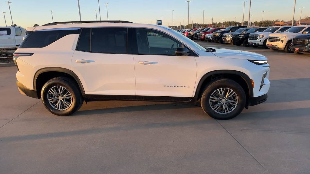 This 2024 Chevrolet Traverse LT 1LT in Summit White comes with the following features: 2.5L DOHC 8-Speed Automatic FWD Preferred Equipment Group 1LT, 3rd row seats: split-bench, 4-Way Manual Front Passenger Seat Adjuster, 4-Wheel Disc Brakes, 6 Speakers, 6-Speaker Audio System Feature, 8-Way Power Driver Seat Adjuster, ABS brakes, Air Conditioning, Alloy wheels, AM/FM radio: SiriusXM with 360L, Apple CarPlay/Android Auto, Auto High-beam Headlights, Automatic temperature control, Brake assist, Bumpers: body-color, Compass, Delay-off headlights, Driver 4-Way Power Lumbar Seat Adjuster, Driver door bin, Driver vanity mirror, Dual front impact airbags, Dual front side impact airbags, Electronic Stability Control, Emergency communication system, Exterior Parking Camera Rear, Four wheel independent suspension, Front anti-roll bar, Front Bucket Seats, Front Center Armrest, Front dual zone A/C, Front reading lights, Fully automatic headlights, Heated door mirrors, Heated front seats, Heated steering wheel, Illuminated entry, Low tire pressure warning, Navigation System, Occupant sensing airbag, Outside temperature display, Overhead airbag, Overhead console, Panic alarm, Passenger door bin, Passenger vanity mirror, Power door mirrors, Power driver seat, Power Liftgate, Power steering, Power windows, Premium Cloth Seat Trim, Radio data system, Radio: 17.7" Diagonal Display, Rear air conditioning, Rear anti-roll bar, Rear reading lights, Rear window defroster, Rear window wiper, Remote keyless entry, Security system, SiriusXM w/360L, Speed control, Speed-sensing steering, Spoiler, Steering wheel mounted audio controls, Tachometer, TBD Axle Ratio, Telescoping steering wheel, Tilt steering wheel, Traction control, Trip computer, Turn signal indicator mirrors, Variably intermittent wipers, Voltmeter, and Wheels: 18" Grazen Metallic Machined-Face Aluminum.
