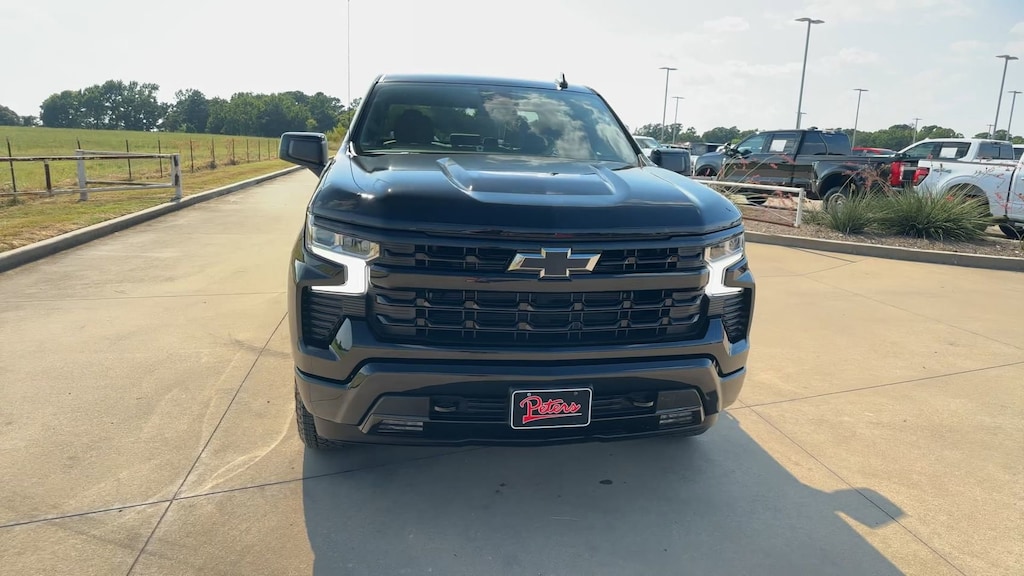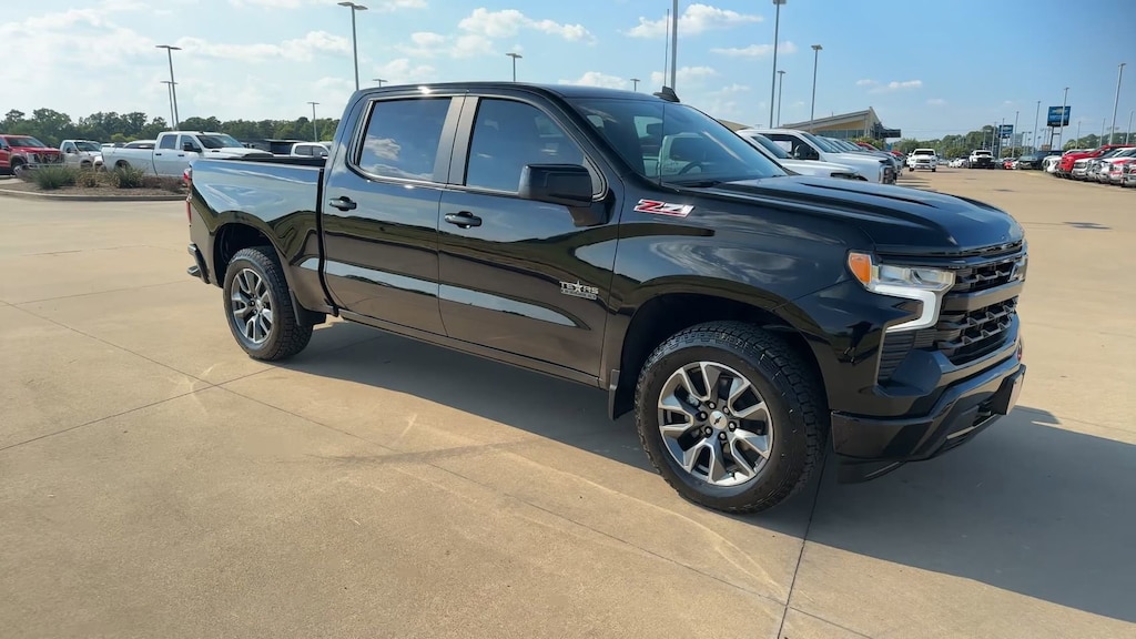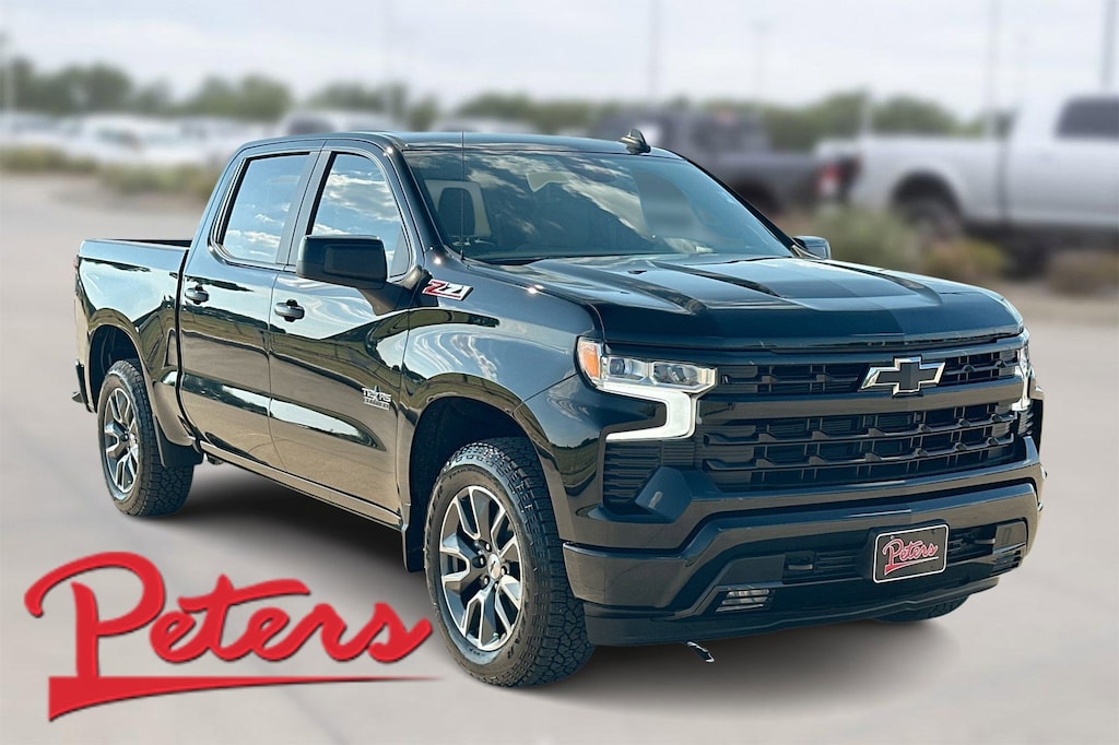 This 2025 Chevrolet Silverado 1500 RST in Black comes with the following features: EcoTec3 5.3L V8 8-Speed Automatic 4WD Convenience Package (10-Way Power Driver Seat w/Lumbar, 120-Volt Bed Mounted Power Outlet, 120-Volt Interior Power Outlet, Dual Rear USB Ports (Charge Only), Dual-Zone Automatic Climate Control, Electric Rear-Window Defogger, Heated Driver & Front Outboard Passenger Seats, Heated Steering Wheel, Keyless Open & Start, LED Cargo Area Lighting, Manual Tilt/Telescoping Steering Column, Remote Vehicle Starter System, Theft Deterrent System (Unauthorized Entry), and Wrapped Steering Wheel), Preferred Equipment Group 1SP (12.3" Multicolor Reconfigurable Digital Display, 6-Speaker Audio System, All-Star Edition, Auto-Locking Rear Differential, Bluetooth® For Phone, Color-Keyed Carpeting Floor Covering, Deep-Tinted Glass, Electronic Cruise Control, EZ Lift Power Lock & Release Tailgate, Front Frame-Mounted Black Recovery Hooks, Front LED Fog Lamps, Front Rubberized Vinyl Floor Mats, HD Rear Vision Camera, Heated Power-Adjustable Outside Mirrors, High Gloss Black Mirror Caps, Inside Rear-View Mirror w/Tilt, Integrated Trailer Brake Controller, OnStar Services Capable, Power Front Windows w/Driver Express Up/Down, Power Front Windows w/Passenger Express Down, Power Rear Windows w/Express Down, Rear 60/40 Folding Bench Seat (Folds Up), Rear Rubberized-Vinyl Floor Mats, SiriusXM w/360L Trial Subscription, Standard Tailgate, Steering Wheel Audio Controls, Teen Driver, Tire Pressure Monitoring System, and Wi-Fi Hot Spot Capable), Standard Suspension Package, Trailering Package (Hitch Guidance), Z71 Off-Road Package (Dual Exhaust w/Polished Outlets, Heavy-Duty Air Filter, and Hill Descent Control), 8-Speed Automatic, 4WD, Gideon/Very Dark Atmosphere Cloth, 170 Amp Alternator, 2 USB Data Ports, 220 Amp Alternator, 3.23 Rear Axle Ratio, 4-Wheel Disc Brakes, 40/20/40 Front Split-Bench Seat, 6 Speakers, ABS brakes, Air Conditioning, Alloy wheels, AM/FM radio: SiriusXM with 360L, Apple CarPlay/Android Auto, Auto High-beam Headlights, Automatic Emergency Braking, Automatic temperature control, Auxiliary External Transmission Oil Cooler, Brake assist, Bumpers: body-color, Cloth Seat Trim, Compass, Delay-off headlights, Driver door bin, Driver vanity mirror, Dual Exhaust w/Black Exhaust Tips, Dual front impact airbags, Dual front side impact airbags, Electronic Stability Control, Electronic Transmission Range Selector Shifter, Emergency communication system: OnStar, External Engine Oil Cooler, Floor Mounted Center Console, Following Distance Indicator, Forward Collision Alert, Front anti-roll bar, Front Bucket Seats, Front Center Armrest w/Storage, Front dual zone A/C, Front fog lights, Front License Plate Kit, Front Pedestrian Braking, Front reading lights, Front wheel independent suspension, Fully automatic headlights, Heated door mirrors, Heated front seats, Heated steering wheel, Illuminated entry, IntelliBeam Automatic High Beam On/Off, Lane Keep Assist w/Lane Departure Warning, Low tire pressure warning, Occupant sensing airbag, Outside temperature display, Overhead airbag, Overhead console, Panic alarm, Passenger door bin, Passenger vanity mirror, Power door mirrors, Power driver seat, Power steering, Power windows, Premium audio system: Chevrolet Infotainment 3 Premium, Radio data system, Radio: Chevrolet Infotainment 3 Premium System, Rear reading lights, Rear step bumper, Rear window defroster, Remote keyless entry, Security system, Single Outlet Exhaust, Speed control, Speed-sensing steering, Split folding rear seat, Steering wheel mounted audio controls, Tachometer, Telescoping steering wheel, Texas Edition Badging, Tilt steering wheel, Traction control, Trip computer, Variably intermittent wipers, Voltmeter, Wheels: 18" x 8.5" Bright Silver Painted Aluminum, Wheels: 20" x 9" Painted Aluminum, and Wireless Charging.