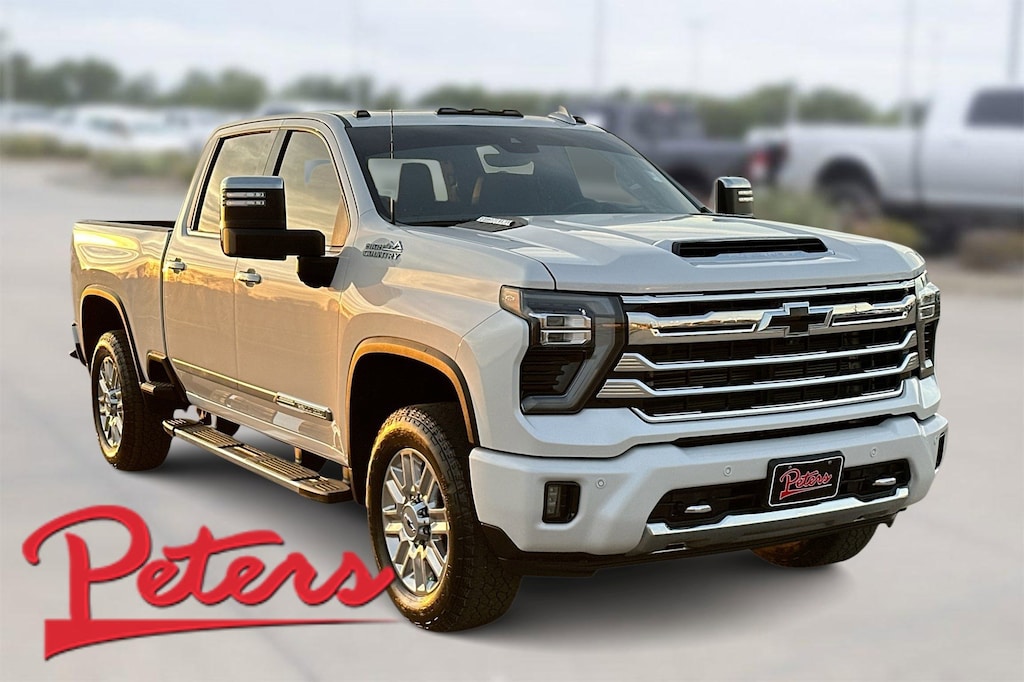 This 2025 Chevrolet Silverado 2500HD High Country in Iridescent Pearl Tricoat comes with the following features: Duramax 6.6L V8 Turbodiesel 10-Speed Automatic 4WD Gooseneck/5th Wheel Prep Package (Black Chevytec Spray-on Bedliner), High Country Premium Package (Power Sunroof), Preferred Equipment Group 3LZ (120-Volt Bed Mounted Power Outlet, 120-Volt Interior Power Outlet, 170 Amp Alternator, 6" Rectangular Chromed Tubular Assist Steps, Auto-Dimming Inside Rear-View Mirror, Bed View Camera with Two Trailer Camera Provisions, Bluetooth® For Phone, Chevrolet Connected Access Capable, Chrome Door Handles, Chrome Mirror Caps, Color-Keyed Carpeting Floor Covering, Compass, Deep-Tinted Glass, Durabed Pickup Bed, Electric Rear-Window Defogger, Front Bucket Seats, Front Carpeted Floor Mats, Front Chrome Recovery Hooks, Front LED Fog Lamps, Front Rain-Sensing Wipers, Heated 2nd Row Outboard Seats, Heated Steering Wheel, Hitch Guidance with Hitch View, in-Vehicle Trailering App System, Keyless Open and Start, LED Cargo Area Lighting, Manual Tilt and Telescoping Steering Column, OnStar Services Capable, Perforated Leather Seat Trim, Polished Exhaust Tip, Power Door Locks, Power Front Windows with Driver Express Up/Down, Power Front Windows with Passenger Express Up/Down, Power Rear Windows with Express Down, Power Sliding Rear Window with Defogger, Power Up/Down Tailgate Function with Power Lock and Release, Push Button Start, Rear Carpeted Floor Mats, Rear Cross Traffic Alert, Rear Wheelhouse Liners, Remote Vehicle Starter System, SiriusXM with 360L Trial Subscription, Standard Tailgate, Steering Wheel Audio Controls, Trailer Camera Provisions, Ultrasonic Front and Rear Park Assist, Unauthorized Entry Theft-Deterrent System, Universal Home Remote, Wheels: 20" 8-Spoke Polished, Wi-Fi Hotspot Capable, Wireless Charging, Wireless Phone Projection, and Wrapped Steering Wheel), Suspension Package, Technology Package (15" Diagonal Multicolor Head-Up Display and Rear Camera Mirror), Up-Level Rear Seat with Storage Package, 10-Way Power Driver Seat Adjuster with Lumbar, 10-Way Power Passenger Seat Adjuster with Lumbar, 220 Amp Alternator, 4-Wheel Disc Brakes, 7 Speakers, 720 Cold-Cranking Amps Heavy-Duty Battery, ABS brakes, Air Conditioning, All-Weather Floor Liners, Alloy wheels, AM/FM radio: SiriusXM with 360L, Apple CarPlay/Android Auto, Auto High-beam Headlights, Auto-dimming door mirrors, Auto-dimming Rear-View mirror, Automatic temperature control, Bodyside moldings, BOSE Premium 7-Speaker Sound System, Brake assist, Bumpers: body-color, Delay-off headlights, Driver door bin, Driver Memory, Driver vanity mirror, Dual front impact airbags, Dual front side impact airbags, Electronic Stability Control, Emergency communication system: OnStar, Engine Block Heater, Exhaust Brake, Floor-Mounted Center Console, Front anti-roll bar, Front Center Armrest, Front dual zone A/C, Front fog lights, Front License Plate Kit, Front reading lights, Front wheel independent suspension, Fully automatic headlights, Garage door transmitter, Genuine wood console insert, Genuine wood dashboard insert, Genuine wood door panel insert, Heated door mirrors, Heated Driver and Front Outboard Passenger Seating, Heated front seats, Heated rear seats, Heated steering wheel, Illuminated entry, LED Smoked Amber Roof Marker Lamps, Low tire pressure warning, Memory seat, Occupant sensing airbag, Outside temperature display, Overhead airbag, Overhead console, Panic alarm, Passenger door bin, Passenger vanity mirror, Power door mirrors, Power driver seat, Power passenger seat, Power steering, Power windows, Premium audio system: Chevrolet Infotainment 3 Premium, Radio: Chevrolet Infotainment 3 Premium System, Rain sensing wipers, Rear reading lights, Rear seat center armrest, Rear step bumper, Rear window defroster, Remote keyless entry, Security system, Speed control, Speed-sensing steering, Split folding rear seat, Steering wheel mounted audio contr