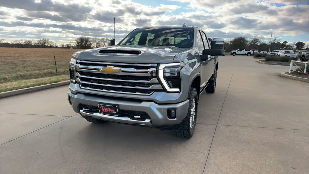 This 2025 Chevrolet Silverado 2500HD High Country in Sterling Gray Metallic comes with the following features: Duramax 6.6L V8 Turbodiesel 10-Speed Automatic 4WD Preferred Equipment Group 3LZ (120-Volt Bed Mounted Power Outlet, 120-Volt Interior Power Outlet, 170 Amp Alternator, 6" Rectangular Chromed Tubular Assist Steps, Auto-Dimming Inside Rear-View Mirror, Bed View Camera with Two Trailer Camera Provisions, Black Chevytec Spray-on Bedliner, Bluetooth® For Phone, Chevrolet Connected Access Capable, Chrome Door Handles, Chrome Mirror Caps, Color-Keyed Carpeting Floor Covering, Compass, Deep-Tinted Glass, Durabed Pickup Bed, Electric Rear-Window Defogger, Front Bucket Seats, Front Carpeted Floor Mats, Front Chrome Recovery Hooks, Front LED Fog Lamps, Front Rain-Sensing Wipers, Heated 2nd Row Outboard Seats, Heated Steering Wheel, Hitch Guidance with Hitch View, in-Vehicle Trailering App System, Keyless Open and Start, LED Cargo Area Lighting, Manual Tilt and Telescoping Steering Column, OnStar Services Capable, Perforated Leather Seat Trim, Polished Exhaust Tip, Power Door Locks, Power Front Windows with Driver Express Up/Down, Power Front Windows with Passenger Express Up/Down, Power Rear Windows with Express Down, Power Sliding Rear Window with Defogger, Power Up/Down Tailgate Function with Power Lock and Release, Push Button Start, Rear Carpeted Floor Mats, Rear Cross Traffic Alert, Rear Wheelhouse Liners, Remote Vehicle Starter System, SiriusXM with 360L Trial Subscription, Standard Tailgate, Steering Wheel Audio Controls, Trailer Camera Provisions, Ultrasonic Front and Rear Park Assist, Unauthorized Entry Theft-Deterrent System, Universal Home Remote, Wheels: 20" 8-Spoke Polished, Wi-Fi Hotspot Capable, Wireless Charging, Wireless Phone Projection, and Wrapped Steering Wheel), Suspension Package, Up-Level Rear Seat with Storage Package, Z71 Off-Road Package (Hill Descent Control and Off-Road Suspension), 10-Way Power Driver Seat Adjuster with Lumbar, 10-Way Power Passenger Seat Adjuster with Lumbar, 220 Amp Alternator, 4-Wheel Disc Brakes, 7 Speakers, 720 Cold-Cranking Amps Heavy-Duty Battery, ABS brakes, Air Conditioning, Alloy wheels, AM/FM radio: SiriusXM with 360L, Apple CarPlay/Android Auto, Auto High-beam Headlights, Auto-dimming door mirrors, Auto-dimming Rear-View mirror, Automatic temperature control, Bodyside moldings, BOSE Premium 7-Speaker Sound System, Brake assist, Bumpers: body-color, Delay-off headlights, Driver door bin, Driver Memory, Driver vanity mirror, Dual front impact airbags, Dual front side impact airbags, Electronic Stability Control, Emergency communication system: OnStar, Engine Block Heater, Exhaust Brake, Floor-Mounted Center Console, Front anti-roll bar, Front Center Armrest, Front dual zone A/C, Front fog lights, Front License Plate Kit, Front reading lights, Front wheel independent suspension, Fully automatic headlights, Garage door transmitter, Genuine wood console insert, Genuine wood dashboard insert, Genuine wood door panel insert, Heated door mirrors, Heated Driver and Front Outboard Passenger Seating, Heated front seats, Heated rear seats, Heated steering wheel, Illuminated entry, Low tire pressure warning, Memory seat, Occupant sensing airbag, Outside temperature display, Overhead airbag, Overhead console, Panic alarm, Passenger door bin, Passenger vanity mirror, Power door mirrors, Power driver seat, Power passenger seat, Power steering, Power windows, Power-Retractable Assist Steps, Premium audio system: Chevrolet Infotainment 3 Premium, Radio: Chevrolet Infotainment 3 Premium System, Rain sensing wipers, Rear reading lights, Rear seat center armrest, Rear step bumper, Rear window defroster, Remote keyless entry, Security system, Speed control, Speed-sensing steering, Split folding rear seat, Steering wheel mounted audio controls, Tachometer, Telescoping steering wheel, Tilt steering wheel, Traction control, Trip computer, Turn signal