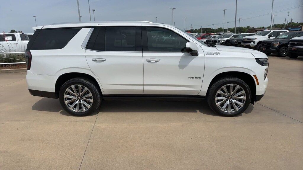 This 2025 Chevrolet Tahoe High Country in Iridescent Pearl Tricoat comes with the following features: EcoTec3 6.2L V8 10-Speed Automatic with Overdrive 4WD Advanced Trailering Package (Blind Zone Steering Assist with Trailering, Hitch View with Pan/Zoom Image Adjustment, and Smart Trailer Integration Indicator), High Country Deluxe (Air Ride Adaptive Suspension, Dual-Pane Power Panoramic Sunroof, and Power-Retractable Assist Steps), License Plate Front Mounting Package, Max Trailering Package (2-Speed Active Electronic AutoTrac Transfer Case, Hill Descent Control, and Integrated Trailer Brake Controller), Preferred Equipment Group 3LZ (15" Diagonal Multi-Color Head-Up Display, 1st and 2nd Row Color-Keyed Carpeted Floor Mats, 3-Spoke Wrapped Steering Wheel, 3rd Row 60/40 Power-Folding Split-Bench Seat, Bose 10-Speaker Centerpoint Surround Audio System Feature, Bright Front and Rear Door Sill Plates, Chrome Door Handles with Body-Color Strip, Color-Keyed Carpeting Floor Covering, Dual Exhaust System, Floor Console, Front Bucket Seats, Front LED Fog Lamps, Front Pedestrian and Bicyclist Braking, Frontal Driver and Outboard Passenger Airbags, Heated 2nd Row Outboard Seats, Heated Steering Wheel, Inside Rearview Auo-Dimming Rear Camera Mirror, LED Headlamps with LED Daytime Running Lamps, LED Tail Lamps, Magnetic Ride Control Suspension, Memory Settings, Outside Heated Power-Adjustable Mirrors, Power Release 2nd Row Bucket Seats, Power Tilt and Telescopic Steering Column, Rear Power Liftgate, Remote Start, Set of 4 Wheel Locks, SiriusXM with 360L Trial Subscription, Universal Home Remote, Wheels: 22" x 9" Bright Machined Aluminum, and Wireless Phone Charging), 10 Speakers, 1st and 2nd Rows All-Weather Floor Liners, 3.23 Rear Axle Ratio, 3rd row seats: split-bench, 4-Way Power Driver Lumbar Seat Adjuster, 4-Way Power Front Passenger Lumbar Seat Adjuster, 4-Wheel Disc Brakes, 8-Way Power Driver Seat Adjuster, 8-Way Power Front Passenger Seat Adjuster, ABS brakes, Adaptive suspension, Air Conditioning, Alloy wheels, AM/FM radio: SiriusXM with 360L, Apple CarPlay/Android Auto, Auto High-beam Headlights, Auto-dimming door mirrors, Auto-dimming Rear-View mirror, Auto-leveling suspension, Automatic temperature control, Brake assist, Bumpers: body-color, Compass, Delay-off headlights, Driver and Front Passenger Heated and Ventilated Seats, Driver door bin, Driver vanity mirror, Dual front impact airbags, Dual front side impact airbags, Electronic Stability Control, Emergency communication system: OnStar and Chevrolet connected services capable, Exterior Parking Camera Rear, Extra Capacity Cooling System, Four wheel independent suspension, Front and Rear Black Bowtie Emblems, Front anti-roll bar, Front Center Armrest, Front dual zone A/C, Front fog lights, Front reading lights, Fully automatic headlights, Garage door transmitter, Heads-Up Display, Heated door mirrors, Heated Driver and Front Passenger Seats, Heated front seats, Heated rear seats, Heated steering wheel, Illuminated entry, Low tire pressure warning, Memory seat, Navigation system: Google built-in compatibility (select service plan required, terms and limitations apply), Occupant sensing airbag, Outside temperature display, Overhead airbag, Overhead console, Panic alarm, Passenger door bin, Passenger vanity mirror, Perforated Leather Seat Trim, Power door mirrors, Power driver seat, Power Liftgate, Power passenger seat, Power steering, Power windows, Premium audio system: Chevrolet Infotainment 3 Premium, Radio data system, Radio: 17.7" Diagonal Advanced Color LCD Display, Rain sensing wipers, Rear air conditioning, Rear anti-roll bar, Rear reading lights, Rear window defroster, Rear window wiper, Remote keyless entry, Security system, Speed control, Speed-sensing steering, Split folding rear seat, Spoiler, Steering wheel memory, Steering wheel mounted audio controls, Tachometer, Telescoping steering wheel, Tilt steering wheel, Tracti