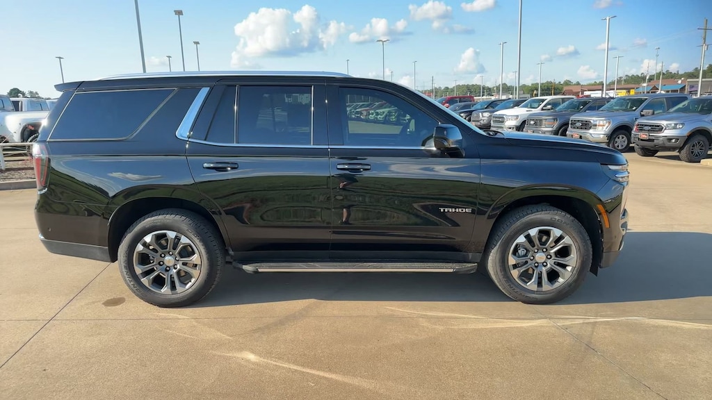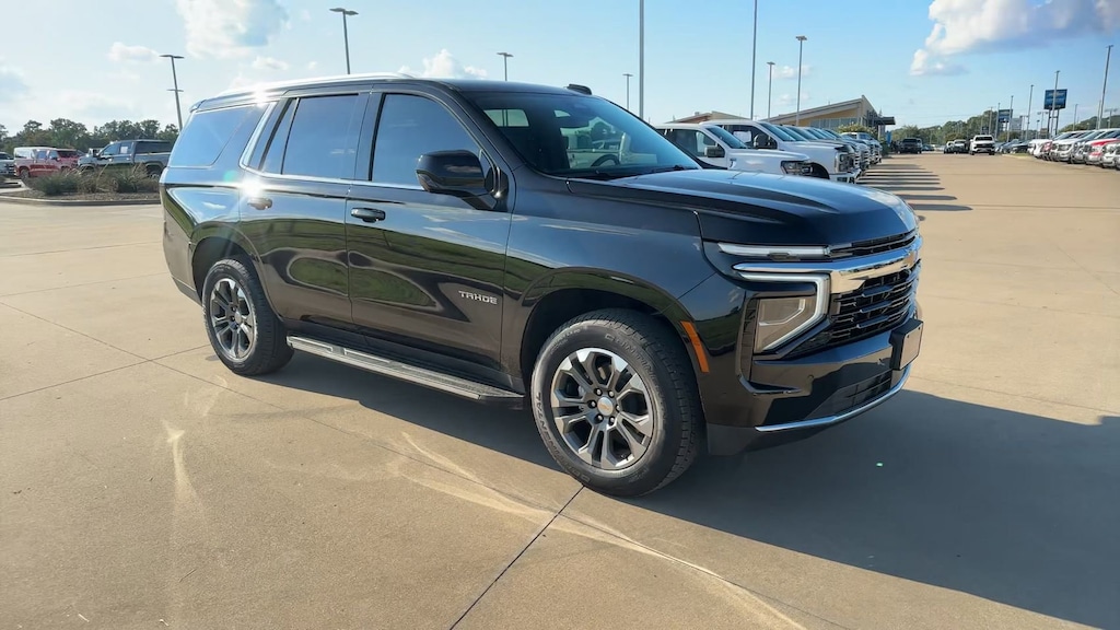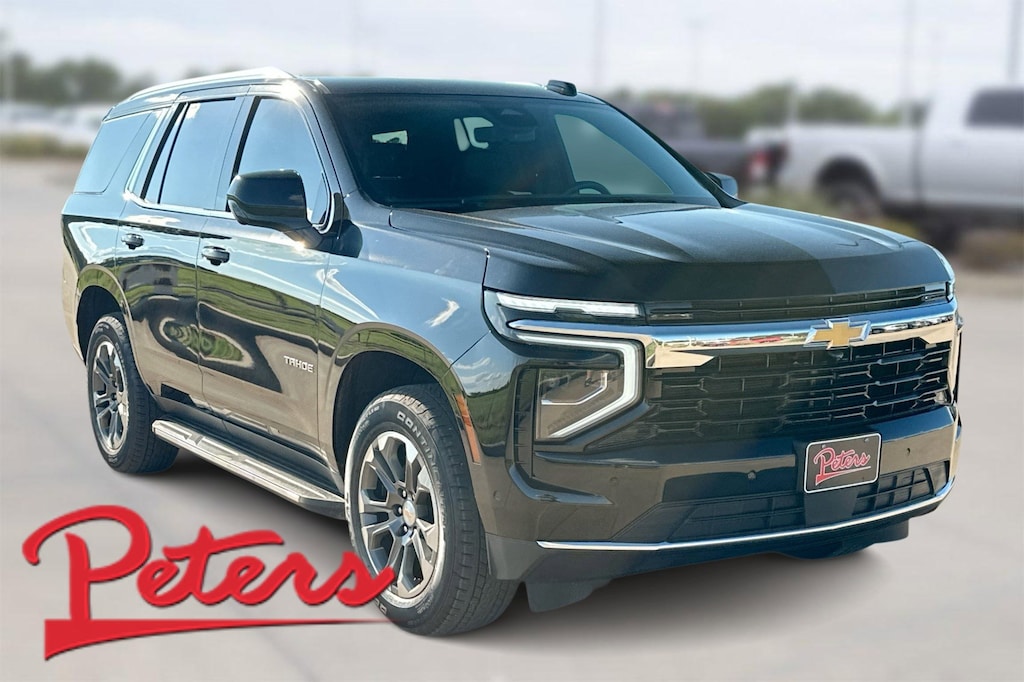 This 2025 Chevrolet Tahoe LS in Black comes with the following features: EcoTec3 5.3L V8 10-Speed Automatic with Overdrive RWD Preferred Equipment Group 1LS (1st & 2nd Row Color-Keyed Carpeted Floor Mats, 3-Spoke Wrapped Steering Wheel, 3rd Row Manual 60/40 Split-Folding Bench Seats, Color-Keyed Carpeting Floor Covering, Floor Console w/Storage Area, Front Pedestrian & Bicyclist Braking, Frontal Driver & Outboard Passenger Airbags, Remote Start, SiriusXM w/360L Trial Subscription, and USB Ports), Jet Black Leather, 2-Way Power Driver Lumbar Seat Adjuster, 2-Way Power Front Passenger Lumbar Seat Adjuster, 3.23 Rear Axle Ratio, 3rd row seats: split-bench, 4-Wheel Disc Brakes, 6 Speakers, 6-Speaker Audio System Feature, 6-Way Power Front Passenger Seat Adjuster, 8-Way Power Driver Seat Adjuster, ABS brakes, Air Conditioning, Alloy wheels, AM/FM radio: SiriusXM with 360L, Apple CarPlay/Android Auto, Auto High-beam Headlights, Automatic temperature control, Brake assist, Bumpers: body-color, Compass, Delay-off headlights, Driver door bin, Driver vanity mirror, Dual front impact airbags, Dual front side impact airbags, Electronic Stability Control, Emergency communication system: OnStar and Chevrolet connected services capable, Exterior Parking Camera Rear, Four wheel independent suspension, Front anti-roll bar, Front Bucket Seats, Front Center Armrest, Front dual zone A/C, Front reading lights, Fully automatic headlights, Heated door mirrors, Illuminated entry, Low tire pressure warning, Navigation system: Google built-in compatibility (select service plan required, terms and limitations apply), Occupant sensing airbag, Outside temperature display, Overhead airbag, Overhead console, Panic alarm, Passenger door bin, Passenger vanity mirror, Power door mirrors, Power driver seat, Power passenger seat, Power steering, Power windows, Premium audio system: Chevrolet Infotainment 3, Premium Cloth Seat Trim, Premium Smooth Ride Suspension, Radio data system, Radio: 17.7" Diagonal Advanced Color LCD Display, Rain sensing wipers, Rear air conditioning, Rear anti-roll bar, Rear reading lights, Rear seat center armrest, Rear window defroster, Rear window wiper, Remote keyless entry, Security system, Speed control, Speed-sensing steering, Split folding rear seat, Spoiler, Steering wheel mounted audio controls, Tachometer, Telescoping steering wheel, Tilt steering wheel, Traction control, Trip computer, Variably intermittent wipers, Voltmeter, Wheels: 18" x 8.5" Bright Silver Painted Aluminum, and Wheels: 20" x 9" Machined Aluminum.