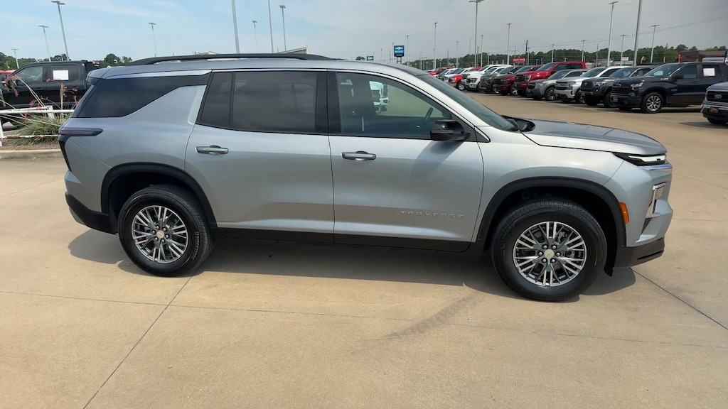 This 2025 Chevrolet Traverse LT 1LT in Sterling Gray Metallic comes with the following features: 2.5L DOHC 8-Speed Automatic FWD Preferred Equipment Group 1LT, 3rd row seats: split-bench, 4-Way Manual Front Passenger Seat Adjuster, 4-Wheel Disc Brakes, 6 Speakers, 6-Speaker Audio System Feature, 8-Way Power Driver Seat Adjuster, ABS brakes, Air Conditioning, Alloy wheels, AM/FM radio: SiriusXM with 360L, Apple CarPlay/Android Auto, Auto High-beam Headlights, Automatic temperature control, Brake assist, Bumpers: body-color, Child-Seat-Sensing Airbag, Compass, Delay-off headlights, Driver door bin, Driver vanity mirror, Dual front impact airbags, Dual front side impact airbags, Electronic Stability Control, Emergency communication system: OnStar, Four wheel independent suspension, Front anti-roll bar, Front Bucket Seats, Front Center Armrest, Front dual zone A/C, Front reading lights, Fully automatic headlights, Heated door mirrors, Heated front seats, Heated steering wheel, Illuminated entry, Low tire pressure warning, Navigation System, Occupant sensing airbag, Outside temperature display, Overhead airbag, Overhead console, Panic alarm, Passenger door bin, Passenger vanity mirror, Power door mirrors, Power driver seat, Power Liftgate, Power steering, Power windows, Premium Cloth Seat Trim, Radio data system, Radio: Audio System w/17.7" Diagonal Display, Rear air conditioning, Rear anti-roll bar, Rear reading lights, Rear window defroster, Rear window wiper, Remote keyless entry, Security system, SiriusXM w/360L Trial Subscription, Speed control, Speed-sensing steering, Spoiler, Steering wheel mounted audio controls, Tachometer, Telescoping steering wheel, Tilt steering wheel, Traction control, Trip computer, Turn signal indicator mirrors, Variably intermittent wipers, Voltmeter, and Wheels: 18" Grazen Metallic Machined-Face Aluminum.