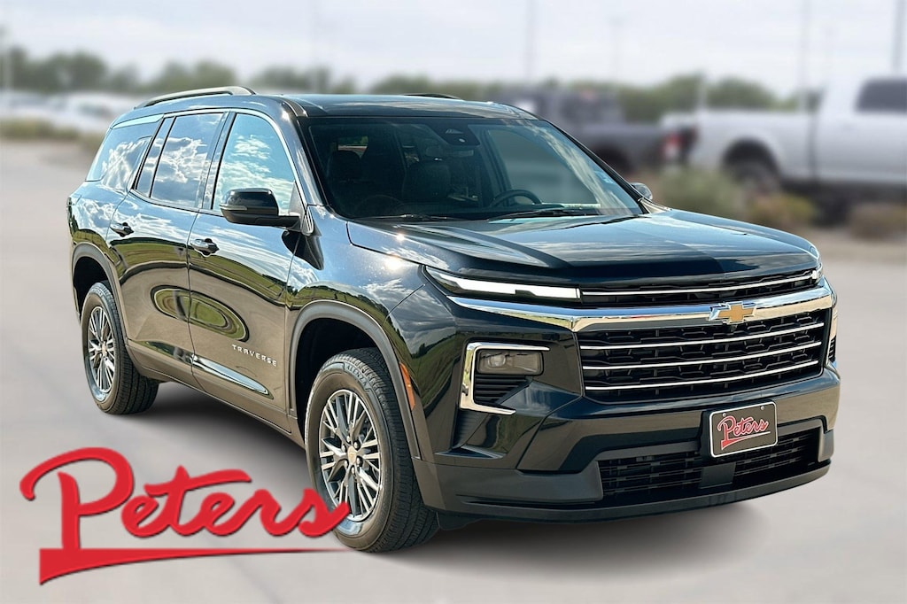 This 2025 Chevrolet Traverse LT 1LT in Mosaic Black Metallic comes with the following features: 2.5L DOHC 8-Speed Automatic FWD Preferred Equipment Group 1LT, 3rd row seats: split-bench, 4-Way Manual Front Passenger Seat Adjuster, 4-Wheel Disc Brakes, 6 Speakers, 6-Speaker Audio System Feature, 8-Way Power Driver Seat Adjuster, ABS brakes, Air Conditioning, Alloy wheels, AM/FM radio: SiriusXM with 360L, Apple CarPlay/Android Auto, Auto High-beam Headlights, Automatic temperature control, Brake assist, Bumpers: body-color, Child-Seat-Sensing Airbag, Compass, Delay-off headlights, Driver door bin, Driver vanity mirror, Dual front impact airbags, Dual front side impact airbags, Electronic Stability Control, Emergency communication system: OnStar, Four wheel independent suspension, Front anti-roll bar, Front Bucket Seats, Front Center Armrest, Front dual zone A/C, Front reading lights, Fully automatic headlights, Heated door mirrors, Heated front seats, Heated steering wheel, Illuminated entry, Low tire pressure warning, Navigation System, Occupant sensing airbag, Outside temperature display, Overhead airbag, Overhead console, Panic alarm, Passenger door bin, Passenger vanity mirror, Power door mirrors, Power driver seat, Power Liftgate, Power steering, Power windows, Premium Cloth Seat Trim, Radio data system, Radio: Audio System w/17.7" Diagonal Display, Rear air conditioning, Rear anti-roll bar, Rear reading lights, Rear window defroster, Rear window wiper, Remote keyless entry, Security system, SiriusXM w/360L Trial Subscription, Speed control, Speed-sensing steering, Spoiler, Steering wheel mounted audio controls, Tachometer, Telescoping steering wheel, Tilt steering wheel, Traction control, Trip computer, Turn signal indicator mirrors, Variably intermittent wipers, Voltmeter, and Wheels: 18" Grazen Metallic Machined-Face Aluminum.