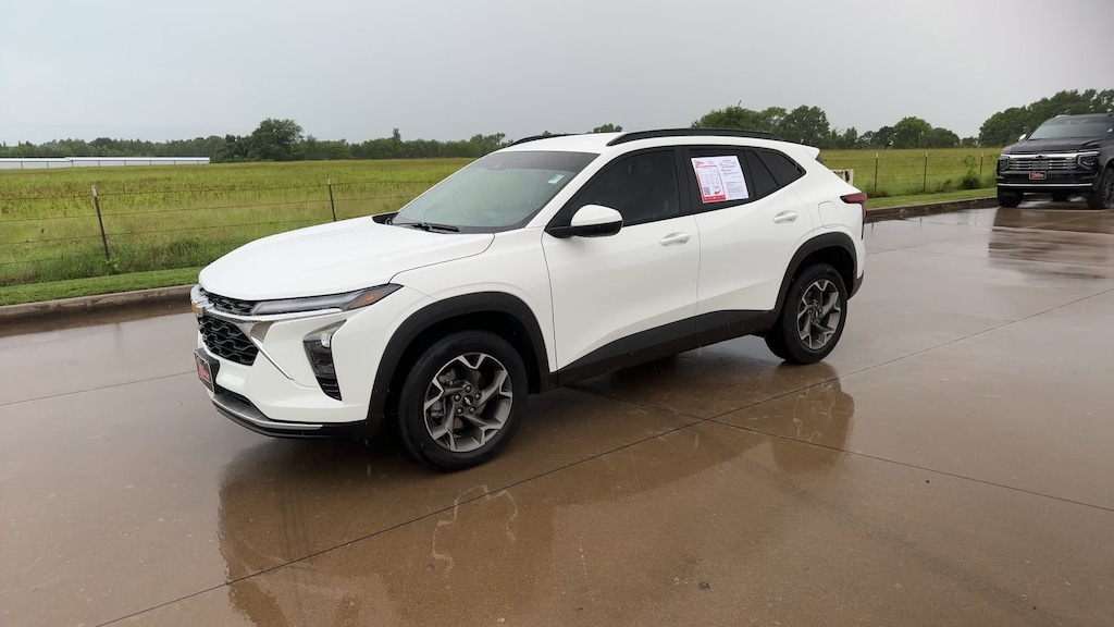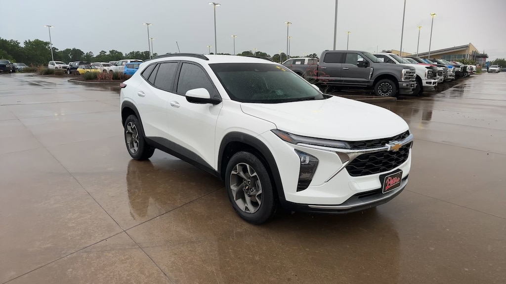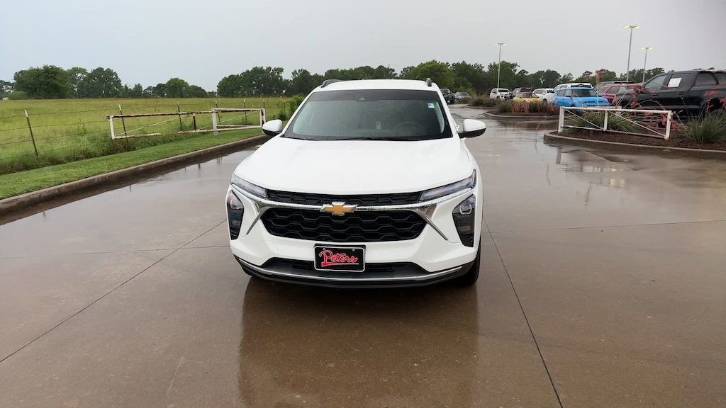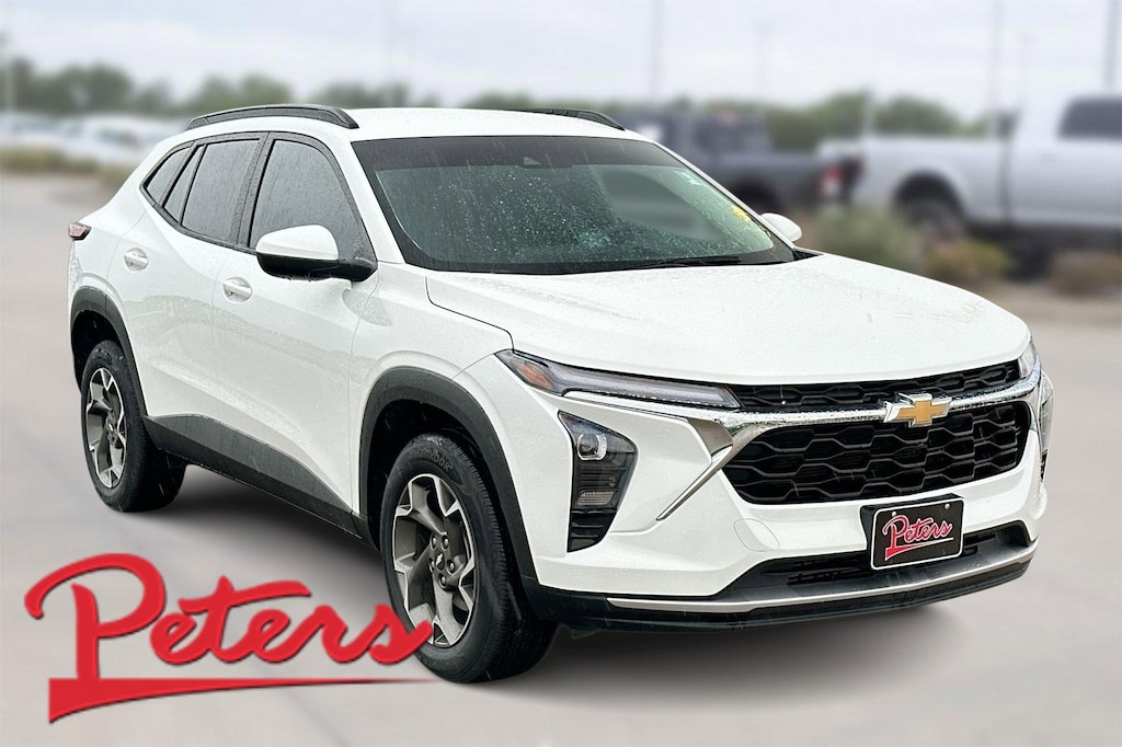 This 2025 Chevrolet Trax LT in Summit White comes with the following features: 1.2L Ecotec Turbo DOHC DI w/VVT 6-Speed Automatic FWD 2-Way Adjustable Front Head Restraints, 3.50 Final Drive Axle Ratio, 4-Way Manual Front Passenger Seat Adjuster, 4-Wheel Disc Brakes, 6 Speakers, 6-Speaker Audio System Feature, 6-Way Manual Driver Seat Adjuster, ABS brakes, Air Conditioning, Alloy wheels, AM/FM radio: SiriusXM, Auto High-beam Headlights, Automatic temperature control, Brake assist, Bumpers: body-color, Cloth/Evotex Seat Trim, Compass, Delay-off headlights, Driver door bin, Driver vanity mirror, Dual front impact airbags, Dual front side impact airbags, Electronic Stability Control, Emergency communication system: OnStar One Essentials, Exterior Parking Camera Rear, Front anti-roll bar, Front Bucket Seats, Front Center Armrest, Front reading lights, Front wheel independent suspension, Fully automatic headlights, Illuminated entry, Low tire pressure warning, Occupant sensing airbag, Outside temperature display, Overhead airbag, Panic alarm, Passenger door bin, Passenger vanity mirror, Power door mirrors, Power steering, Power windows, Premium audio system: Chevrolet Infotainment 3, Radio data system, Radio: AM/FM Stereo Audio System, Rear window defroster, Rear window wiper, Remote keyless entry, Roof rack: rails only, Security system, SiriusXM Trial Subscription, Speed control, Split folding rear seat, Spoiler, Steering wheel mounted audio controls, Tachometer, Telescoping steering wheel, Tilt steering wheel, Traction control, Trip computer, Variably intermittent wipers, and Wheels: 17" Gray-Painted Machined Aluminum.
