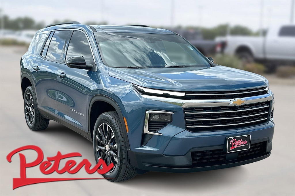 This 2026 Chevrolet Traverse LT 2LT in Lakeshore Blue Metallic comes with the following features: 2.5L DOHC 8-Speed Automatic AWD Floor Liner Package (1st and 2nd Row All-Weather Floor Liners, 3rd Row All-Weather Floor Liner, and Integrated Cargo Liner), Preferred Equipment Group 2LT, Sun and Wheel Package (Power Dual Glass Panoramic Sliding Sunroof and Wheels: 20" Carbon Flash Metallic Aluminum), 3rd row seats: split-bench, 4-Way Manual Front Passenger Seat Adjuster, 4-Wheel Disc Brakes, 6 Speakers, 6-Speaker Audio System Feature, 8-Way Power Driver Seat Adjuster, ABS brakes, Air Conditioning, Alloy wheels, AM/FM radio: SiriusXM with 360L, Apple CarPlay/Android Auto, Auto High-beam Headlights, Automatic temperature control, Brake assist, Bumpers: body-color, Child-Seat-Sensing Airbag, Compass, Delay-off headlights, Driver door bin, Driver vanity mirror, Dual front impact airbags, Dual front side impact airbags, Electronic Stability Control, Emergency communication system: OnStar, Four wheel independent suspension, Front anti-roll bar, Front Bucket Seats, Front Center Armrest, Front dual zone A/C, Front reading lights, Fully automatic headlights, Heated door mirrors, Heated Driver and Front Passenger Seats, Heated front seats, Heated steering wheel, Illuminated entry, Low tire pressure warning, Navigation System, Occupant sensing airbag, Outside temperature display, Overhead airbag, Overhead console, Panic alarm, Passenger door bin, Passenger vanity mirror, Power door mirrors, Power driver seat, Power Liftgate, Power steering, Power windows, Premium Cloth Seat Trim, Radio data system, Radio: : Audio System w/17.7" Diagonal Display, Rear air conditioning, Rear anti-roll bar, Rear reading lights, Rear window defroster, Rear window wiper, Remote keyless entry, Security system, SiriusXM with 360L Trial Subscription, Speed control, Speed-sensing steering, Spoiler, Steering wheel mounted audio controls, Tachometer, Telescoping steering wheel, Tilt steering wheel, Traction control, Trip computer, Turn signal indicator mirrors, Variably intermittent wipers, Vertical Cargo Net, Voltmeter, and Wheels: 18" Grazen Metallic Machined-Face Aluminum.