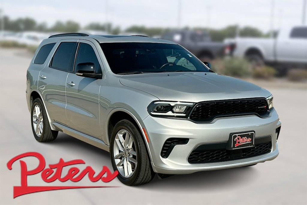 This 2024 Dodge Durango GT Plus in Triple Nickel comes with the following features: 3.6L V6 24V VVT 8-Speed Automatic AWD Quick Order Package 2BG GT Plus (1-Year Trial (Registration Required), 10.1" Touchscreen Display, 115V Auxiliary Power Outlet, 180 Amp Alternator, 4G LTE Wi-Fi Hot Spot, 7 & 4 Pin Wiring Harness, Adaptive Cruise Control w/Stop, Apple CarPlay, Auto-Dimming Exterior Driver Mirror, Black Roof Rails, Blind Spot w/Trailer Detection, Class IV Receiver Hitch, Connected Travel & Traffic Services, Disassociated Touchscreen Display, Dual Remote USB Port - Charge Only, Exterior Mirrors w/Heating Element, Exterior Mirrors w/Memory, Exterior Mirrors w/Supplemental Signals, Floor Console w/Leather Armrest, For Details Visit DriveUconnect.com, Full Speed Forward Collision Warning Plus, Global Telematics Box Module (TBM), Gloss Black Exterior Mirrors, Google Android Auto, GPS Antenna Input, GPS Navigation, HD Radio, Heated Second Row Seats, Heavy-Duty Engine Cooling, Integrated Center Stack Radio, Integrated Roof Rail Crossbars, Integrated Voice Command w/Bluetooth, Leather Trimmed Bucket Seats, Leather Wrapped Door Panels, LED Auxiliary Low Beam & Turn Signal, Power 6x9 Multi-Function Foldaway Mirrors, Power 8-Way Driver Memory 8-Way Passenger Seats, Power Driver/Passenger 4-Way Lumbar Adjust, Power Sunroof, Power Tilt & Telescopic Steering Column, Radio: Uconnect 5 Nav w/10.1" Display, Radio/Driver Seat/Mirrors Memory, Rear Load Leveling Suspension, Red Accent Stitching, SiriusXM Guardian - Included Trial (B), SiriusXM w/360L, Trailer Brake Control, USB Host Flip, and Ventilated Front Seats), AWD, 3.45 Rear Axle Ratio, 3rd row seats: split-bench, 4-Wheel Disc Brakes, 6 Speakers, ABS brakes, Air Conditioning, Alloy wheels, AM/FM radio: SiriusXM, Apple CarPlay/Android Auto, Auto-dimming Rear-View mirror, Automatic temperature control, Brake assist, Bumpers: body-color, Cloth Bucket Seats w/Shift Insert, Compass, Delay-off headlights, Driver door bin, Driver vanity mirror, Dual front impact airbags, Dual front side impact airbags, Electronic Stability Control, Four wheel independent suspension, Front anti-roll bar, Front Bucket Seats, Front Center Armrest w/Storage, Front dual zone A/C, Front License Plate Bracket, Front reading lights, Fully automatic headlights, Garage door transmitter, Heated door mirrors, Heated front seats, Heated steering wheel, Illuminated entry, Knee airbag, Leather steering wheel, Low tire pressure warning, Occupant sensing airbag, Outside temperature display, Overhead airbag, Overhead console, Panic alarm, ParkView Rear Back-Up Camera, Passenger door bin, Passenger vanity mirror, Power door mirrors, Power driver seat, Power Liftgate, Power steering, Power windows, Radio data system, Radio: Uconnect 4 w/8.4" Display, Rear air conditioning, Rear anti-roll bar, Rear reading lights, Rear seat center armrest, Rear window defroster, Rear window wiper, Remote keyless entry, Speed control, Speed-sensing steering, Speed-Sensitive Wipers, Split folding rear seat, Spoiler, Sport steering wheel, Steering wheel mounted audio controls, Tachometer, Telescoping steering wheel, Tilt steering wheel, Traction control, Trip computer, Variably intermittent wipers, Voltmeter, and Wheels: 20" x 8.0" Fine SilveR.
