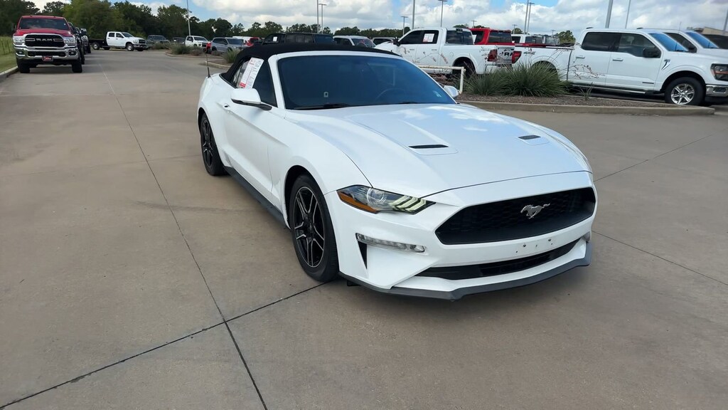 This 2020 Ford Mustang EcoBoost Premium in Oxford White comes with the following features: 2.3L I4 Turbocharged EcoBoost 10-Speed Automatic RWD 4-Wheel Disc Brakes, ABS brakes, Air Conditioning, Alloy wheels, AM/FM Stereo, Auto-dimming Rear-View mirror, Brake assist, Bumpers: body-color, Compass, Convertible roof lining, Delay-off headlights, Driver door bin, Driver vanity mirror, Dual front impact airbags, Dual front side impact airbags, Electronic Stability Control, Emergency communication system: 911 Assist, Exterior Parking Camera Rear, Four wheel independent suspension, Front anti-roll bar, Front Bucket Seats, Front Center Armrest, Front reading lights, Fully automatic headlights, Glass rear window, Illuminated entry, Knee airbag, Leather Shift Knob, Low tire pressure warning, Occupant sensing airbag, Outside temperature display, Overhead console, Panic alarm, Passenger door bin, Passenger vanity mirror, Power convertible roof, Power door mirrors, Power steering, Power windows, Radio data system, Rear anti-roll bar, Rear window defroster, Remote keyless entry, Security system, SiriusXM Radio, Speed control, Speed-sensing steering, Speed-Sensitive Wipers, Steering wheel mounted audio controls, SYNC 3 Communications & Entertainment System, Tachometer, Telescoping steering wheel, Tilt steering wheel, Traction control, Trip computer, Variably intermittent wipers, Voltmeter, and Wheels: 18" x 8" Machined-Face Aluminum.