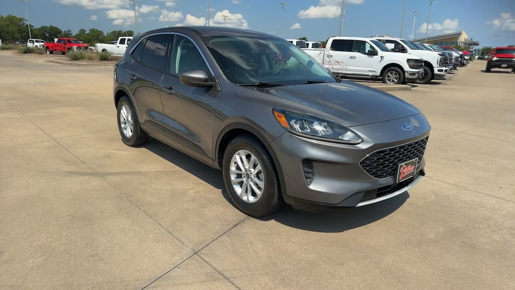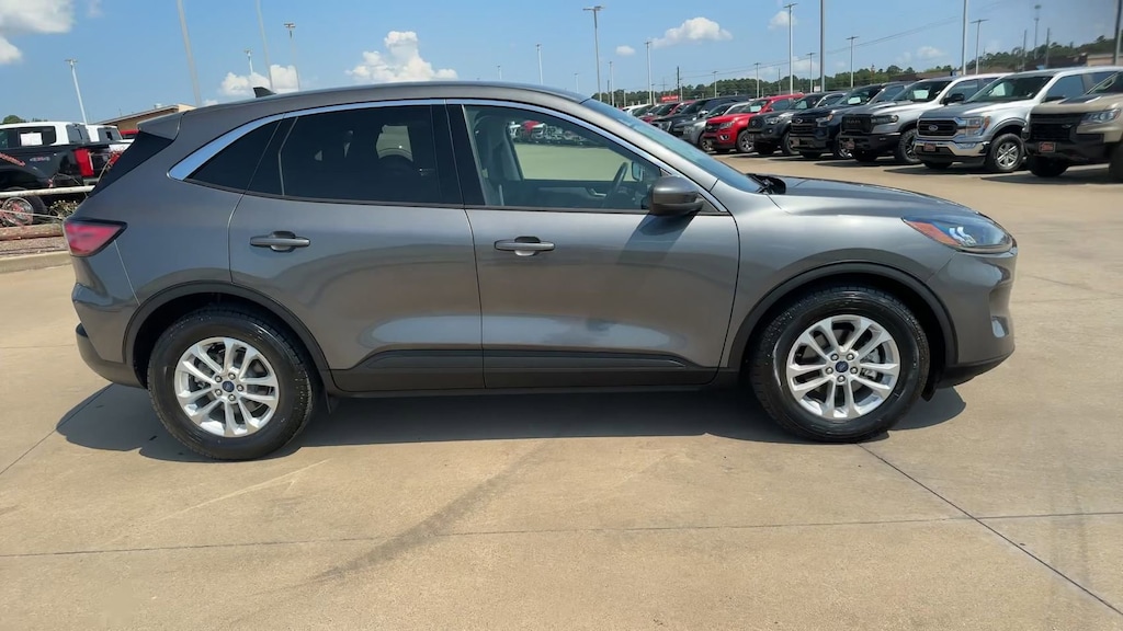 This 2021 Ford Escape SE in Gray comes with the following features: 1.5L EcoBoost 8-Speed Automatic FWD Convenience Package (10-Way Power Driver's Seat, Dual-Zone Electronic Automatic Temperature Control, Fold-Down Rear Center Armrest w/2 Cupholders, Halogen Projector Headlamps w/LED Signature, Power Liftgate, and SecuriCode Keyless-Entry Keypad), Equipment Group 200A, 3.52 Axle Ratio, 4-Wheel Disc Brakes, 6 Speakers, ABS brakes, Air Conditioning, Alloy wheels, AM/FM radio: SiriusXM, AM/FM Stereo, Auto High-beam Headlights, Brake assist, Bumpers: body-color, Compass, Delay-off headlights, Driver door bin, Driver vanity mirror, Dual front impact airbags, Dual front side impact airbags, Electronic Stability Control, Emergency communication system: SYNC 3 911 Assist, Exterior Parking Camera Rear, FordPass Connect, Four wheel independent suspension, Front anti-roll bar, Front Bucket Seats, Front Center Armrest, Front reading lights, Fully automatic headlights, Illuminated entry, Knee airbag, Low tire pressure warning, Occupant sensing airbag, Outside temperature display, Overhead airbag, Overhead console, Panic alarm, Passenger door bin, Passenger vanity mirror, Power door mirrors, Power steering, Power windows, Radio data system, Rear anti-roll bar, Rear reading lights, Rear window defroster, Rear window wiper, Remote keyless entry, Speed control, Speed-sensing steering, Speed-Sensitive Wipers, Split folding rear seat, Spoiler, Steering wheel mounted audio controls, SYNC 3 Communications & Entertainment System, Tachometer, Telescoping steering wheel, Tilt steering wheel, Traction control, Trip computer, Unique Cloth Front Bucket Seats, Variably intermittent wipers, and Wheels: 17" Shadow Silver-Painted Aluminum.