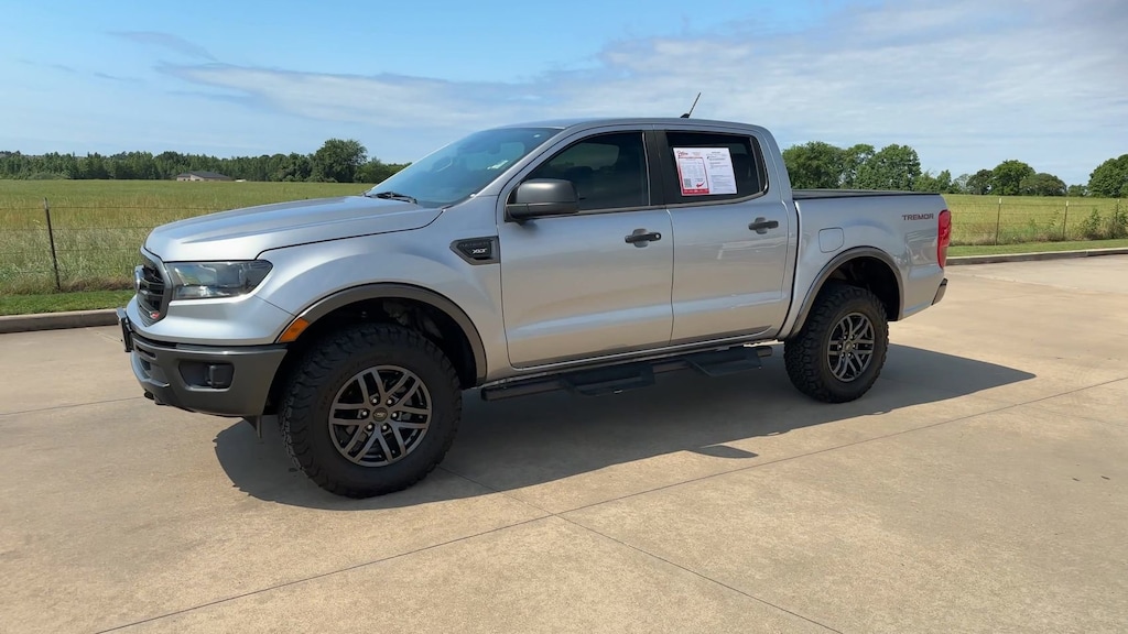 This 2021 Ford Ranger XLT TREMOR in Silver comes with the following features: EcoBoost 2.3L I4 GTDi DOHC Turbocharged VCT 10-Speed Automatic 4WD Equipment Group 301A Mid (110V AC Power Outlet, Auto-Dimming Rear-View Mirror, Leather-Wrapped Shifter, Leather-Wrapped Steering Wheel, and Reverse Sensing System), Sport Appearance Package (Black Grille w/Magnetic Surround, Black Wheel-Lip Molding, Magnetic Front & Rear Bumper, Sport Box Decal, and Wheels: 17" Magnetic Painted Aluminum Sport), Tremor Off-Road Package (Black Interior Accents, Black Off-Road Hoop Steps, Black Two Bar Style Grille, Electronic-Locking Rear Differential, Front Vinyl Bucket Seats w/Miko Suede Inserts, Magnetic Wheel Arch Flare, Off-Road Screen in Cluster, Off-Road Tuned Suspension w/FOX Dampers, Rear Tow Hooks, Terrain Management System, Trail Control, Tray Style Floor Liner w/Carpet Floor Mats, Tremor Box Decal, Upfitter Switches (6), and Wheels: 17" Magnetic Painted Aluminum), Trailer Tow Package (Class IV Trailer Hitch Receiver), Ranger XLT TREMOR, 4D Crew Cab, EcoBoost 2.3L I4 GTDi DOHC Turbocharged VCT, 10-Speed Automatic, 4WD, Silver, Ebony Cloth, 4-Wheel Disc Brakes, ABS brakes, Air Conditioning, AM/FM Stereo, Brake assist, Compass, Delay-off headlights, Driver door bin, Dual front impact airbags, Dual front side impact airbags, Electronic Stability Control, Exterior Parking Camera Rear, Front anti-roll bar, Front Bucket Seats, Front Center Armrest, Front wheel independent suspension, Fully automatic headlights, Illuminated entry, Low tire pressure warning, Occupant sensing airbag, Overhead airbag, Passenger door bin, Power steering, Power windows, Rear seat center armrest, Rear step bumper, Speed-sensing steering, Steering wheel mounted audio controls, SYNC 3, Telescoping steering wheel, Tilt steering wheel, Tough Bed Spray-In Bedliner, Traction control, Tremor Body-Side & Hood Graphic, Trip computer, Variably intermittent wipers, and Voltmeter.