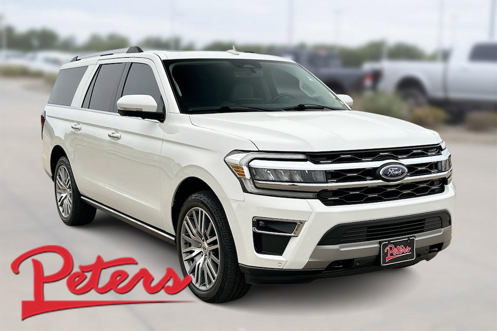 This 2022 Ford Expedition Max Limited in Star White Metallic Tri-Coat comes with the following features: EcoBoost 3.5L V6 GTDi DOHC 24V Twin Turbocharged 10-Speed Automatic 4WD 12 Speakers, 3.31 Axle Ratio, 3rd row seats: split-bench, 4-Wheel Disc Brakes, ABS brakes, Active Park Assist 2.0, Adjustable pedals, Air Conditioning, Alloy wheels, AM/FM radio: SiriusXM with 360L, Auto High-beam Headlights, Auto-dimming door mirrors, Auto-dimming Rear-View mirror, Automatic temperature control, Brake assist, Bumpers: body-color, Compass, Delay-off headlights, Driver door bin, Driver vanity mirror, Dual front impact airbags, Dual front side impact airbags, Electronic Stability Control, Emergency communication system: SYNC 4 911 Assist, Exterior Parking Camera Rear, Four wheel independent suspension, Front anti-roll bar, Front Bucket Seats, Front Center Armrest, Front dual zone A/C, Front fog lights, Front reading lights, Fully automatic headlights, Garage door transmitter, Heated & Ventilated Leather Front Captain's Chairs, Heated door mirrors, Heated front seats, Heated rear seats, Heated steering wheel, Illuminated entry, Leather steering wheel, Low tire pressure warning, Memory seat, Navigation system: Connected Navigation, Occupant sensing airbag, Outside temperature display, Overhead airbag, Overhead console, Panic alarm, Passenger door bin, Passenger vanity mirror, Pedal memory, Power door mirrors, Power driver seat, Power Liftgate, Power moonroof, Power passenger seat, Power steering, Power windows, Radio data system, Radio: B&O Sound System by Bang & Olufsen, Rain sensing wipers, Rear air conditioning, Rear anti-roll bar, Rear reading lights, Rear window defroster, Rear window wiper, Reclining 3rd row seat, Remote keyless entry, Security system, SiriusXM w/360L, Speed control, Speed-sensing steering, Speed-Sensitive Wipers, Split folding rear seat, Spoiler, Steering wheel memory, Steering wheel mounted audio controls, SYNC 4 w/Enhanced Voice Recognition, Tachometer, Telescoping steering wheel, Tilt steering wheel, Traction control, Trip computer, Turn signal indicator mirrors, Variably intermittent wipers, Ventilated front seats, Voltmeter, and Wheels: 20" Bright Machined Aluminum.