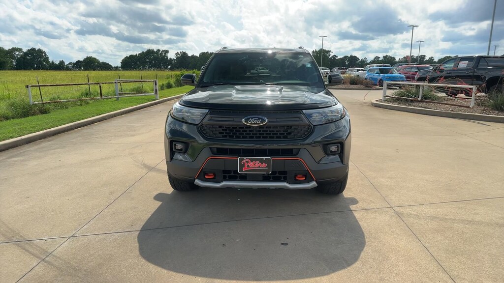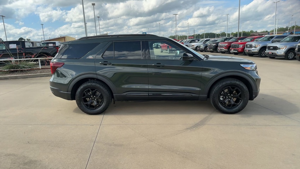 This 2023 Ford Explorer Timberline in Forged Green Metallic comes with the following features: 2.3L EcoBoost I-4 10-Speed Automatic 4WD Equipment Group 800A, Timberline Technology Package (110V/150W AC Power Outlet, 3rd Row PowerFold Seat, Auto-Dimming Interior Rear-View Mirror, Radio: B&O Sound System by Bang & Olufsen, Sideview Mirrors w/Gloss Black Caps, Universal Garage Door Opener (UGDO), and Wireless Charging Pad), 4WD, 3.58 Torsen Limited Slip Rear Axle, 360-Degree Camera Credit, 3rd row seats: bench, 4-Wheel Disc Brakes, 4G LTE Wi-Fi Hotspot Credit, 6 Speakers, ABS brakes, Air Conditioning, Alloy wheels, AM/FM radio: SiriusXM, AM/FM Stereo, Auto High-beam Headlights, Automatic temperature control, Brake assist, Bumpers: body-color, Compass, Delay-off headlights, Driver door bin, Driver vanity mirror, Dual front impact airbags, Dual front side impact airbags, Electronic Stability Control, Emergency communication system: SYNC 3 911 Assist, Exterior Parking Camera Rear, FordPass Connect, Four wheel independent suspension, Front anti-roll bar, Front Bucket Seats, Front Center Armrest, Front dual zone A/C, Front fog lights, Front reading lights, Fully automatic headlights, Heated ActiveX Trimmed Captain's Chairs, Heated door mirrors, Heated front seats, Heated rear seats, Heated steering wheel, Illuminated entry, Knee airbag, Leather steering wheel, Low tire pressure warning, Navigation System, Occupant sensing airbag, Outside temperature display, Overhead airbag, Overhead console, Panic alarm, Passenger door bin, Passenger vanity mirror, Power door mirrors, Power driver seat, Power Liftgate, Power passenger seat, Power steering, Power windows, Rear air conditioning, Rear anti-roll bar, Rear reading lights, Rear window defroster, Rear window wiper, Remote keyless entry, Roof rack: rails only, Security system, SelectShift Capability w/Paddle Shifters, Speed control, Speed-sensing steering, Speed-Sensitive Wipers, Split folding rear seat, Spoiler, Sport steering wheel, Steering wheel mounted audio controls, SYNC 3 Communications & Entertainment System, SYNC 3/Apple CarPlay/Android Auto, Tachometer, Telescoping steering wheel, Tilt steering wheel, Traction control, Trip computer, Twin Panel Moonroof, Variably intermittent wipers, Voice-Activated Touchscreen Navigation System, and Wheels: 18" High Gloss Black-Painted Aluminum.