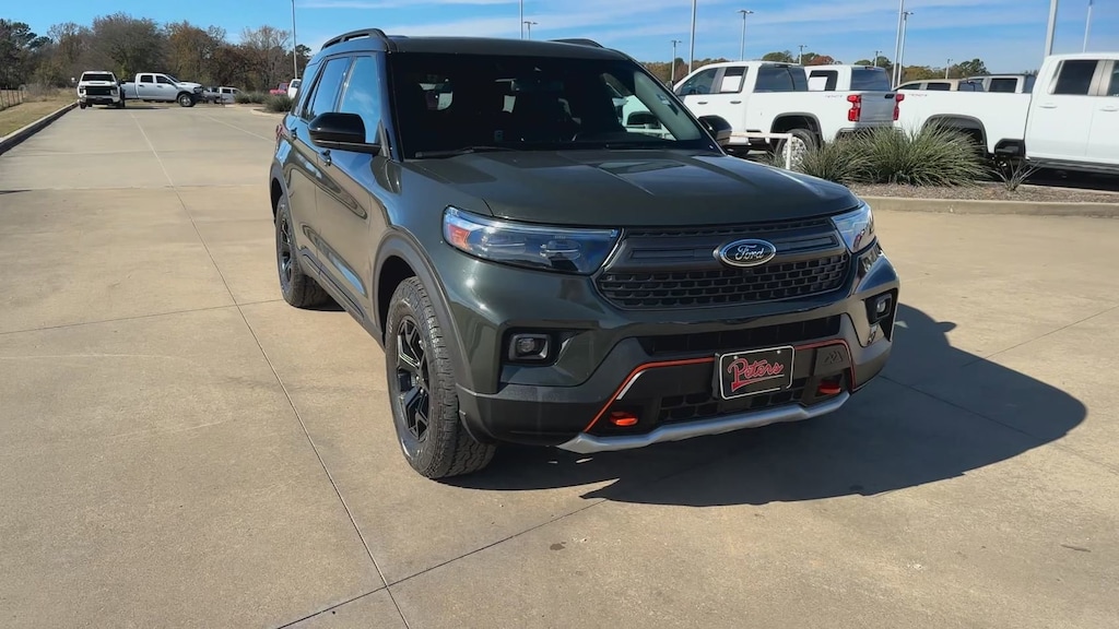 This 2023 Ford Explorer Timberline in Forged Green Metallic comes with the following features: 2.3L EcoBoost I-4 10-Speed Automatic 4WD Equipment Group 800A, Timberline Technology Package (110V/150W AC Power Outlet, 3rd Row PowerFold Seat, Auto-Dimming Interior Rear-View Mirror, Radio: B&O Sound System by Bang & Olufsen, Sideview Mirrors w/Gloss Black Caps, Universal Garage Door Opener (UGDO), and Wireless Charging Pad), 3.58 Torsen Limited Slip Rear Axle, 360-Degree Camera Credit, 3rd row seats: bench, 4-Wheel Disc Brakes, 4G LTE Wi-Fi Hotspot Credit, 6 Speakers, ABS brakes, Air Conditioning, Alloy wheels, AM/FM radio: SiriusXM, AM/FM Stereo, Auto High-beam Headlights, Automatic temperature control, Brake assist, Bumpers: body-color, Compass, Delay-off headlights, Driver door bin, Driver vanity mirror, Dual front impact airbags, Dual front side impact airbags, Electronic Stability Control, Emergency communication system: SYNC 3 911 Assist, Exterior Parking Camera Rear, FordPass Connect, Four wheel independent suspension, Front anti-roll bar, Front Bucket Seats, Front Center Armrest, Front dual zone A/C, Front fog lights, Front reading lights, Fully automatic headlights, Heated ActiveX Trimmed Captain's Chairs, Heated door mirrors, Heated front seats, Heated rear seats, Heated steering wheel, Illuminated entry, Knee airbag, Leather steering wheel, Low tire pressure warning, Navigation System, Occupant sensing airbag, Outside temperature display, Overhead airbag, Overhead console, Panic alarm, Passenger door bin, Passenger vanity mirror, Power door mirrors, Power driver seat, Power Liftgate, Power passenger seat, Power steering, Power windows, Rear air conditioning, Rear anti-roll bar, Rear reading lights, Rear window defroster, Rear window wiper, Remote keyless entry, Roof rack: rails only, Security system, SelectShift Capability w/Paddle Shifters, Speed control, Speed-sensing steering, Speed-Sensitive Wipers, Split folding rear seat, Spoiler, Sport steering wheel, Steering wheel mounted audio controls, SYNC 3 Communications & Entertainment System, SYNC 3/Apple CarPlay/Android Auto, Tachometer, Telescoping steering wheel, Tilt steering wheel, Traction control, Trip computer, Twin Panel Moonroof, Variably intermittent wipers, Voice-Activated Touchscreen Navigation System, and Wheels: 18" High Gloss Black-Painted Aluminum.