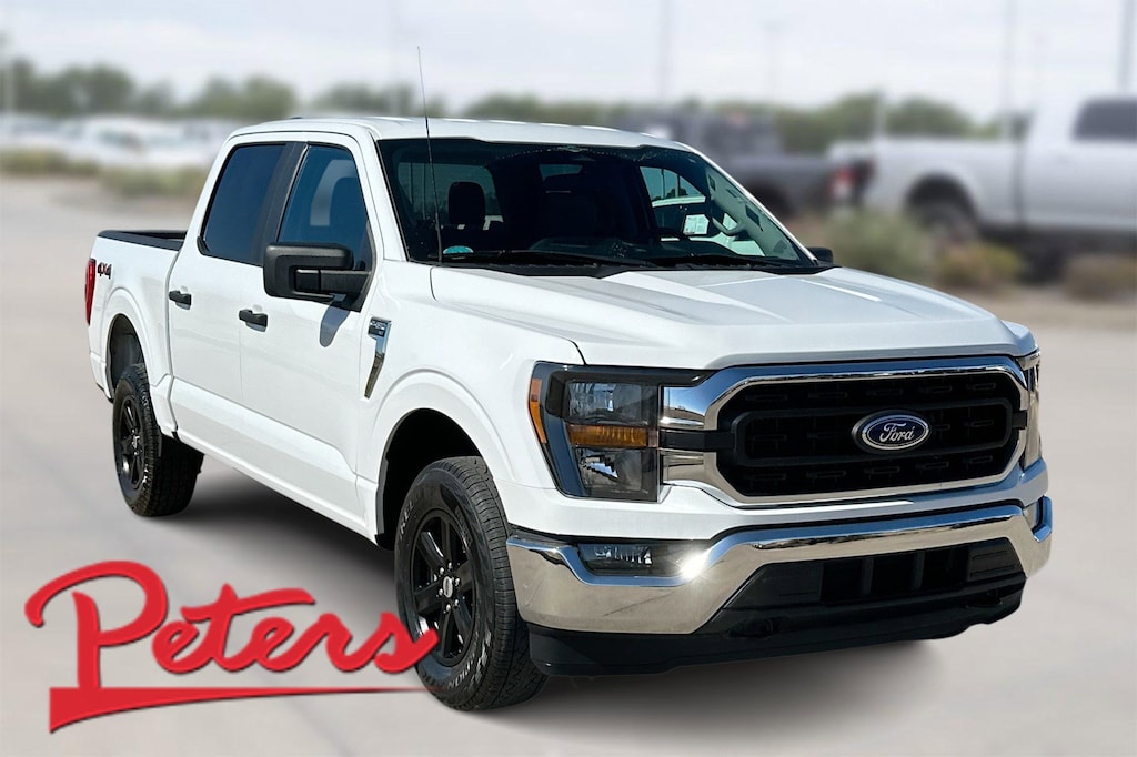 This 2023 Ford F-150 XLT in Oxford White comes with the following features: 3.5L V6 EcoBoost 10-Speed Automatic 4WD F-150 XLT, 4D SuperCrew, 3.5L V6 EcoBoost, 10-Speed Automatic, Oxford White, Black w/Medium Dark Slate w/Cloth 40/20/40 Front Seat, ABS brakes, Alloy wheels, Compass, Electronic Stability Control, Heated door mirrors, Illuminated entry, Low tire pressure warning, Remote keyless entry, Traction control, 4-Wheel Disc Brakes, 6 Speakers, Air Conditioning, AM/FM radio, Auto High-beam Headlights, Brake assist, Bumpers: chrome, Cloth 40/20/40 Front Seat, Delay-off headlights, Driver door bin, Driver vanity mirror, Dual front impact airbags, Dual front side impact airbags, Emergency communication system: SYNC 4 911 Assist, Exterior Parking Camera Rear, Front anti-roll bar, Front Center Armrest w/Storage, Front fog lights, Front reading lights, Front wheel independent suspension, Fully automatic headlights, Occupant sensing airbag, Outside temperature display, Overhead airbag, Overhead console, Panic alarm, Passenger door bin, Passenger vanity mirror, Power door mirrors, Power steering, Power windows, Radio data system, Radio: AM/FM Stereo w/6 Speakers, Rear reading lights, Rear step bumper, Rear window defroster, Security system, Speed control, Speed-sensing steering, Split folding rear seat, Steering wheel mounted audio controls, SYNC 4, Tachometer, Telescoping steering wheel, Tilt steering wheel, Trip computer, Variably intermittent wipers, Voltmeter, and Wheels: 17" Silver Painted Aluminum.