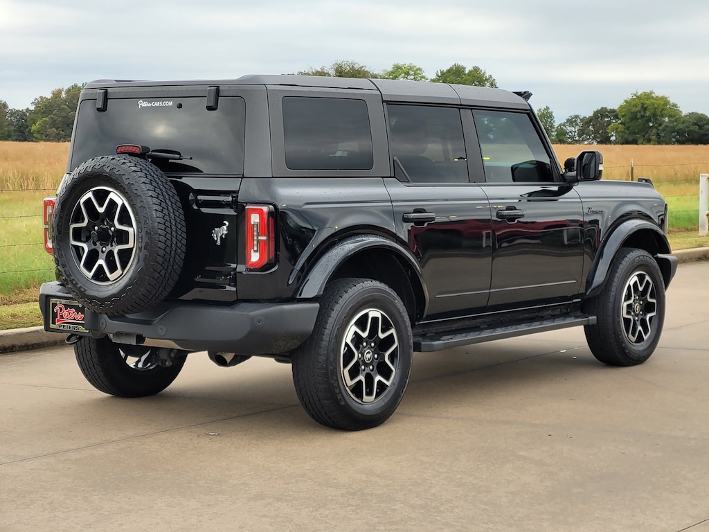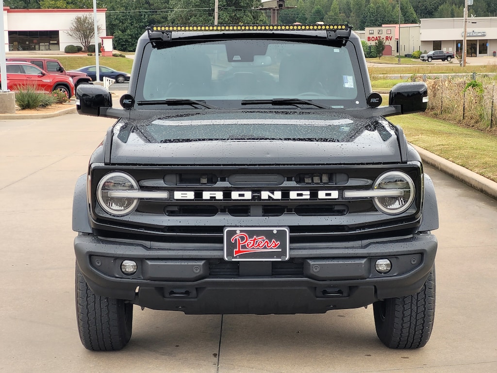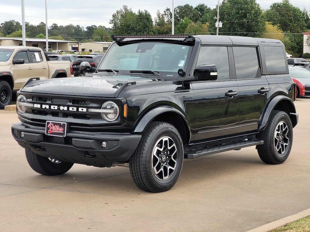 This 2024 Ford Bronco Outer Banks in Shadow Black comes with the following features: 2.3L EcoBoost I-4 10-Speed Automatic 4WD Equipment Group 314A High/Lux Package (10 Speakers w/Subwoofer, 360-Degree Camera, Adaptive Cruise Control, Additional Sound Deadening, Evasive Steering Assist, Front Parking Sensors, Heated Steering Wheel, Information on Demand Panel, Radio: B&O Sound System by Bang & Olufsen, Sideview Mirrors, Universal Garage Door Opener, and Wireless Charging Pad), 18" Bright Machined Aluminum Wheels, 3.73 Axle Ratio, 4-Wheel Disc Brakes, 7 Speakers, ABS brakes, Air Conditioning, Alloy wheels, AM/FM radio: SiriusXM with 360L, AM/FM Stereo, Auto High-beam Headlights, Auto-dimming Rear-View mirror, Automatic temperature control, Auxiliary Switches, Brake assist, Carbonized Gray Molded-In-Color Hard Top, Compass, Connected Navigation, Delay-off headlights, Driver door bin, Driver vanity mirror, Dual front impact airbags, Dual front side impact airbags, Electronic Stability Control, Emergency communication system: 911 Assist, Exterior Parking Camera Rear, Front anti-roll bar, Front Bucket Seats, Front Center Armrest, Front dual zone A/C, Front fog lights, Front License Plate Bracket, Front reading lights, Front Row Top Panels Storage Bag, Front wheel independent suspension, Fully automatic headlights, Hard Top Sound Deadening Headliner, Heated door mirrors, Heated front seats, Heated Leather-Trimmed/Vinyl Bucket Seats, Illuminated entry, Integrated roll-over protection, Leather Shift Knob, Low tire pressure warning, Navigation system: Connected Navigation, Occupant sensing airbag, Outside temperature display, Overhead airbag, Overhead console, Panic alarm, Passenger door bin, Passenger vanity mirror, Power door mirrors, Power driver seat, Power passenger seat, Power steering, Power windows, Radio data system, Rear seat center armrest, Rear-Window Defroster & Washer, Remote keyless entry, Security system, SiriusXM Radio w/360L, Speed control, Split folding rear seat, Steering wheel mounted audio controls, SYNC 4, Tachometer, Telescoping steering wheel, Tilt steering wheel, Traction control, Trip computer, Variably intermittent wipers, and Voltmeter.