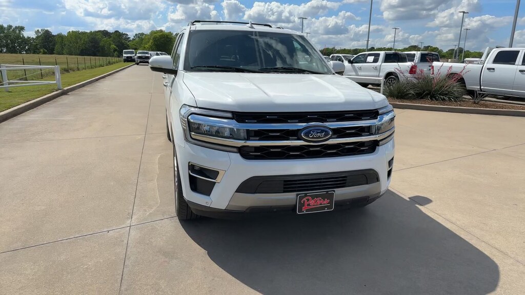 This 2024 Ford Expedition Max Limited in Oxford White comes with the following features: EcoBoost 3.5L V6 GTDi DOHC 24V Twin Turbocharged 10-Speed Automatic 4WD Equipment Group 302A High Package (Ebony Black Mesh Grille, Heavy-Duty Independent Suspension, Magnetic-Painted Power Deployable Running Boards, Power-Folding Sideview Mirrors w/Autofold, and Wheels: 22" 12-Spoke Polished Aluminum), 12 Speakers, 3.31 Axle Ratio, 360-Degree Camera w/Split View, 3rd row seats: split-bench, 4-Wheel Disc Brakes, ABS brakes, Adjustable pedals, Advanced Cargo Manager, Air Conditioning, Alloy wheels, AM/FM radio: SiriusXM with 360L, Auto High-beam Headlights, Auto-dimming door mirrors, Auto-dimming Rear-View mirror, Automatic temperature control, Black Roof-Rail Crossbars, Brake assist, Bumpers: body-color, Compass, Connected Navigation, Delay-off headlights, Driver door bin, Driver vanity mirror, Dual front impact airbags, Dual front side impact airbags, Electronic Stability Control, Emergency communication system: SYNC 4 911 Assist, Exterior Parking Camera Rear, Four wheel independent suspension, Front anti-roll bar, Front Bucket Seats, Front Center Armrest, Front dual zone A/C, Front fog lights, Front reading lights, Fully automatic headlights, Garage door transmitter, Heated & Ventilated Leather Front Captain's Chairs, Heated door mirrors, Heated front seats, Heated rear seats, Heated steering wheel, Illuminated entry, Leather steering wheel, Low tire pressure warning, Memory seat, Navigation system: Connected Navigation, Occupant sensing airbag, Outside temperature display, Overhead airbag, Overhead console, Panic alarm, Passenger door bin, Passenger vanity mirror, Pedal memory, Power door mirrors, Power driver seat, Power Liftgate, Power moonroof, Power passenger seat, Power steering, Power windows, Radio data system, Radio: B&O Sound System by Bang & Olufsen, Rain sensing wipers, Rear air conditioning, Rear anti-roll bar, Rear reading lights, Rear window defroster, Rear window wiper, Reclining 3rd row seat, Remote keyless entry, Reverse Brake Assist, Security system, SiriusXM w/360L, Speed control, Speed-sensing steering, Speed-Sensitive Wipers, Split folding rear seat, Spoiler, Steering wheel memory, Steering wheel mounted audio controls, SYNC 4 w/Enhanced Voice Recognition, Tachometer, Telescoping steering wheel, Tilt steering wheel, Traction control, Trip computer, Turn signal indicator mirrors, Variably intermittent wipers, Ventilated front seats, Voltmeter, and Wheels: 20" Bright Machined Aluminum.