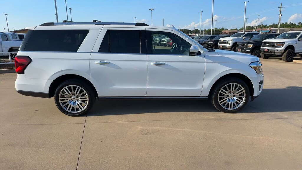 This 2024 Ford Expedition Max Limited in Oxford White comes with the following features: EcoBoost 3.5L V6 GTDi DOHC 24V Twin Turbocharged 10-Speed Automatic 4WD Equipment Group 302A High Package (Ebony Black Mesh Grille, Heavy-Duty Independent Suspension, Magnetic-Painted Power Deployable Running Boards, Power-Folding Sideview Mirrors w/Autofold, and Wheels: 22" 12-Spoke Polished Aluminum), 12 Speakers, 3.31 Axle Ratio, 360-Degree Camera w/Split View, 3rd row seats: split-bench, 4-Wheel Disc Brakes, ABS brakes, Adjustable pedals, Advanced Cargo Manager, Air Conditioning, Alloy wheels, AM/FM radio: SiriusXM with 360L, Auto High-beam Headlights, Auto-dimming door mirrors, Auto-dimming Rear-View mirror, Automatic temperature control, Black Roof-Rail Crossbars, Brake assist, Bumpers: body-color, Compass, Connected Navigation, Delay-off headlights, Driver door bin, Driver vanity mirror, Dual front impact airbags, Dual front side impact airbags, Electronic Stability Control, Emergency communication system: SYNC 4 911 Assist, Exterior Parking Camera Rear, Four wheel independent suspension, Front anti-roll bar, Front Bucket Seats, Front Center Armrest, Front dual zone A/C, Front fog lights, Front License Plate Bracket, Front reading lights, Fully automatic headlights, Garage door transmitter, Heated & Ventilated Leather Front Captain's Chairs, Heated door mirrors, Heated front seats, Heated rear seats, Heated steering wheel, Illuminated entry, Leather steering wheel, Low tire pressure warning, Memory seat, Navigation system: Connected Navigation, Occupant sensing airbag, Outside temperature display, Overhead airbag, Overhead console, Panic alarm, Passenger door bin, Passenger vanity mirror, Pedal memory, Power door mirrors, Power driver seat, Power Liftgate, Power moonroof, Power passenger seat, Power steering, Power windows, Radio data system, Radio: B&O Sound System by Bang & Olufsen, Rain sensing wipers, Rear air conditioning, Rear anti-roll bar, Rear reading lights, Rear window defroster, Rear window wiper, Reclining 3rd row seat, Remote keyless entry, Reverse Brake Assist, Security system, SiriusXM w/360L, Speed control, Speed-sensing steering, Speed-Sensitive Wipers, Split folding rear seat, Spoiler, Steering wheel memory, Steering wheel mounted audio controls, SYNC 4 w/Enhanced Voice Recognition, Tachometer, Telescoping steering wheel, Tilt steering wheel, Traction control, Trip computer, Turn signal indicator mirrors, Variably intermittent wipers, Ventilated front seats, Voltmeter, and Wheels: 20" Bright Machined Aluminum.