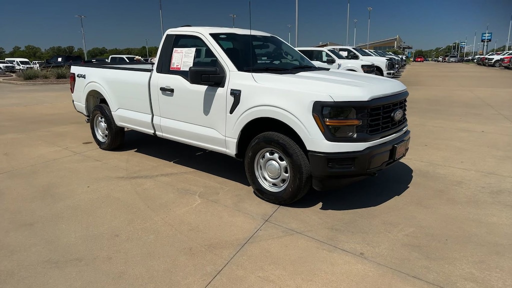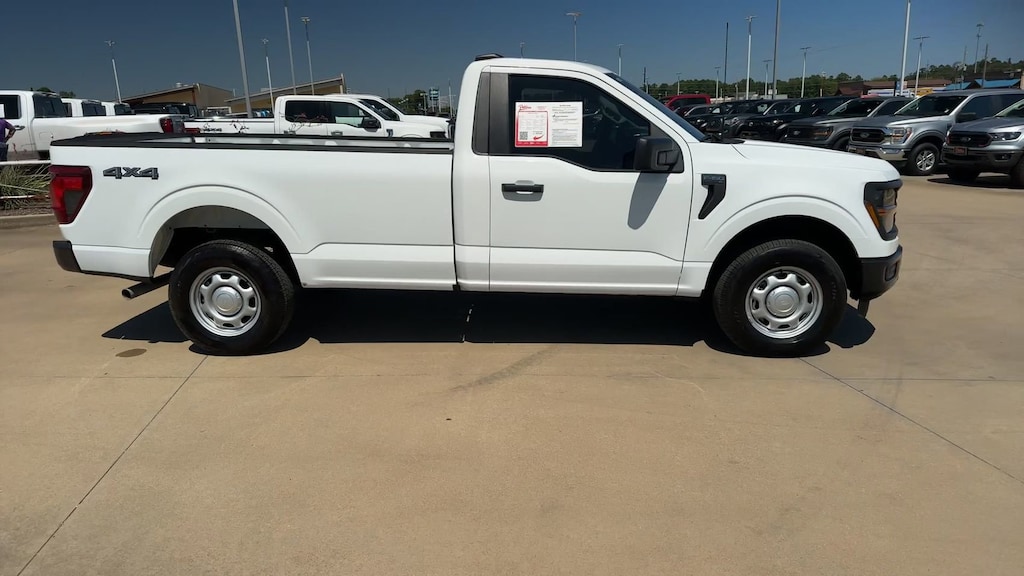 This 2024 Ford F-150 XL in Oxford White comes with the following features: 2.7L V6 EcoBoost 10-Speed Automatic 4WD Equipment Group 101A Standard, GVWR: 6,450 lbs Payload Package, 4WD, 3.55 Axle Ratio, 4 Speakers, 4-Wheel Disc Brakes, ABS brakes, Air Conditioning, AM/FM radio: SiriusXM with 360L, Auto High-beam Headlights, Brake assist, Cloth 40/20/40 Front Seat, Compass, Delay-off headlights, Driver door bin, Dual front impact airbags, Dual front side impact airbags, Electronic Stability Control, Emergency communication system: SYNC 4 911 Assist, Front anti-roll bar, Front Center Armrest, Front License Plate Bracket, Front reading lights, Front wheel independent suspension, Fully automatic headlights, Heated door mirrors, Illuminated entry, Low tire pressure warning, Navigation system: Connected Navigation, Occupant sensing airbag, Outside temperature display, Overhead airbag, Overhead console, Panic alarm, Passenger door bin, Passenger vanity mirror, Power door mirrors, Power steering, Power windows, Radio data system, Radio: AM/FM SiriusXM w/360L, Rear step bumper, Remote keyless entry, Security system, Speed control, Steering wheel mounted audio controls, SYNC 4 w/Enhanced Voice Recognition, Tachometer, Telescoping steering wheel, Tilt steering wheel, Traction control, Trip computer, Variably intermittent wipers, Voltmeter, and Wheels: 17" Silver Steel.
