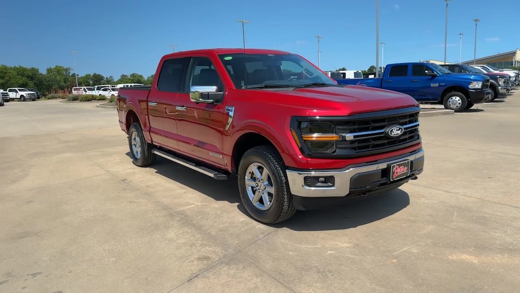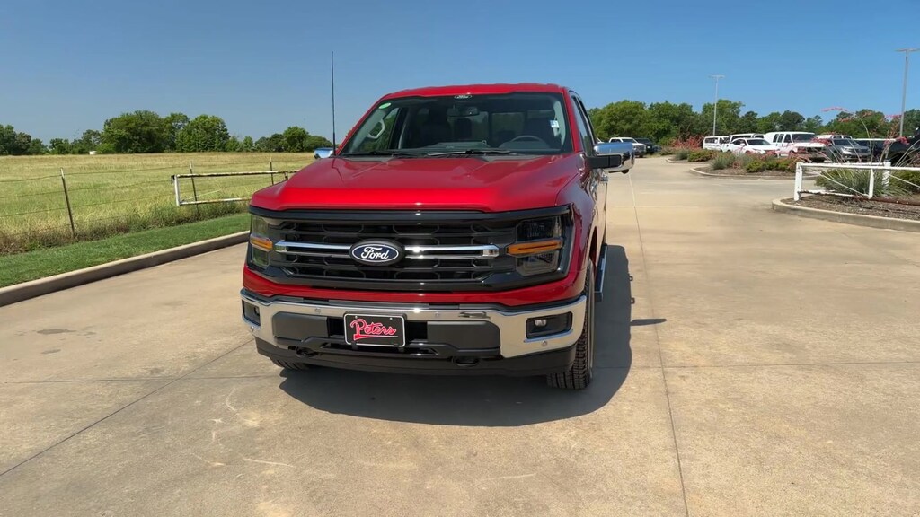This 2024 Ford F-150 XLT in Rapid Red Metallic Tinted Clearcoat comes with the following features: 3.5L PowerBoost Full-Hybrid V6 10-Speed Automatic 4WD 3.5L PowerBoost Full-Hybrid V6, 4WD, 4-Wheel Disc Brakes, 6 Speakers, ABS brakes, Air Conditioning, Alloy wheels, AM/FM radio: SiriusXM with 360L, Auto High-beam Headlights, Auto-dimming Rear-View mirror, Automatic temperature control, Brake assist, Bumpers: chrome, Chrome wheels, Cloth 40/20/40 Front Seat, Compass, Delay-off headlights, Driver door bin, Driver vanity mirror, Dual front impact airbags, Dual front side impact airbags, Electronic Stability Control, Emergency communication system: SYNC 4 911 Assist, Front anti-roll bar, Front Center Armrest w/Storage, Front dual zone A/C, Front fog lights, Front reading lights, Front wheel independent suspension, Fully automatic headlights, Heated door mirrors, Illuminated entry, Low tire pressure warning, Navigation system: Connected Navigation, Occupant sensing airbag, Outside temperature display, Overhead airbag, Overhead console, Panic alarm, Passenger door bin, Passenger vanity mirror, Power door mirrors, Power driver seat, Power steering, Power windows, Radio data system, Radio: AM/FM SiriusXM w/360L, Rear reading lights, Rear step bumper, Rear window defroster, Remote keyless entry, Security system, Speed control, Split folding rear seat, Steering wheel mounted audio controls, SYNC 4 w/Enhanced Voice Recognition, Tachometer, Telescoping steering wheel, Tilt steering wheel, Traction control, Trip computer, Variably intermittent wipers, Voltmeter, and Wheels: 18" Chrome-Like PVD.