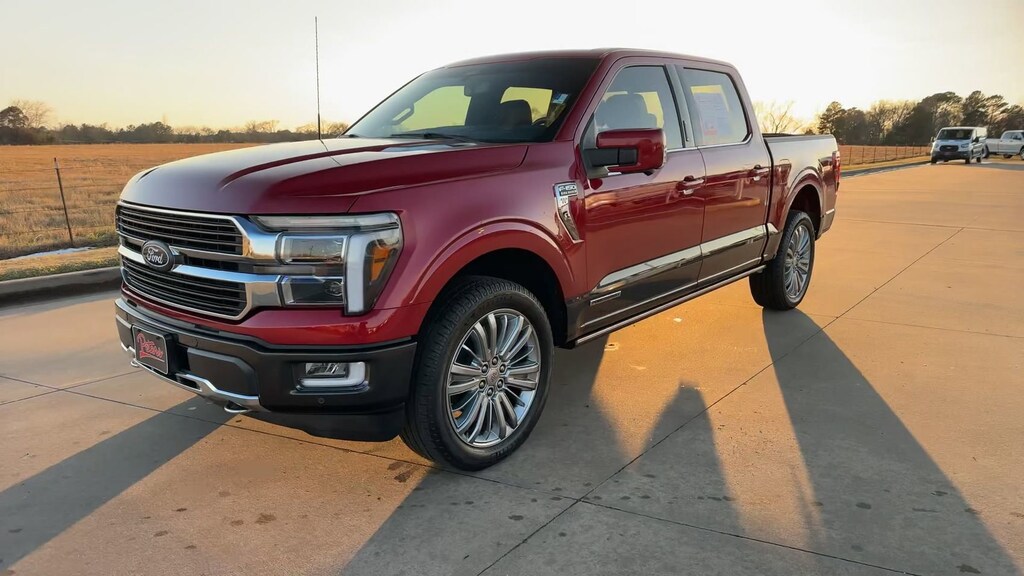 This 2024 Ford F-150 King Ranch in Brown comes with the following features: 3.5L PowerBoost Full-Hybrid V6 10-Speed Automatic 4WD Equipment Group 601A High, 14 Speakers, 4-Wheel Disc Brakes, ABS brakes, Adaptive suspension, Adjustable pedals, Air Conditioning, Alloy wheels, AM/FM radio: SiriusXM with 360L, Auto High-beam Headlights, Auto-dimming door mirrors, Auto-dimming Rear-View mirror, Automatic temperature control, Brake assist, Chrome wheels, Compass, Delay-off headlights, Driver door bin, Driver vanity mirror, Dual front impact airbags, Dual front side impact airbags, Electronic Stability Control, Emergency communication system: SYNC 4 911 Assist, Front anti-roll bar, Front Bucket Seats, Front Center Armrest, Front dual zone A/C, Front fog lights, Front License Plate Bracket, Front reading lights, Front wheel independent suspension, Fully automatic headlights, Garage door transmitter, Genuine wood dashboard insert, Heads-Up Display, Heated door mirrors, Heated front seats, Heated rear seats, Heated steering wheel, Illuminated entry, King Ranch Leather Bucket Seats, Low tire pressure warning, Memory seat, Navigation system: Connected Navigation, Occupant sensing airbag, Outside temperature display, Overhead airbag, Overhead console, Panic alarm, Passenger door bin, Passenger vanity mirror, Pedal memory, Power door mirrors, Power driver seat, Power moonroof, Power passenger seat, Power steering, Power windows, Radio data system, Radio: B&O Unleashed Sound System by Bang & Olufsen, Rain sensing wipers, Rear reading lights, Rear seat center armrest, Rear step bumper, Rear window defroster, Remote keyless entry, Security system, Speed control, Split folding rear seat, Steering wheel mounted audio controls, SYNC 4 w/Enhanced Voice Recognition, Tachometer, Telescoping steering wheel, Tilt steering wheel, Traction control, Trip computer, Turn signal indicator mirrors, Variably intermittent wipers, Ventilated front seats, Voltmeter, and Wheels: 20" Chrome-Like PVD.