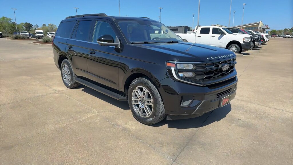 This 2025 Ford Expedition Active in Black Metallic comes with the following features: EcoBoost 3.5L V6 GTDi DOHC 24V Twin Turbocharged 10-Speed Automatic 4WD Equipment Group 202A High Package (110V/400W AC Power Outlet, 26mm Engine Radiator, 2nd Row Power-Folding Captain's Chairs, 360-Degree Zone Lighting, 3rd Row Flexible Seating, 3rd Row Vinyl Seats, 4-Door Intelligent Access (Lock/Unlock), ActiveX Front Heated Captain's Chairs, BlueCruise Equipped, Flex Powered Console, Ford Split Gate, Front Side Laminated Glass, Heated Steering Wheel, Heavy-Duty Trailer Tow, Integrated Trailer Brake Control, Memory Driver Seat, Power Panoramic Vista Roof w/Power Sunshade, Power Tilt/Telescopic Steering Wheel w/Memory, Power-Folding Sideview Mirrors w/Autofold, Rain Sensing Wipers, SecuriCode Keyless Entry Pad, Universal Garage Door Opener, USB Ports, Wheels: 20" Carbonized Gray Bright Machined Aluminum, and Wireless Charging Pad), 2nd Row Power-Folding 40/20/40 ActiveX Bench Seat, 3.73 Axle Ratio, 3rd row seats: split-bench, 4-Wheel Disc Brakes, 6 Speakers, ABS brakes, Air Conditioning, Alloy wheels, AM/FM radio: SiriusXM with 360L, Apple CarPlay/Android Auto, Auto High-beam Headlights, Auto-dimming Rear-View mirror, Automatic temperature control, Brake assist, Bumpers: body-color, Cloth Front Captain's Chairs, Compass, Delay-off headlights, Driver door bin, Driver State Detection, Driver vanity mirror, Dual front impact airbags, Dual front side impact airbags, Electronic Stability Control, Emergency communication system: 911 Assist, Exterior Parking Camera Rear, Four wheel independent suspension, Front anti-roll bar, Front Bucket Seats, Front Center Armrest, Front dual zone A/C, Front License Plate Bracket, Front reading lights, Fully automatic headlights, Heated door mirrors, Illuminated entry, Intersection Assist, Low tire pressure warning, Navigation System, Occupant sensing airbag, Outside temperature display, Overhead airbag, Overhead console, Panic alarm, Passenger door bin, Passenger vanity mirror, Power door mirrors, Power driver seat, Power passenger seat, Power steering, Power windows, Radio data system, Radio: AM/FM Stereo w/MP3 Capable, Rear air conditioning, Rear anti-roll bar, Rear reading lights, Rear window defroster, Rear window wiper, Reclining 3rd row seat, Remote keyless entry, Security system, SiriusXM w/360L, Speed control, Speed-sensing steering, Speed-Sensitive Wipers, Split folding rear seat, Spoiler, Steering wheel mounted audio controls, Tachometer, Telescoping steering wheel, Tilt steering wheel, Traction control, Trip computer, Variably intermittent wipers, Voltmeter, and Wheels: 18" Dark Alloy Painted Aluminum.