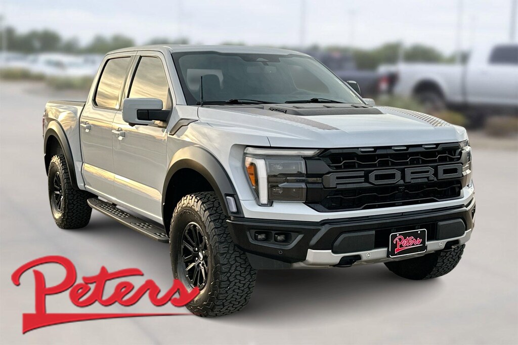 This 2025 Ford F-150 Raptor in White Metallic comes with the following features: 3.5L V6 EcoBoost 10-Speed Automatic 4WD Equipment Group 801A Standard, 14 Speakers, 17" Cast Aluminum Wheels, 4-Wheel Disc Brakes, ABS brakes, Adjustable pedals, Air Conditioning, Alloy wheels, AM/FM radio: SiriusXM with 360L, Auto High-beam Headlights, Auto tilt-away steering wheel, Auto-dimming door mirrors, Auto-dimming Rear-View mirror, Automatic temperature control, Brake assist, Bumpers: body-color, Compass, Delay-off headlights, Driver door bin, Driver vanity mirror, Dual front impact airbags, Dual front side impact airbags, Electronic Locking w/4.10 Axle Ratio, Electronic Stability Control, Emergency communication system: SYNC 4 911 Assist, Front anti-roll bar, Front Bucket Seats, Front Center Armrest, Front dual zone A/C, Front fog lights, Front License Plate Bracket, Front reading lights, Front wheel independent suspension, Fully automatic headlights, Garage door transmitter, Heads-Up Display, Heated door mirrors, Heated front seats, Heated rear seats, Heated steering wheel, Illuminated entry, Internet access capable: FordPass Connect 5G, Lane Departure Warning System, Leather steering wheel, Leather Trimmed Seats, Low tire pressure warning, Memory seat, Navigation system: Connected Navigation, Occupant sensing airbag, Outside temperature display, Overhead airbag, Overhead console, Panic alarm, Passenger door bin, Passenger vanity mirror, Pedal memory, Power door mirrors, Power driver seat, Power passenger seat, Power steering, Power windows, Radio data system, Radio: B&O Unleashed Sound System by Bang & Olufsen, Rain sensing wipers, Rear reading lights, Rear step bumper, Rear window defroster, Remote keyless entry, Security system, Speed control, Speed-sensing steering, Split folding rear seat, Steering wheel memory, Steering wheel mounted audio controls, SYNC 4 w/Enhanced Voice Recognition, Tachometer, Telescoping steering wheel, Tilt steering wheel, Tough Bed Spray-In Bedliner, Traction control, Trip computer, Turn signal indicator mirrors, Twin Panel Moonroof, Variably intermittent wipers, and Ventilated front seats.