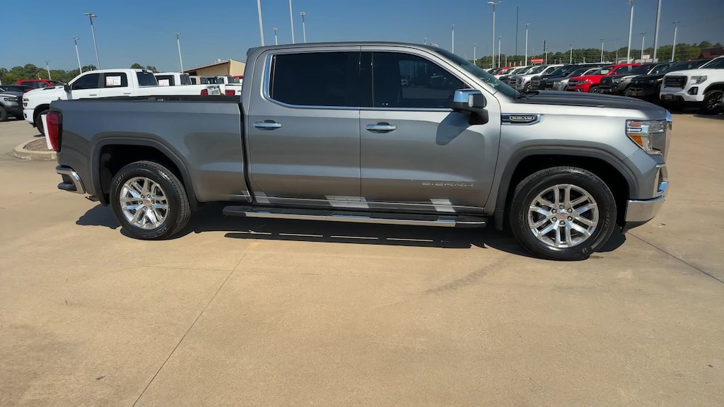 This 2020 GMC Sierra 1500 SLT in Satin Steel Metallic comes with the following features: EcoTec3 5.3L V8 8-Speed Automatic RWD Driver Alert Package I (Front Frame-Mounted Black Recovery Hooks, Lane Change Alert w/Side Blind Zone Alert, Perimeter Lighting, Rear Cross Traffic Alert, and Ultrasonic Front & Rear Park Assist), Max Trailering Package (220 Amp Alternator, Enhanced Cooling Radiator, Heavier Duty Rear Springs, and Increased RGAWR), Preferred Equipment Group 4SA (12-Volt Rear Auxiliary Power Outlet, 120-Volt Bed Mounted Power Outlet, 120-Volt Instrument Panel Power Outlet, 170 Amp Alternator, 4G LTE Wi-Fi Hotspot Capable, Auxiliary External Transmission Oil Cooler, Chrome Grille, Color-Keyed Carpeting Floor Covering, Compass, Deep-Tinted Glass, Electric Rear-Window Defogger, Electrical Lock Control Steering Column, GMC Connected Access Capable, HD Radio, Heated Driver & Front Outboard Passenger Seating, Heavy-Duty Rear Locking Differential, Hitch Guidance, Hitch Guidance w/Hitch View, In-Vehicle Trailering App, Integrated Trailer Brake Controller, Keyless Open & Start, LED Cargo Area Lighting, Manual Tilt-Wheel & Telescoping Steering Column, OnStar & GMC Connected Services Capable, Power Door Locks, Power Front Passenger Windows w/Express Up/Down, Power Front Windows w/Driver Express Up/Down, Power Rear Windows w/Express Down, ProGrade Trailering System, Rear Dual USB Charging-Only Ports, Rear Wheelhouse Liners, Remote Vehicle Starter System, Steering Wheel Audio Controls, and Theft Deterrent System (Unauthorized Entry)), Trailering Package, 10-Way Power Driver Seat Adjuster w/Lumbar, 10-Way Power Passenger Seat Adjuster w/Lumbar, 20" x 9" Polished Aluminum Wheels, 4-Wheel Disc Brakes, 6 Speakers, 6-Speaker Audio System Feature, ABS brakes, Air Conditioning, Alloy wheels, AM/FM radio: SiriusXM with 360L, Apple CarPlay/Android Auto, Auto-dimming door mirrors, Auto-dimming Rear-View mirror, Automatic temperature control, Brake assist, Bumpers: chrome, Delay-off headlights, Driver door bin, Driver Memory, Driver vanity mirror, Dual front impact airbags, Dual front side impact airbags, Electronic Stability Control, Front 40/20/40 Split-Bench Seat, Front anti-roll bar, Front Center Armrest w/Storage, Front dual zone A/C, Front fog lights, Front License Plate Kit, Front reading lights, Front wheel independent suspension, Fully automatic headlights, Heated door mirrors, Heated front seats, Heated steering wheel, Heavy Duty Suspension, Illuminated entry, Low tire pressure warning, Memory seat, Occupant sensing airbag, Outside temperature display, Overhead airbag, Overhead console, Panic alarm, Passenger door bin, Passenger vanity mirror, Perforated Leather-Appointed Front Seat Trim, Power door mirrors, Power driver seat, Power passenger seat, Power steering, Power windows, Premium audio system: GMC Infotainment System, Radio data system, Radio: Premium GMC Infotainment Sys w/Multi-Touch, Rear reading lights, Rear seat center armrest, Rear step bumper, Rear window defroster, Remote keyless entry, Security system, SiriusXM w/360L, Speed control, Speed-sensing steering, Split folding rear seat, Steering wheel mounted audio controls, Tachometer, Telescoping steering wheel, Tilt steering wheel, Traction control, Trip computer, Variably intermittent wipers, Voltmeter, and Wheels: 18" x 8.5" 6-Spoke Machined Aluminum.