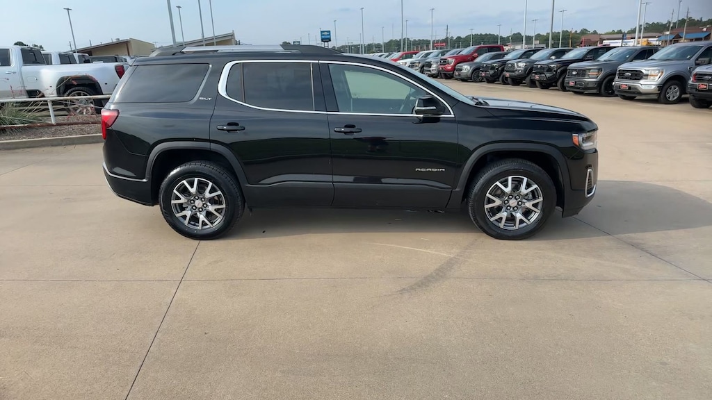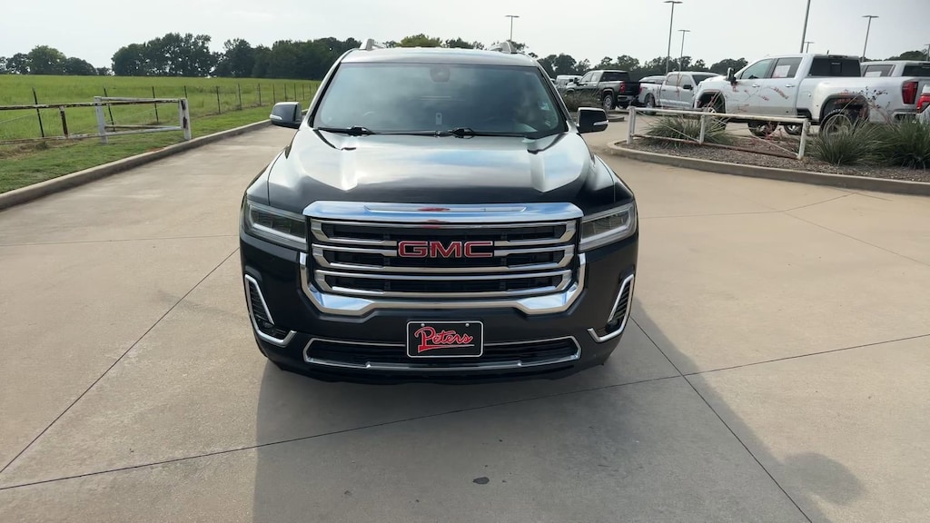 This 2023 GMC Acadia SLT in Ebony Twilight Metallic comes with the following features: 2.0L Turbocharged 9-Speed Automatic AWD Preferred Equipment Group 4SA, AWD, Black Leather, 18" Aluminum Wheels, 3.47 Final Drive Axle Ratio, 3rd row seats: split-bench, 4-Way Manual Passenger Seat Adjuster, 4-Wheel Disc Brakes, 6-Passenger (2-2-2 Seating Configuration), 7-Passenger (2-3-2 Seating Configuration), 8 Speakers, 8-Way Power Driver Seat Adjuster, ABS brakes, Air Conditioning, Alloy wheels, AM/FM radio: SiriusXM with 360L, Apple CarPlay/Android Auto, Auto High-beam Headlights, Auto-dimming Rear-View mirror, Automatic temperature control, Bose Premium 8-Speaker Audio System Feature, Brake assist, Bumpers: body-color, Compass, Delay-off headlights, Deleted 3 Years of OnStar & Connected Services Plan, Driver door bin, Driver vanity mirror, Dual front impact airbags, Dual front side impact airbags, Electronic Stability Control, Emergency communication system: OnStar and GMC connected services capable, Four wheel independent suspension, Front anti-roll bar, Front Bucket Seats, Front Center Armrest, Front dual zone A/C, Front fog lights, Front License Plate Bracket, Front reading lights, Fully automatic headlights, Garage door transmitter, Heated door mirrors, Heated Driver & Front Passenger Seats, Heated front seats, Illuminated entry, Knee airbag, Low tire pressure warning, Navigation System, Not Equipped w/Front & Rear Park Assist (060), Occupant sensing airbag, Outside temperature display, Overhead airbag, Overhead console, Panic alarm, Passenger door bin, Passenger vanity mirror, Perforated Leather-Appointed Seat Trim, Power door mirrors, Power Driver Lumbar Control Seat Adjuster, Power driver seat, Power Liftgate, Power steering, Power windows, Radio data system, Radio: AM/FM 8" Diagonal Multi-Touch Navigation, Rear air conditioning, Rear anti-roll bar, Rear reading lights, Rear window defroster, Rear window wiper, Remote keyless entry, Roof rack: rails only, Security system, SiriusXM w/360L, Speed control, Speed-sensing steering, Spoiler, Steering wheel mounted audio controls, Tachometer, Telescoping steering wheel, Tilt steering wheel, Traction control, Trip computer, Turn signal indicator mirrors, Variably intermittent wipers, Voltmeter, and Wireless Apple CarPlay/Wireless Android Auto.