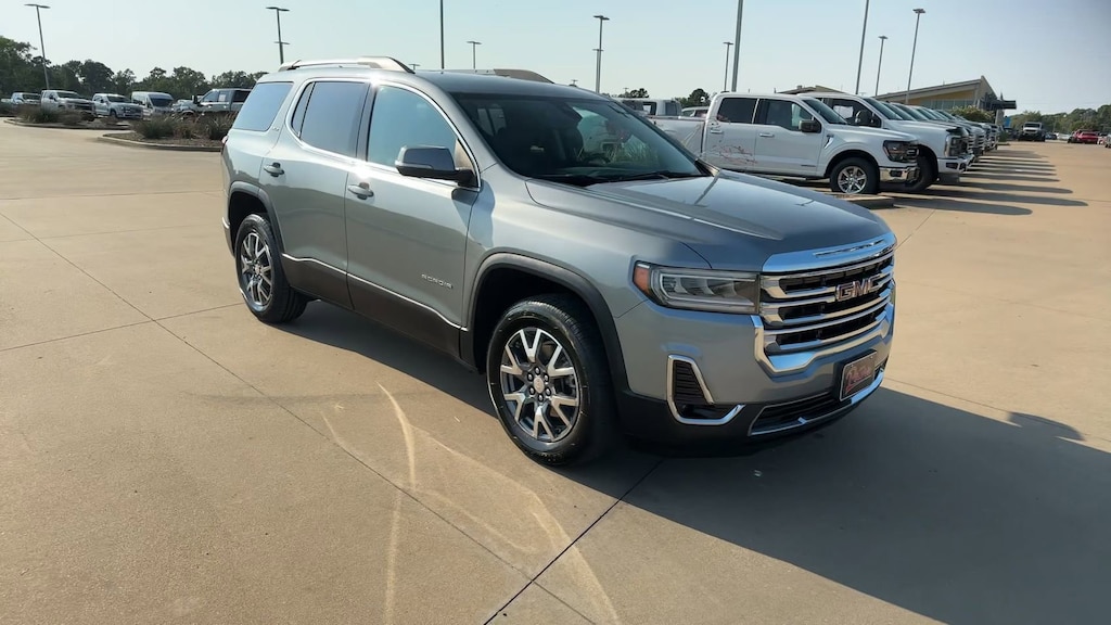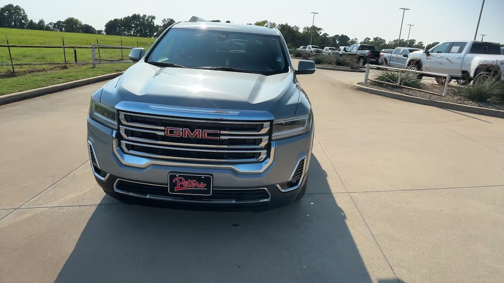 This 2023 GMC Acadia SLT in Sterling Metallic comes with the following features: 2.0L Turbocharged 9-Speed Automatic FWD Preferred Equipment Group 4SA, FWD, Black Leather, 18" Aluminum Wheels, 3.47 Final Drive Axle Ratio, 3rd row seats: split-bench, 4-Way Manual Passenger Seat Adjuster, 4-Wheel Disc Brakes, 6-Passenger (2-2-2 Seating Configuration), 7-Passenger (2-3-2 Seating Configuration), 8 Speakers, 8-Way Power Driver Seat Adjuster, ABS brakes, Air Conditioning, Alloy wheels, AM/FM radio: SiriusXM with 360L, Apple CarPlay/Android Auto, Auto High-beam Headlights, Auto-dimming Rear-View mirror, Automatic temperature control, Bose Premium 8-Speaker Audio System Feature, Brake assist, Bumpers: body-color, Compass, Delay-off headlights, Deleted 3 Years of OnStar & Connected Services Plan, Driver door bin, Driver vanity mirror, Dual front impact airbags, Dual front side impact airbags, Electronic Stability Control, Emergency communication system: OnStar and GMC connected services capable, Four wheel independent suspension, Front anti-roll bar, Front Bucket Seats, Front Center Armrest, Front dual zone A/C, Front fog lights, Front reading lights, Fully automatic headlights, Garage door transmitter, Heated door mirrors, Heated Driver & Front Passenger Seats, Heated front seats, Illuminated entry, Knee airbag, Low tire pressure warning, Navigation System, Not Equipped w/Front & Rear Park Assist (060), Occupant sensing airbag, Outside temperature display, Overhead airbag, Overhead console, Panic alarm, Passenger door bin, Passenger vanity mirror, Perforated Leather-Appointed Seat Trim, Power door mirrors, Power Driver Lumbar Control Seat Adjuster, Power driver seat, Power Liftgate, Power steering, Power windows, Radio data system, Radio: AM/FM 8" Diagonal Multi-Touch Navigation, Rear air conditioning, Rear anti-roll bar, Rear reading lights, Rear window defroster, Rear window wiper, Remote keyless entry, Security system, SiriusXM w/360L, Speed control, Speed-sensing steering, Spoiler, Steering wheel mounted audio controls, Tachometer, Telescoping steering wheel, Tilt steering wheel, Traction control, Trip computer, Turn signal indicator mirrors, Variably intermittent wipers, Voltmeter, and Wireless Apple CarPlay/Wireless Android Auto.