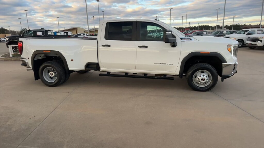 This 2023 GMC Sierra 3500HD Pro in Summit White comes with the following features: Duramax 6.6L V8 Turbodiesel 10-Speed Automatic 4WD Convenience Package (Deep-Tinted Glass, Electric Rear-Window Defogger, EZ Lift Power Lock & Release Tailgate, LED Cargo Area Lighting, Outside Power-Adjustable Black Mirrors, Remote Keyless Entry, and Steering Wheel-Mounted Cruise Control), Heavy Duty Front Spring/Camper Package, Preferred Equipment Group 1SA (2-Speed Electronic Shift Transfer Case, Chrome Surround Grille w/Black Mesh, Power Rear Windows w/Express Down, and Solar Absorbing Tinted Glass), Suspension Package, 220 Amp Alternator, 4-Way Manual Driver Seat Adjuster, 4-Way Manual Passenger Seat Adjuster, 4-Wheel Disc Brakes, 6 Speakers, 6-Speaker Audio System Feature, ABS brakes, Air Conditioning, AM/FM radio, Apple CarPlay/Android Auto, Black Assist Step (LPO), Brake assist, Bumpers: chrome, Delay-off headlights, Driver door bin, Dual front impact airbags, Dual front side impact airbags, Electronic Stability Control, Engine Block Heater, Exhaust Brake, Front 40/20/40 Split-Bench Seats, Front anti-roll bar, Front Center Armrest w/Storage, Front License Plate Kit, Front reading lights, Front wheel independent suspension, Fully automatic headlights, Heavy-Duty 80 Amp Battery, High Idle Switch, Integrated Trailer Brake Controller, Low tire pressure warning, Occupant sensing airbag, Outside temperature display, Overhead airbag, Overhead console, Passenger door bin, Passenger vanity mirror, Pickup Bed, Power steering, Power windows, Premium audio system: GMC Infotainment System, Radio: AM/FM w/GMC Infotainment System, Rear reading lights, Rear step bumper, Split folding rear seat, Tachometer, Tilt steering wheel, Traction control, Trip computer, Variably intermittent wipers, Vinyl Seat Trim, Voltmeter, and Winter Grille Cover.