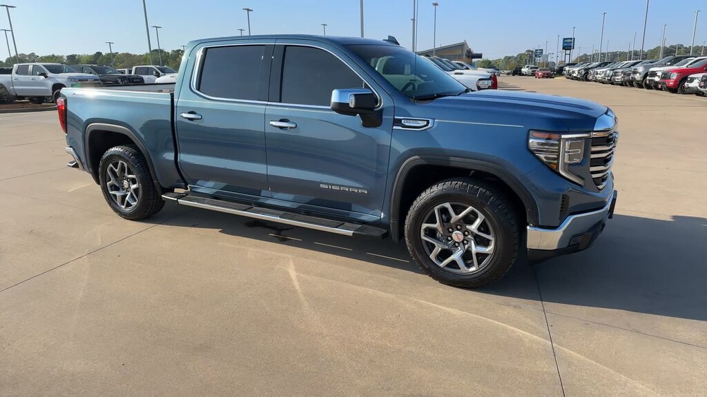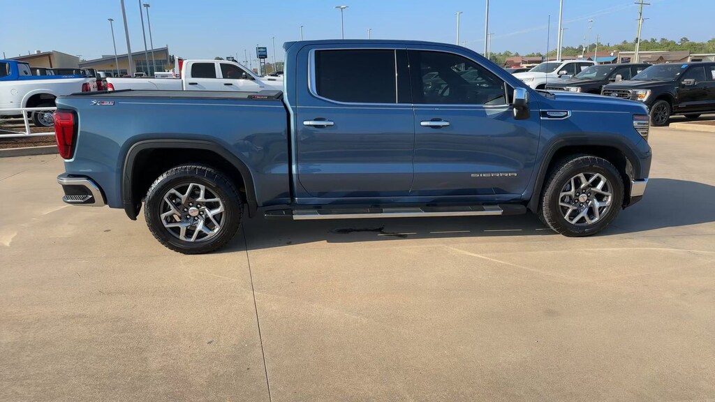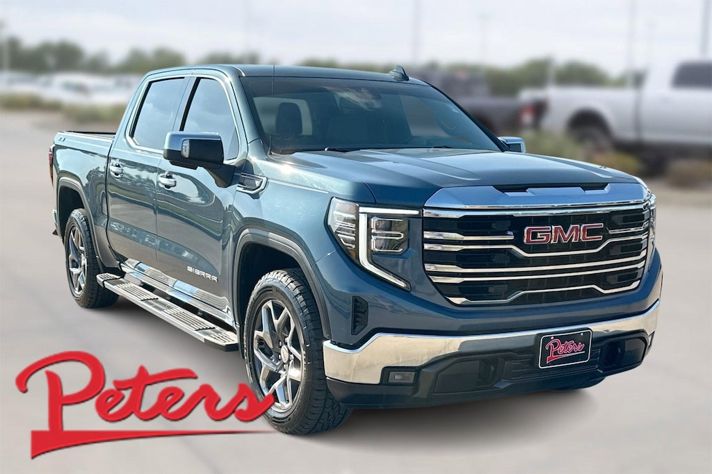 This 2024 GMC Sierra 1500 SLT in Downpour Metallic comes with the following features: EcoTec3 5.3L V8 10-Speed Automatic 4WD High Capacity Suspension Package, Preferred Equipment Group 4SA (120-Volt Bed Mounted Power Outlet, 120-Volt Interior Power Outlet, 170 Amp Alternator, 2 Charge/Data USB Ports, 2 Type-C Charge-Only Rear USB Ports, 6-Speaker Audio System Feature, Auto-Locking Rear Differential, Auxiliary External Transmission Oil Cooler, Chrome Header & Chrome Grille Insert Bars, Color-Keyed Carpeting Floor Covering, Deep-Tinted Glass, Electric Rear-Window Defogger, Front Frame-Mounted Black Recovery Hooks, Front Rain-Sensing Wipers, GMC Connected Access Capable, HD Rear Vision Camera, Keyless Open & Start, LED Cargo Area Lighting, Manual Tilt-Wheel & Telescoping Steering Column, OnStar & GMC Connected Services Capable, Perimeter Lighting, Power Door Locks, Power Front Passenger Windows w/Express Up/Down, Power Front Windows w/Driver Express Up/Down, Power Rear Windows w/Express Down, Push Button Start, Rear Wheelhouse Liners, Remote Vehicle Starter System, SiriusXM w/360L, Steering Wheel Audio Controls, Theft Deterrent System (Unauthorized Entry), and Wi-Fi Hotspot Capable), SLT Convenience Package (2 Charge/Data USB Ports Inside Center Console, Electronic Precision Shift, Floor-Mounted Center Console, Front Bucket Seats, Power Rake & Telescoping Steering Column, Premium Bose 7-Speaker Sound System, Ventilated Driver & Front Passenger Seats, and Wireless Charging), Standard Suspension Package, Texas Edition SLT Premium Package (20" Polished Aluminum Wheels, Chrome Wheel To Wheel Assist Steps, and Texas Edition Badging), Trailering Package (Hitch Guidance), X31 Off-Road & Protection Package (All-Weather Floor Liner (LPO) and Spray-On Pickup Bedliner w/GMC Logo), X31 Off-Road Package (Dual Exhaust System, Heavy-Duty Air Filter, Hill Descent Control, Off-Road Suspension, and X31 Hard Badge), 10-Way Power Driver Seat Adjuster w/Lumbar, 10-Way Power Passenger Seat Adjuster w/Lumbar, 3.23 Rear Axle Ratio, 4-Wheel Disc Brakes, 6 Speakers, ABS brakes, Air Conditioning, Alloy wheels, AM/FM radio: SiriusXM with 360L, Apple CarPlay/Android Auto, Auto High-beam Headlights, Auto-dimming door mirrors, Auto-dimming Rear-View mirror, Automatic Emergency Braking, Automatic temperature control, Brake assist, Buckle to Drive, Bumpers: chrome, Compass, Delay-off headlights, Driver door bin, Driver Memory, Driver vanity mirror, Dual front impact airbags, Dual front side impact airbags, Electronic Stability Control, Following Distance Indicator, Forward Collision Alert, Front 40/20/40 Split-Bench Seat, Front anti-roll bar, Front Center Armrest w/Storage, Front dual zone A/C, Front fog lights, Front Pedestrian Braking, Front reading lights, Front wheel independent suspension, Fully automatic headlights, Heated door mirrors, Heated Driver & Front Outboard Passenger Seating, Heated front seats, Heated steering wheel, Illuminated entry, IntelliBeam Automatic High Beam On/Off, Lane Keep Assist w/Lane Departure Warning, Low tire pressure warning, Memory seat, Navigation System, Occupant sensing airbag, Outside temperature display, Overhead airbag, Overhead console, Panic alarm, Passenger door bin, Passenger vanity mirror, Perf Leather-Appointed Front Outboard Seat Trim, Power door mirrors, Power driver seat, Power passenger seat, Power steering, Power windows, Premium audio system: GMC Infotainment System, Radio data system, Radio: Premium GMC Infotainment Audio System, Rain sensing wipers, Rear reading lights, Rear seat center armrest, Rear step bumper, Rear window defroster, Remote keyless entry, Security system, Speed control, Speed-sensing steering, Split folding rear seat, Steering wheel mounted audio controls, Tachometer, Telescoping steering wheel, Tilt steering wheel, Traction control, Trip computer, Variably intermittent wipers, Voltmeter, Wheels: 18" x 8.5" 6-Spoke Machined Aluminum, and Wireless