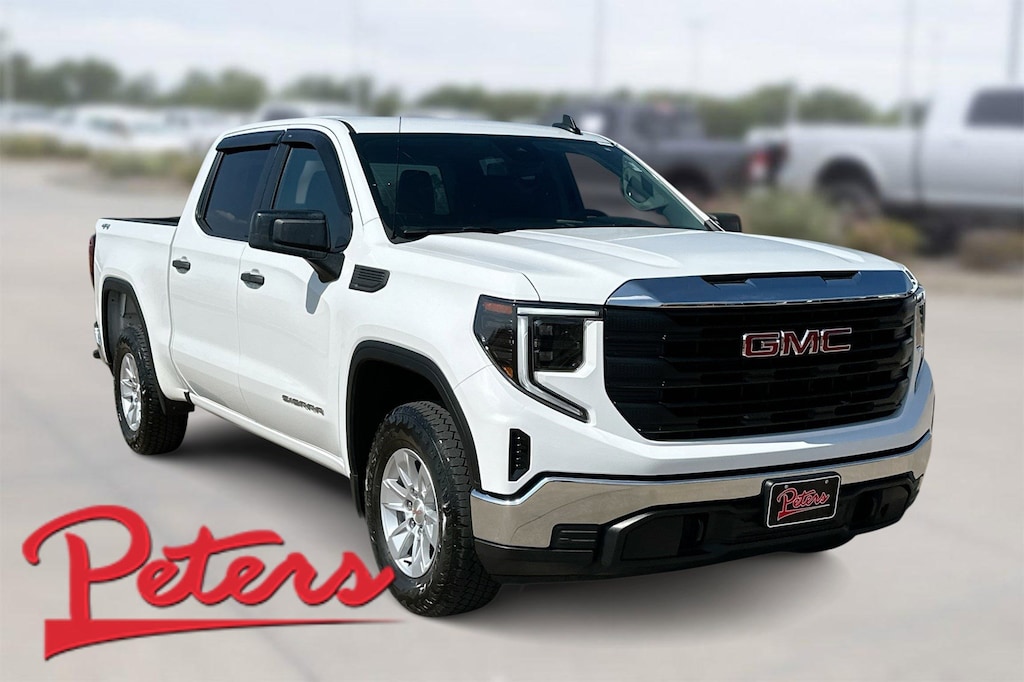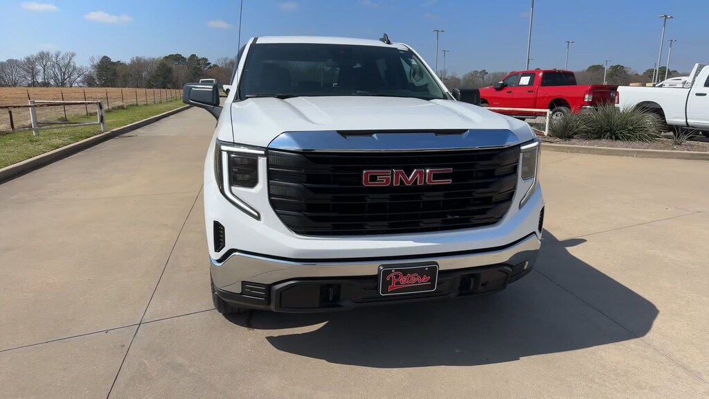 This 2024 GMC Sierra 1500 Pro in Summit White comes with the following features: EcoTec3 5.3L V8 10-Speed Automatic 4WD Convenience Package (Cruise Control, Deep-Tinted Glass, Electric Rear-Window Defogger, EZ Lift Power Lock & Release Tailgate, Heated Power-Adjustable Outside Mirrors, and LED Cargo Area Lighting), Preferred Equipment Group 1SA (2 Charge/Data USB Ports, 220 Amp Alternator, Chrome Header w/Flat Black Grille Insert Bars, Front Frame-Mounted Black Recovery Hooks, GMC Connected Access Capable, HD Rear Vision Camera, OnStar & GMC Connected Services Capable, Power Door Locks, Power Front Windows w/Driver Express Up/Down, Power Front Windows w/Passenger Express Down, Power Rear Windows w/Express Down, Push Button Start, Remote Keyless Entry, Solar Absorbing Tinted Glass, and Wi-Fi Hotspot Capable), Pro Value Package, Standard Suspension Package, Trailering Package (Hitch Guidance), 170 Amp Alternator, 4-Way Manual Driver Seat Adjuster, 4-Way Manual Passenger Seat Adjuster, 4-Wheel Disc Brakes, 6 Speakers, 6-Speaker Audio System Feature, ABS brakes, Air Conditioning, AM/FM radio, Apple CarPlay/Android Auto, Auto High-beam Headlights, Auto-Locking Rear Differential, Automatic Emergency Braking, Auxiliary External Transmission Oil Cooler, Brake assist, Buckle to Drive, Bumpers: chrome, Compass, Delay-off headlights, Driver door bin, Dual front impact airbags, Dual front side impact airbags, Electronic Stability Control, External Engine Oil Cooling, Following Distance Indicator, Forward Collision Alert, Front 40/20/40 Split-Bench Seat, Front anti-roll bar, Front Center Armrest w/Storage, Front Pedestrian Braking, Front reading lights, Front wheel independent suspension, Fully automatic headlights, Illuminated entry, IntelliBeam Automatic High Beam On/Off, Lane Keep Assist w/Lane Departure Warning, Low tire pressure warning, Occupant sensing airbag, Outside temperature display, Overhead airbag, Overhead console, Panic alarm, Passenger door bin, Passenger vanity mirror, Power steering, Power windows, Premium audio system: GMC Infotainment System, Radio data system, Radio: GMC Infotainment Audio System, Rear reading lights, Rear step bumper, Remote keyless entry, Speed-sensing steering, Split folding rear seat, Tachometer, Tilt steering wheel, Traction control, Trip computer, Variably intermittent wipers, Vinyl Seat Trim, Voltmeter, Wheels: 17" x 8" Bright Silver Painted Aluminum, Wheels: 17" x 8" Silver Painted Steel, and Wireless Apple CarPlay/Wireless Android Auto.