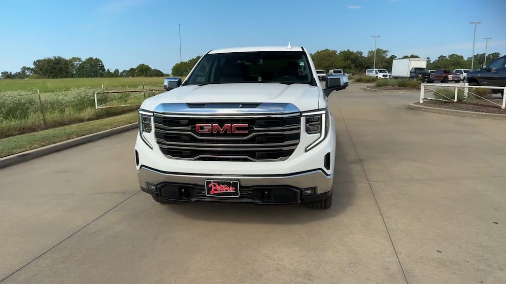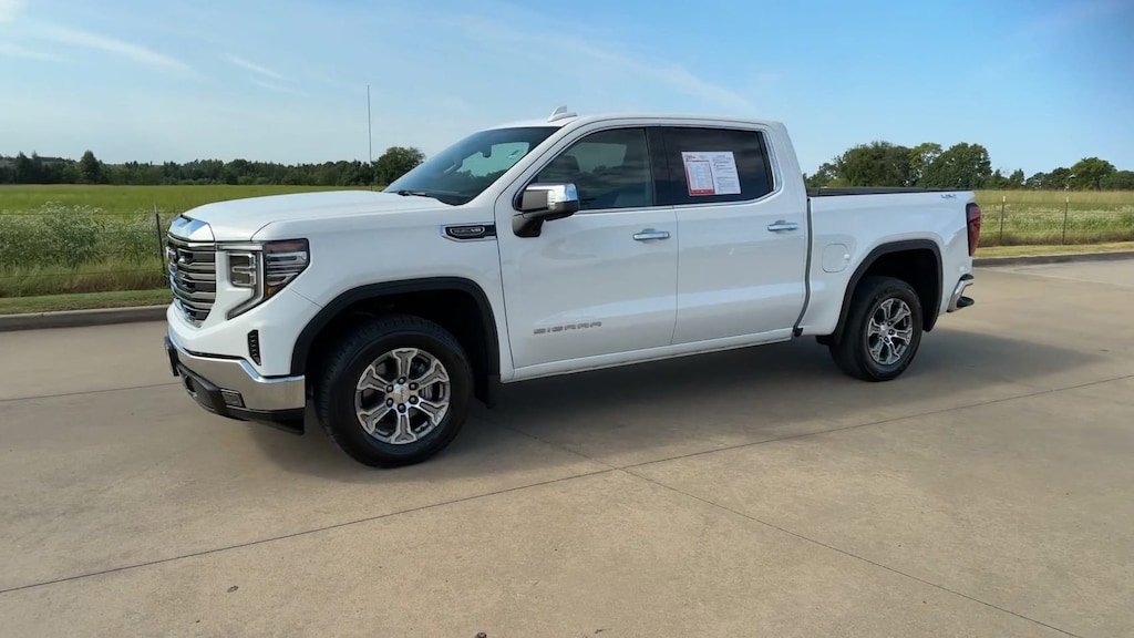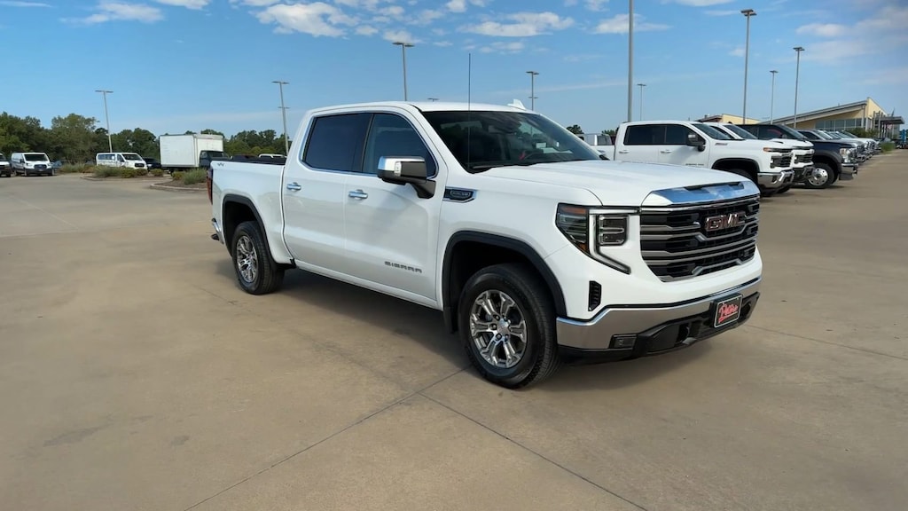 This 2024 GMC Sierra 1500 SLT in Summit White comes with the following features: EcoTec3 5.3L V8 10-Speed Automatic 4WD Preferred Equipment Group 4SA (120-Volt Bed Mounted Power Outlet, 120-Volt Interior Power Outlet, 170 Amp Alternator, 2 Charge/Data USB Ports, 2 Type-C Charge-Only Rear USB Ports, 6-Speaker Audio System Feature, Auto-Locking Rear Differential, Auxiliary External Transmission Oil Cooler, Chrome Header & Chrome Grille Insert Bars, Color-Keyed Carpeting Floor Covering, Deep-Tinted Glass, Electric Rear-Window Defogger, Front Frame-Mounted Black Recovery Hooks, Front Rain-Sensing Wipers, GMC Connected Access Capable, HD Rear Vision Camera, Keyless Open & Start, LED Cargo Area Lighting, Manual Tilt-Wheel & Telescoping Steering Column, OnStar & GMC Connected Services Capable, Perimeter Lighting, Power Door Locks, Power Front Passenger Windows w/Express Up/Down, Power Front Windows w/Driver Express Up/Down, Power Rear Windows w/Express Down, Push Button Start, Rear Wheelhouse Liners, Remote Vehicle Starter System, SiriusXM w/360L, Steering Wheel Audio Controls, Theft Deterrent System (Unauthorized Entry), and Wi-Fi Hotspot Capable), Standard Suspension Package, Trailering Package (Hitch Guidance), 10-Speed Automatic, 4WD, Jet Black Leather, 10-Way Power Driver Seat Adjuster w/Lumbar, 10-Way Power Passenger Seat Adjuster w/Lumbar, 3.23 Rear Axle Ratio, 4-Wheel Disc Brakes, 6 Speakers, ABS brakes, Air Conditioning, Alloy wheels, AM/FM radio: SiriusXM with 360L, Apple CarPlay/Android Auto, Auto High-beam Headlights, Auto-dimming door mirrors, Auto-dimming Rear-View mirror, Automatic Emergency Braking, Automatic temperature control, Brake assist, Buckle to Drive, Bumpers: chrome, Compass, Delay-off headlights, Deleted 3 Years of OnStar Remote Access, Driver door bin, Driver Memory, Driver vanity mirror, Dual front impact airbags, Dual front side impact airbags, Electronic Stability Control, Following Distance Indicator, Forward Collision Alert, Front 40/20/40 Split-Bench Seat, Front anti-roll bar, Front Center Armrest w/Storage, Front dual zone A/C, Front fog lights, Front Pedestrian Braking, Front reading lights, Front wheel independent suspension, Fully automatic headlights, Heated door mirrors, Heated Driver & Front Outboard Passenger Seating, Heated front seats, Heated steering wheel, Illuminated entry, IntelliBeam Automatic High Beam On/Off, Lane Keep Assist w/Lane Departure Warning, Low tire pressure warning, Memory seat, Occupant sensing airbag, Outside temperature display, Overhead airbag, Overhead console, Panic alarm, Passenger door bin, Passenger vanity mirror, Perf Leather-Appointed Front Outboard Seat Trim, Power door mirrors, Power driver seat, Power passenger seat, Power steering, Power windows, Radio data system, Radio: Premium GMC Infotainment Audio System, Rain sensing wipers, Rear reading lights, Rear seat center armrest, Rear step bumper, Rear window defroster, Remote keyless entry, Security system, Speed control, Speed-sensing steering, Split folding rear seat, Steering wheel mounted audio controls, Tachometer, Telescoping steering wheel, Tilt steering wheel, Traction control, Trip computer, Variably intermittent wipers, Voltmeter, Wheels: 18" x 8.5" 6-Spoke Machined Aluminum, and Wireless Apple CarPlay/Wireless Android Auto.